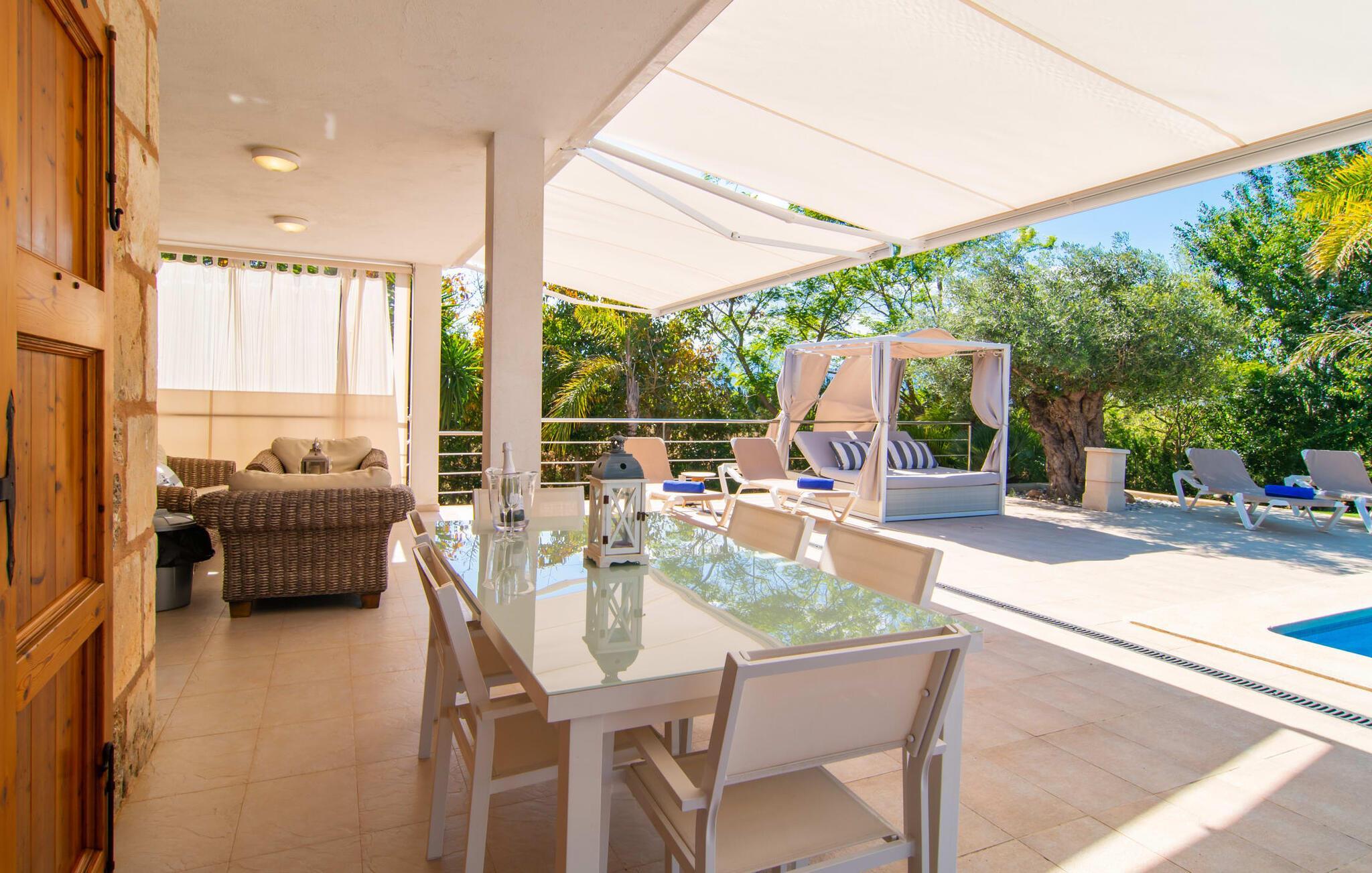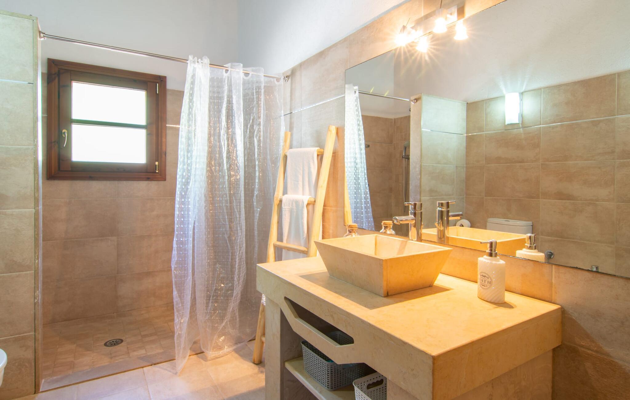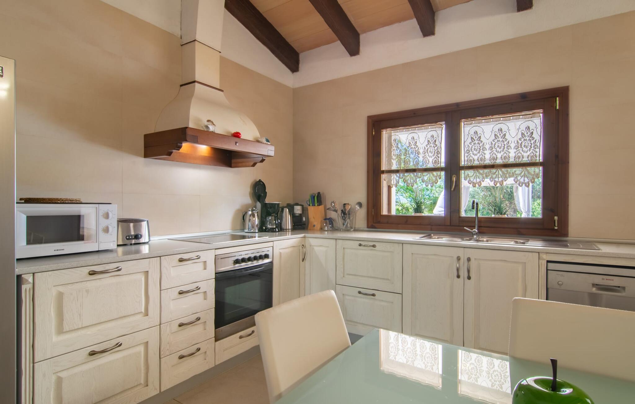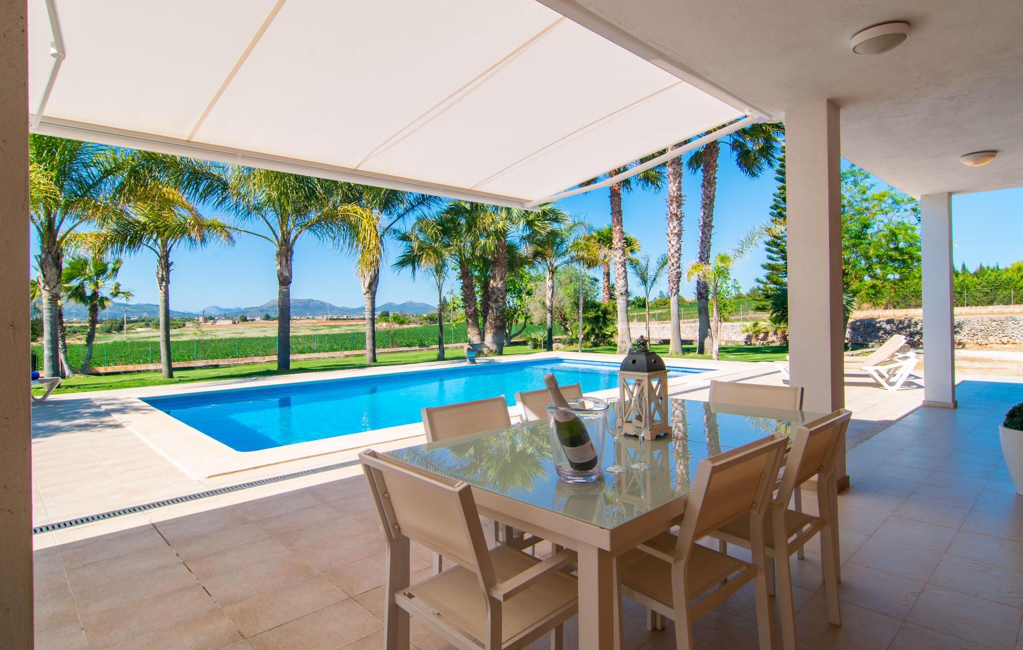 Livet på landet er ikke nødvendigvis fuld af afsavn – tværtimod: Drømmer du om en villaferie tæt på naturen i en rolig, men ikke isoleret beliggenhed med alle bekvemmelighederne i et moderne sommerhus, så er "Vinroma" det perfekte valg for dig ! Naturstenshuset i 1 plan ligger på en smukt anlagt, kærligt anlagt ejendom og byder på en vidunderlig udsigt over de omkringliggende marker og bjerge i det fjerne. Bag huset er der ikke kun en overdækket terrasse med spisebord, stole og komfortable havemøbler, men også en stor, lavvandet pool med integreret spabad og et behageligt lydende stilfuldt vandfald. Her kan du virkelig forkæle dig selv i fuldstændig privatliv og efter en forfriskende svømmetur i det kølige vand nyde en velfortjent siesta på en af de indbydende liggestole. Når du kigger søvnigt over dine solbriller, kan du kun se de imponerende, høje palmer plantet langs poolens lange side - en drøm! Og det samme gælder indretningen: Kom og føl dig godt er feriemantraet her. Interiøret er gennemgående designet i en lys, frisk og klassisk stil. Hvide og creme vægge veksler med rustikke naturstensvægge, suppleret af smukke mørkebrune træbjælker på lofterne. Et særligt højdepunkt ved den yderst velholdte villa er konstruktionen i et plan. Ingen skal gå op ad trapper her – hvilket kan være en kæmpe lettelse, især med børn, men også for alle andre. I den åbne og rummelige spise- og opholdsstue kan I enten sidde ved det enkle, moderne træbord med smarte stole og nyde et afslappet måltid sammen eller sætte jer ned i de elegante læderlænestole eller den tilhørende sofa og nyde en krimi-thriller på tv med en glas vin. Du kan også sidde ved det stilrene glasbord med delvist gennemsigtige stole i køkkenet, som er udstyret med højkvalitets hvidevarer og et stort køleskab. Og når du er træt, kan du bare trække dig tilbage til et af de tre stilfulde dobbeltværelser, hvoraf det ene har eget badeværelse. Beboerne i de to andre soveværelser deler endnu et rummeligt badeværelse. Din villa "Vinroma" er omgivet af smukke landskaber, der er typiske for den nordlige del af øen. Den ligger midt i den såkaldte "grøntsagskurv" på Mallorca, i en særlig grøn, frugtbar slette. Nyd et par afslappende gåture på opdagelse eller en cykeltur gennem naturen, som altid inkluderer den vidunderlige udsigt over bjergene i det fjerne. Bymidten i Muro er også let tilgængelig til fods - så du har adskillige indkøbsmuligheder, restauranter og caféer lige uden for døren. Muro er blevet skånet for masseturisme og er en rustik lille mallorcansk by i ordets bedste betydning, med smalle gader, smukke sandstenshuse og et museum, der er værd at se, Museo Museu Etnologico de Muro. Her kan du lære en masse om livet på landet på øen gennem århundreder og beundre udstillinger lige fra kunsthåndværk til musikinstrumenter. Foretrækker du at tage til stranden, skal du blot køre cirka 11 km til Alcúdia-bugten, hvor du finder en fin, hvid sandstrand og grønne klitter. Et smukt etplanshus, omgivet af en velholdt have med grøn græsplæne, duftende blomster og en stor pool, indlejret i et fantastisk middelhavslandskab: Dette er villaen "Vinroma" nær Muro på det nordlige Mallorca. Her kan du nyde din familieferie i fred - men du kan også gå til byen kun 0,6 km væk, prøve de lokale restauranter og shoppe. Og den nærmeste strand ligger kun omkring 11 km væk og kan hurtigt nås med lejebil. Dette er et Fincallorca feriehus.