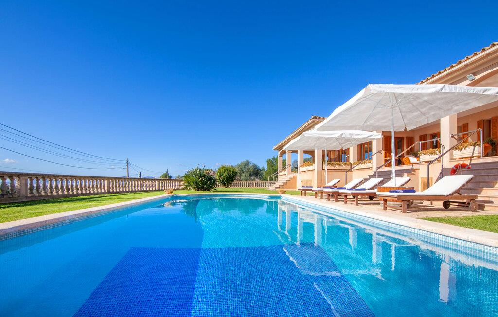 Som navnet antyder, ligger denne alsidige og rummelige villa tæt på land og hav - perfekt til dem, der vil nyde begge dele på ferien! Den ret rolige beliggenhed, men alligevel tæt på byen, bringer yderligere fordele med sig. Det, der umiddelbart springer i øjnene her, er den sensationelle veranda, som er placeret over poolen og udover flere særligt indbydende sidde- og afslapningsmuligheder også byder på en vidunderlig udsigt. Svømmehallen, der skinner i blå nuancer og nemt kan nås via en romersk trappe, den velholdte græsplæne og soldækket strækker sig lige foran jer og bagved kan I se det ret flade landskab på den sydlige ø. Dette er de bedste betingelser for omfattende udendørs ophold - gasgrill, komfortable liggestole og parasoller fuldender udvalget af underholdning, der vil glæde store og små. En værdig stemning strømmer gennem rummene, som konsekvent viderefører princippet om "generøsitet". Selv når restauranten er fyldt op, er der rig mulighed for at finde individuelle steder at slappe af indenfor. I stuen, som støder direkte op til verandaen, byder flere sofaer på behagelige steder at slappe af, og bordet giver mulighed for at spise sammen. Det fuldt udstyrede køkken i hvidt udseende har alt hvad I behøver for en selvstændig ferie med selvforplejning og lige ved siden af, åbent udadtil, er der en yderligere spiseplads med fantastisk udsigt. I i alt fem individuelt indrettede værelser finder I en hyggelig atmosfære til afslappende ferieaftener. Gulv til loft vinduer lukker middelhavslys ind og byder på en smuk udsigt. Tre badeværelser en suite, hvoraf nogle er tilgængelige fra to soveværelser, runder smagfuldt af boligkomforten. Navnet på denne villa, der ligger i en urbanisering ud for kysten af hovedstaden Palma, fortæller om "hav og land". En velholdt have med masser af grønne plæner giver de bedste forudsætninger for værdig afslapning. Placeringen på vejen giver jer mulighed for nemt at nå flere destinationer, og I kan gøre jeres indkøb i den nærliggende landsby Sa Cabaneta. Palma ligger omkring 20 minutter væk i bil. Forskellige sandstrande på sydkysten, herunder Cuidad Jardin, Cala Estancia eller Es Penyo, ligger 12 til 13 km væk. Bemærk venligst, at denne ejendom ikke accepterer ungdomsgrupper eller polterabender. En ungdomsgruppe på denne ejendom består af personer på 25 år eller derunder. Book ikke denne ejendom, hvis I er en ungdomsgruppe eller polterabend, da jeres reservation vil blive afvist, når den er booket, hvilket også kan være tilfældet ved ankomst til ejendommen eller under jeres ophold, og I vil ikke modtage en refusion
