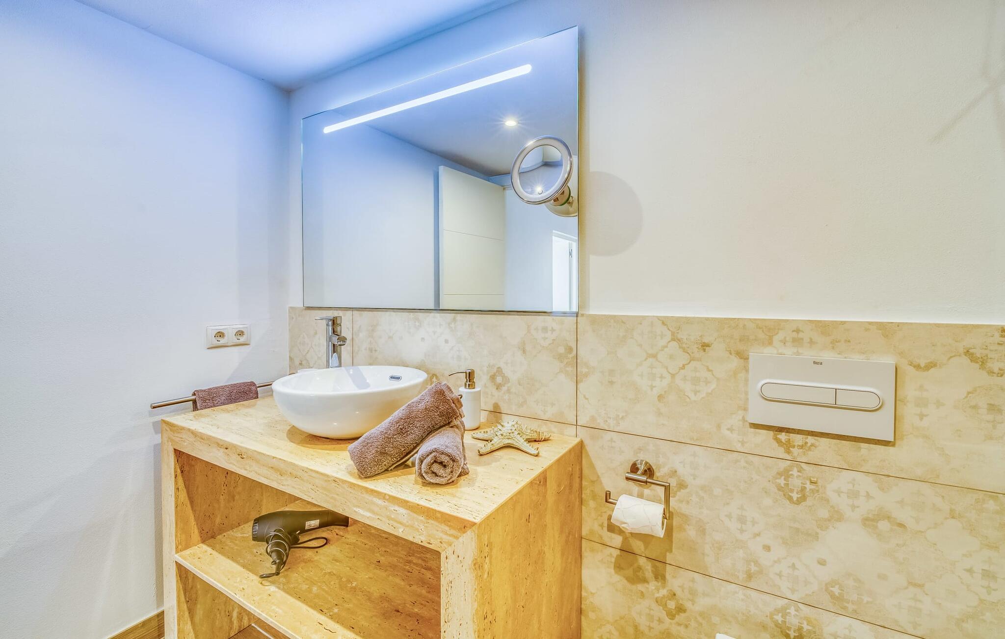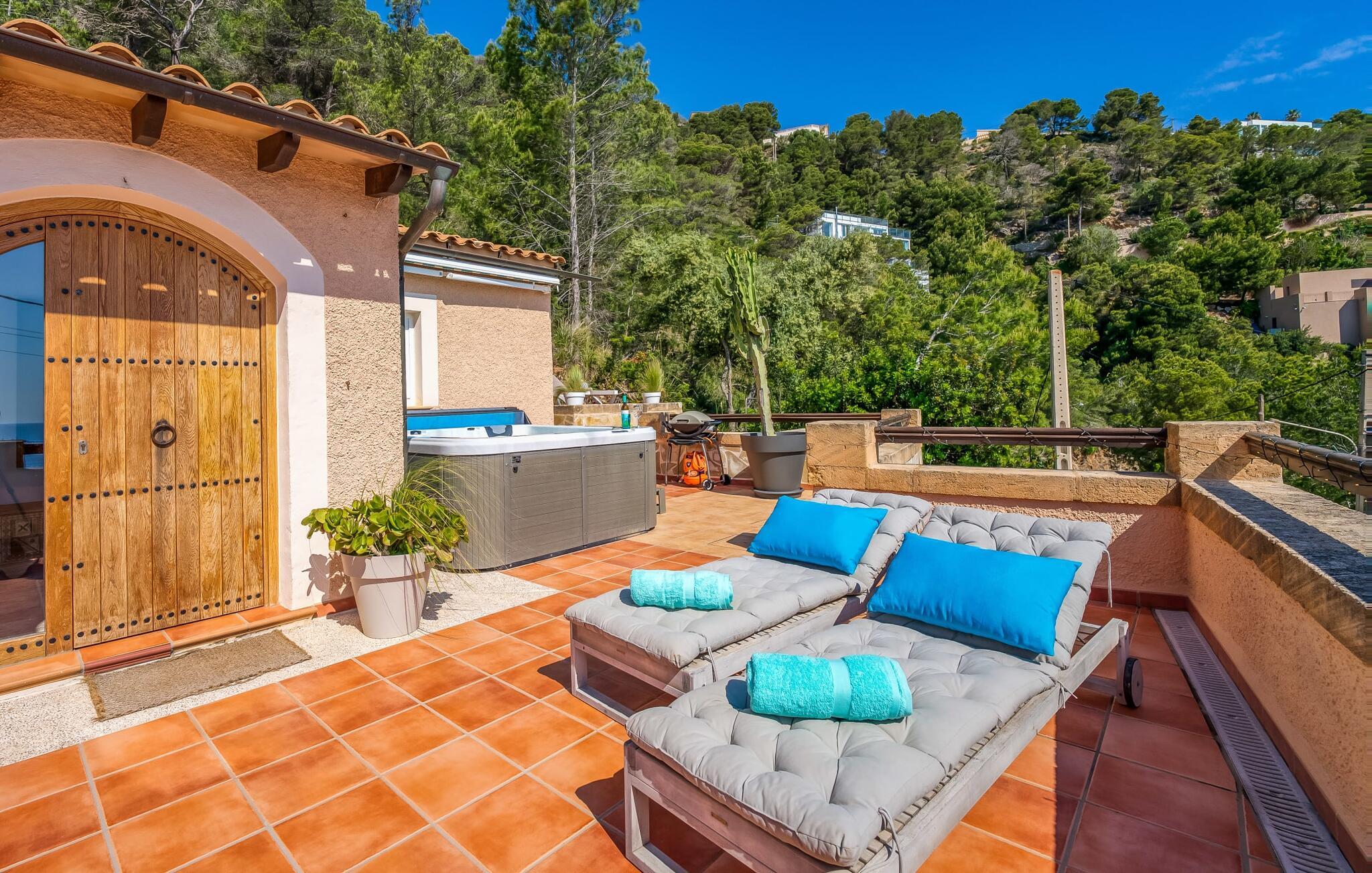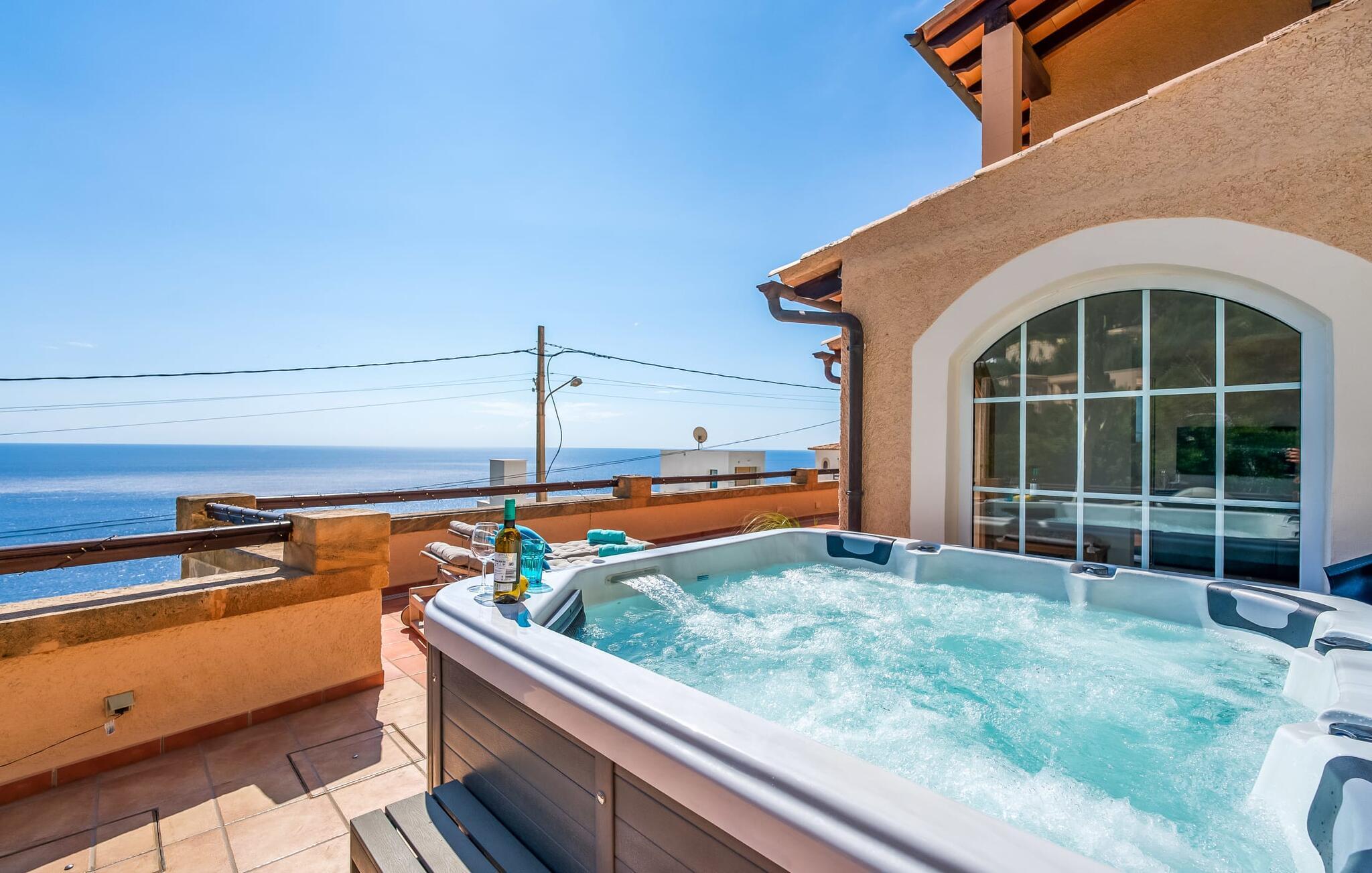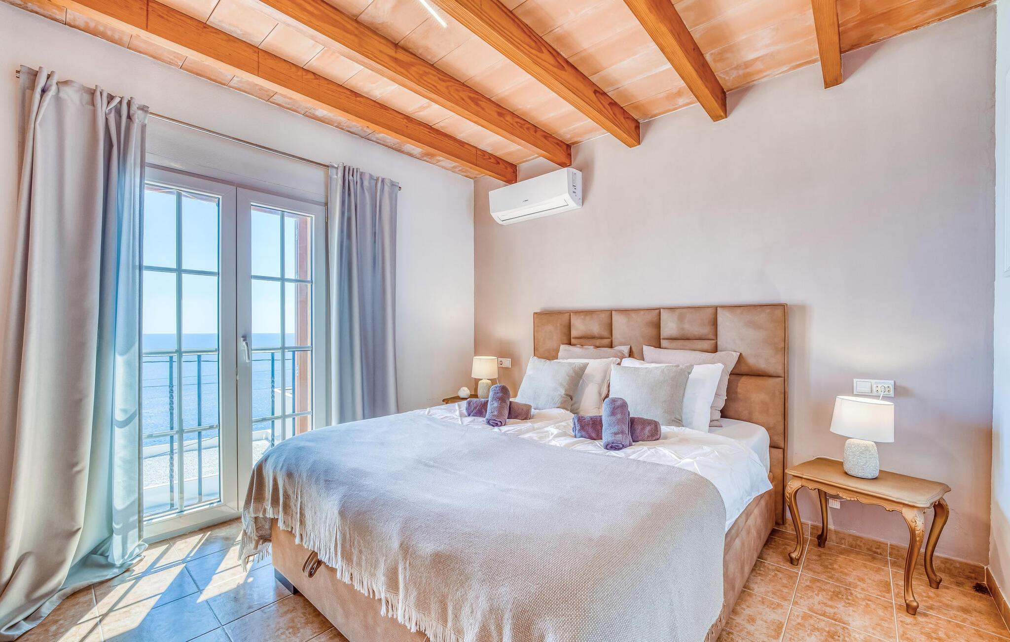 Denne højkvalitets villa "Vista Mar" på Mallorca er virkelig unik på grund af sin beliggenhed og indretning. Alene udendørsområdet er særligt imponerende - med sine fem havudsigtsterrasser i flere niveauer. Nyd den indbydende spiseplads samt talrige komfortable liggestole og et fantastisk spabad. En gasgrill er tilgængelig til aftengrill. Et yderst attraktivt sted er den hyggelige lounge på terrassen ovenover. Snup jeres yndlingsdrink og nyd uforglemmelige solopgange og solnedgange herfra! Der er adgang til huset fra terrassen via gulv-til-loft vinduer. En lys, moderne, trendy atmosfære kendetegner det åbne opholds- og køkkenområde. Store gulvfliser og hvide vægge indrammer den smagfulde indretning af denne villa med aircondition på Mallorca. I stueetagen er der udover opholdsstuen et soveværelse med dobbeltseng og et badeværelse med bruser, mens der på øverste etage er yderligere to soveværelser med dobbeltsenge. Disse deler et brusebad. Fra det store soveværelse er der udgang til endnu en lille terrasse. Husets tekniske udstyr er også fremragende med fiberoptisk internet, Bluetooth-højttalere, satellit-tv og godt hjemmekontorudstyr. Golfspillere, tennisspillere, cyklister, vandrere og surfere vil også finde et ideelt udgangspunkt for sportsaktiviteter her. Den højkvalitetsvilla "Vista Mar" ligger i en smuk bjergskråning i udkanten af den charmerende kystby Canyamel og byder på en fantastisk 180 graders havudsigt. I Canyamel finder I flere gode restauranter og barer samt supermarkeder. Den fine sandstrand Platja de Canyamel ligger omkring 7 minutter væk i bil.
