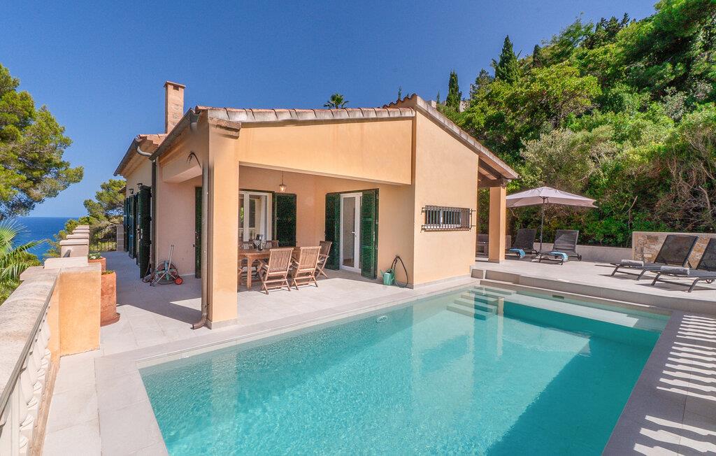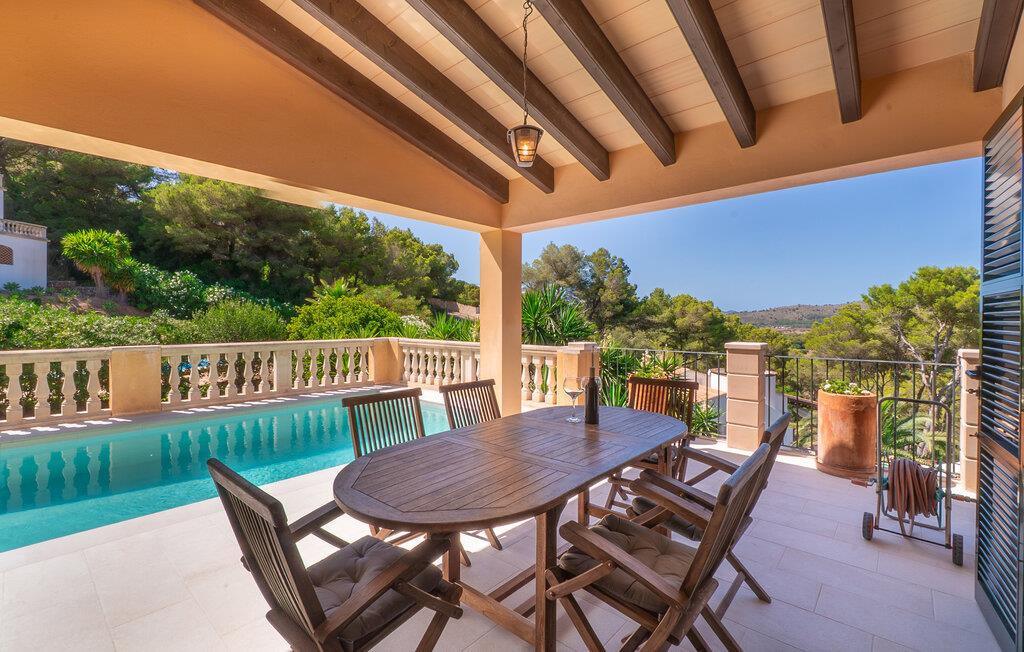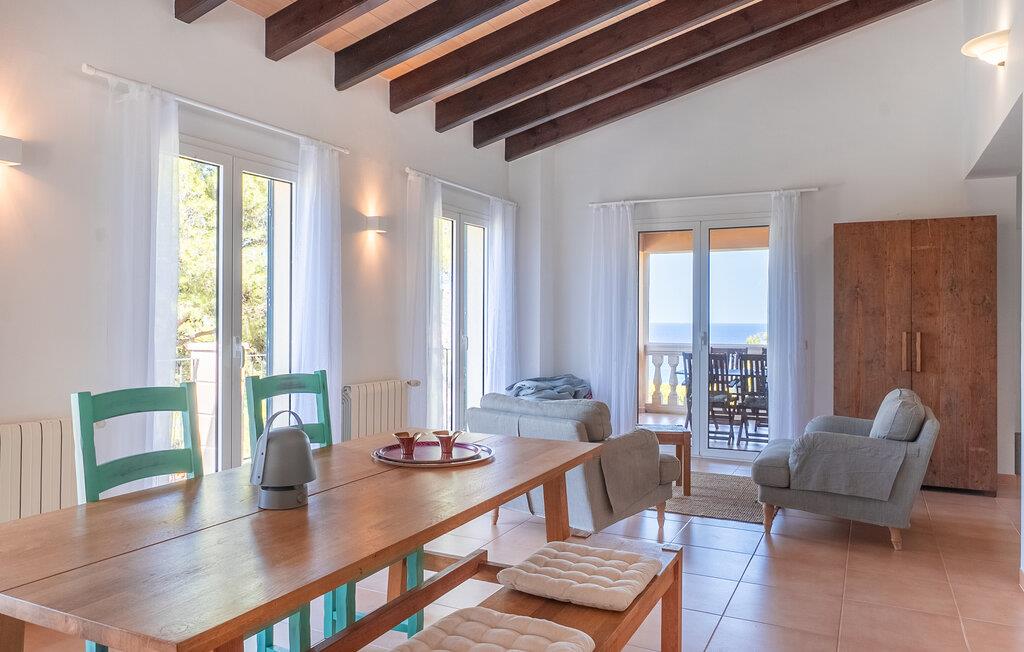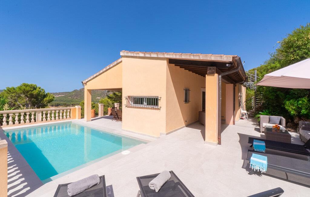en vidunderlig beliggenhed på en bjergskråning og kærligt indrettet, er "Voltor 3" på Costa Canyamel som noget ud af en billedbog: havudsigt, komfort, pool lige ved siden af huset. Med sine masser af udendørs siddepladser og en vidunderlig udsigt vil denne villa på Mallorca krybe sig ind i ethvert solrigt feriehjerte lidt efter lidt. To-etagers, bygget i en klassisk middelhavsstil, præsenterer det sig selv som en allrounder, når det kommer til feriestemning midt i frugtbart grønt. En overdækket terrasse med spisebord, plus en chill-out lounge med kunstrattan møbler og en parasol - den smukkeste tid på året begynder, så snart I ankommer til den 7 m lange pool. Senere vil I måske gå til en af de mange andre altaner. Der er mange steder at trække sig tilbage til – og alligevel den rette stemning til en godnatdrink. Selv de varmeste dage er ikke noget problem: Den fremragende beliggenhed og de mange store døre og vinduer sikrer et perfekt indeklima! I øvrigt: Villaen har en asfaltparkeringsplads, så I kan parkere jeres lejebil direkte foran huset. Naturlige farver, lysstyrke og lidt nordisk stil – det skaber sommerfriskhed og afslappet hygge i denne villa på Mallorca. Omdrejningspunktet på øverste etage er opholdsstuen med pejs: harmoniske accenter møder massivt træ og originale møbler som det gyldent udseende sofabord i et honeycomb-design. I samme rum er der også spisebord med bænk og stole samt gennemgang til det tilstødende køkken. Her kan I ikke kun nyde friskbrygget kaffe, men selvforplejning finder også det nødvendige udstyr. I finder gulv til loft vinduer og døre i hele huset – helt klart en behagelig faktor. Tydelig adskillelse: De tre kærligt designede soveværelser er placeret i villaens kælder. Alle har en-suite badeværelser og indbyggede skabe. Villaen “Voltor 3” ligger i det mangfoldige østlige Mallorca, cirka 1,5 km sydvest for Canyamels centrum med butikker, restauranter og den smukke, naturlige sandstrand. Her kan I bo stille og fredeligt midt i frodig vegetation og høj vegetation. Besøg de smukke bugter om dagen og nyd Middelhavet fra terrassen om aftenen: mere er ikke muligt.