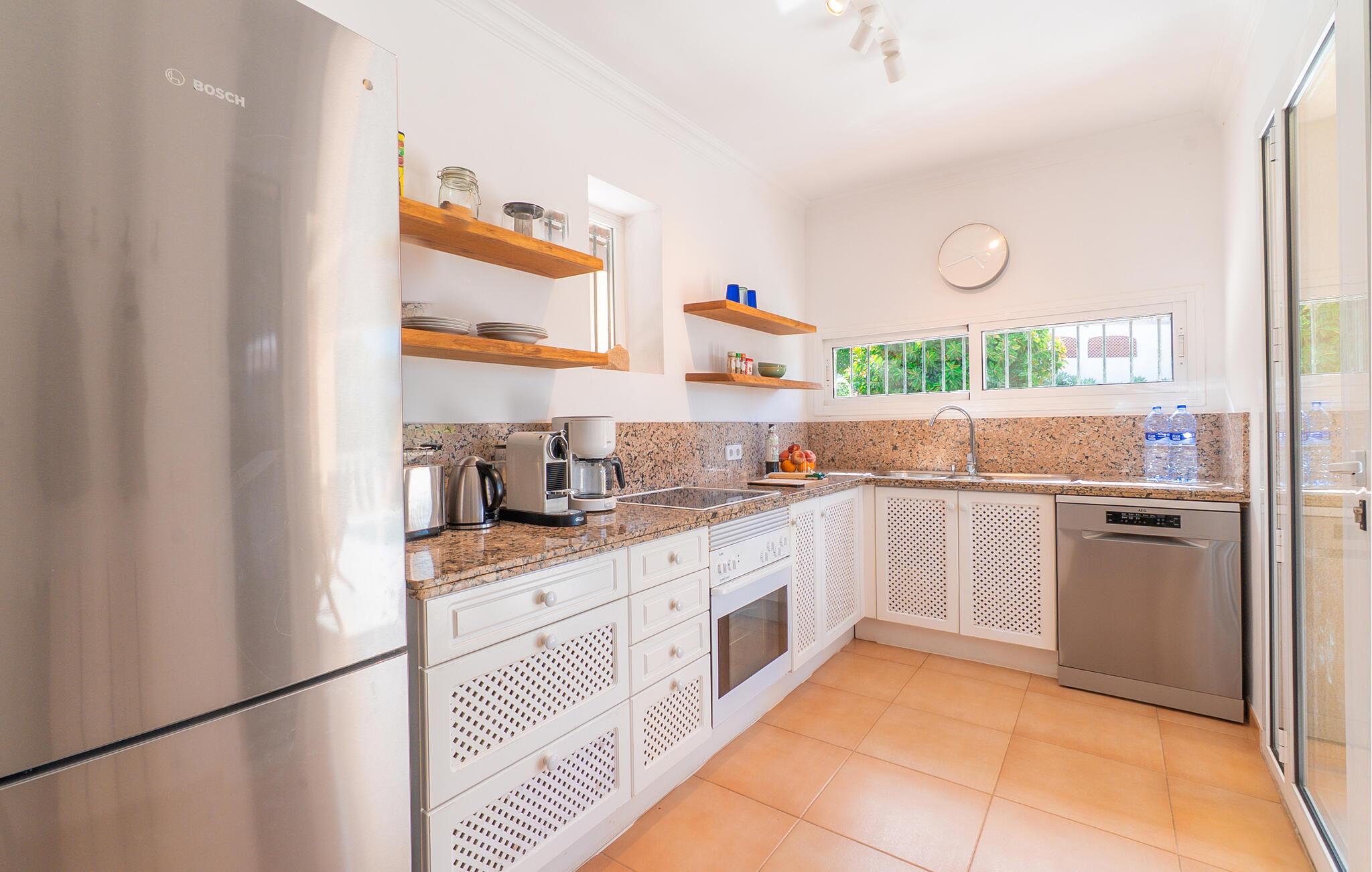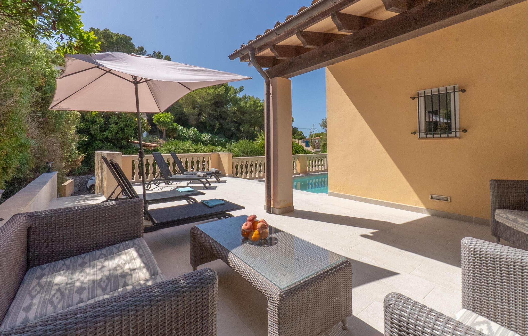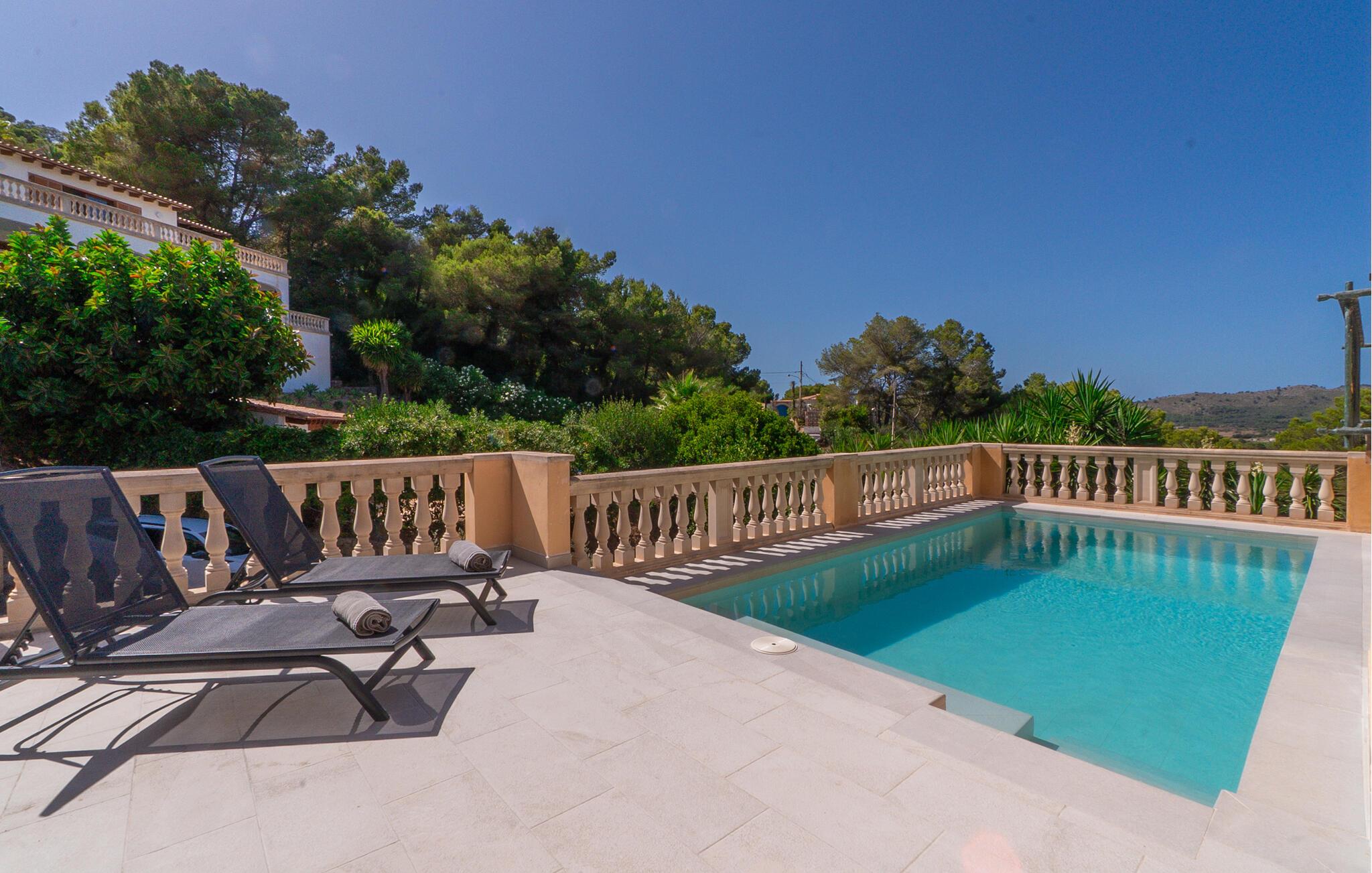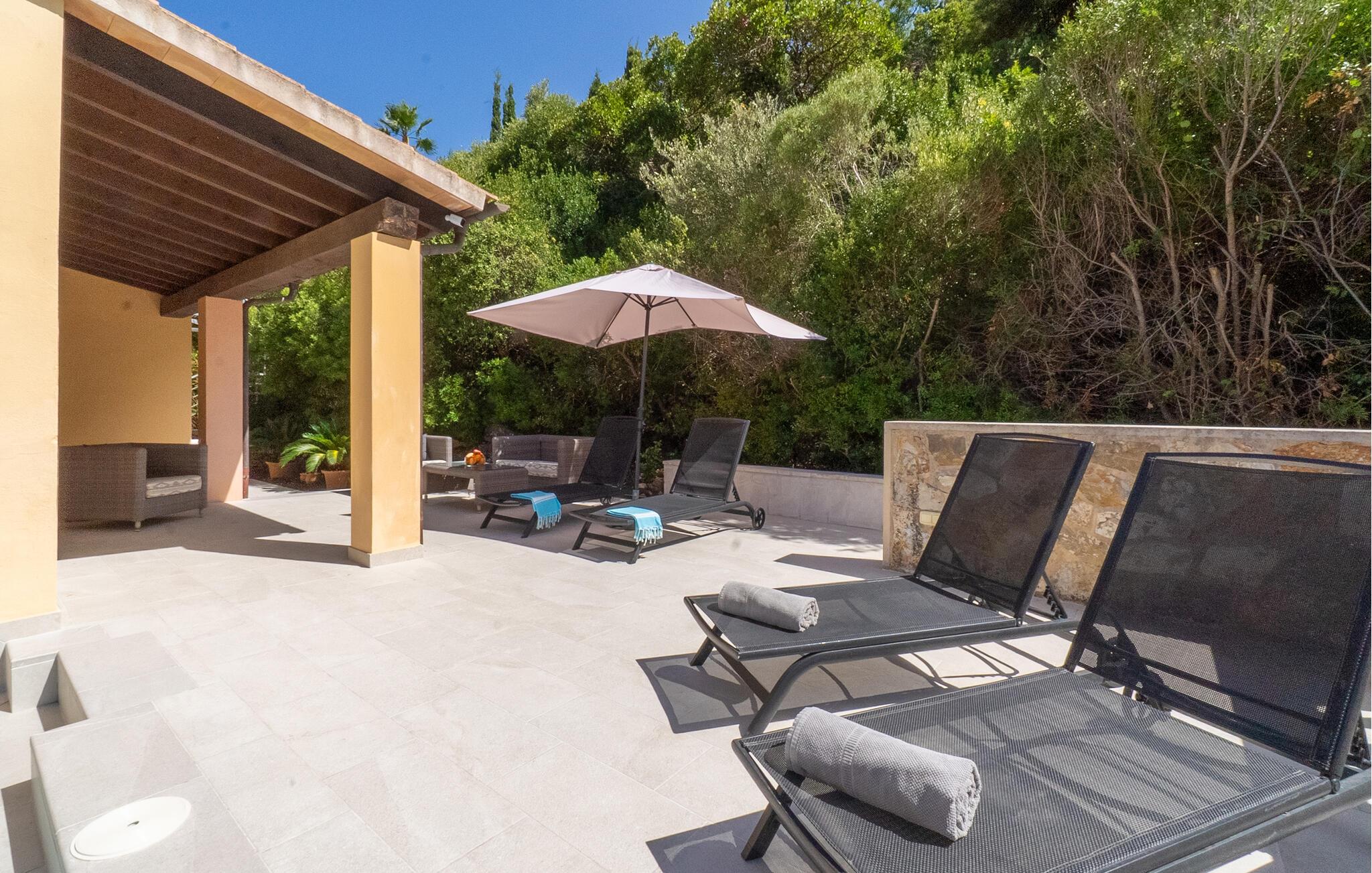 en vidunderlig beliggenhed på en bjergskråning og kærligt indrettet, er "Voltor 3" på Costa Canyamel som noget ud af en billedbog: havudsigt, komfort, pool lige ved siden af huset. Med sine masser af udendørs siddepladser og en vidunderlig udsigt vil denne villa på Mallorca krybe sig ind i ethvert solrigt feriehjerte lidt efter lidt. To-etagers, bygget i en klassisk middelhavsstil, præsenterer det sig selv som en allrounder, når det kommer til feriestemning midt i frugtbart grønt. En overdækket terrasse med spisebord, plus en chill-out lounge med kunstrattan møbler og en parasol - den smukkeste tid på året begynder, så snart du ankommer til den 7 m lange pool. Senere vil du måske gå til en af de mange andre altaner. Der er mange steder at trække sig tilbage til – og alligevel den rette stemning til en godnatdrink. Selv de varmeste dage er ikke noget problem: Den fremragende beliggenhed og de mange store døre og vinduer sikrer et perfekt indeklima! I øvrigt: Villaen har en asfaltparkeringsplads, så du kan parkere din lejebil direkte foran huset. Naturlige farver, lysstyrke og lidt nordisk stil – det skaber sommerfriskhed og afslappet hygge i denne villa på Mallorca. Omdrejningspunktet på øverste etage er opholdsstuen med pejs: harmoniske accenter møder massivt træ og originale møbler såsom det gyldent udseende sofabord i et honeycomb-design. I samme rum er der også spisebord med bænk og stole samt gennemgang til det tilstødende køkken. Her kan du ikke kun nyde friskbrygget kaffe, men selvforplejning finder også det nødvendige udstyr. Du finder gulv til loft vinduer og døre i hele huset – helt klart en feel-good faktor. Tydelig adskillelse: De tre kærligt designede soveværelser er placeret i villaens kælder. Alle har en-suite badeværelser og indbyggede skabe. Villaen “Voltor 3” ligger i det mangfoldige østlige Mallorca, cirka 1,5 km sydvest for Canyamels centrum med butikker, restauranter og den smukke, naturlige sandstrand. Her kan du bo stille og fredeligt midt i frodig vegetation og høj vegetation. Besøg de smukke bugter om dagen og nyd Middelhavet fra terrassen om aftenen: mere er ikke muligt. Dette er et Fincallorca feriehus.