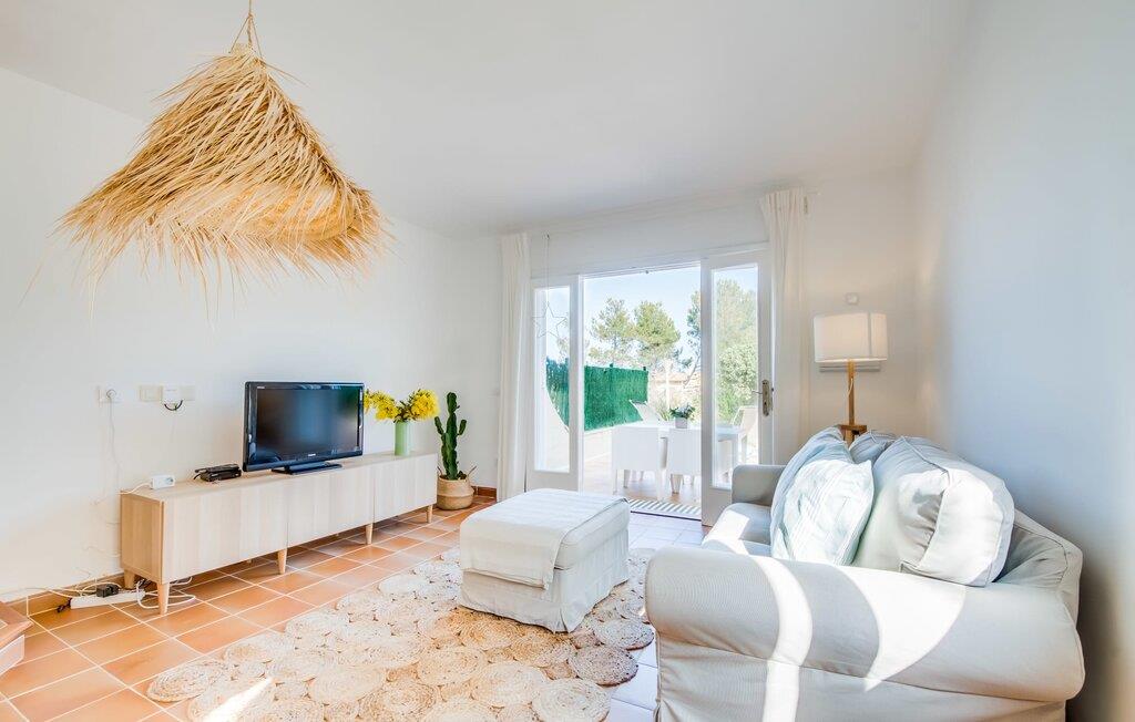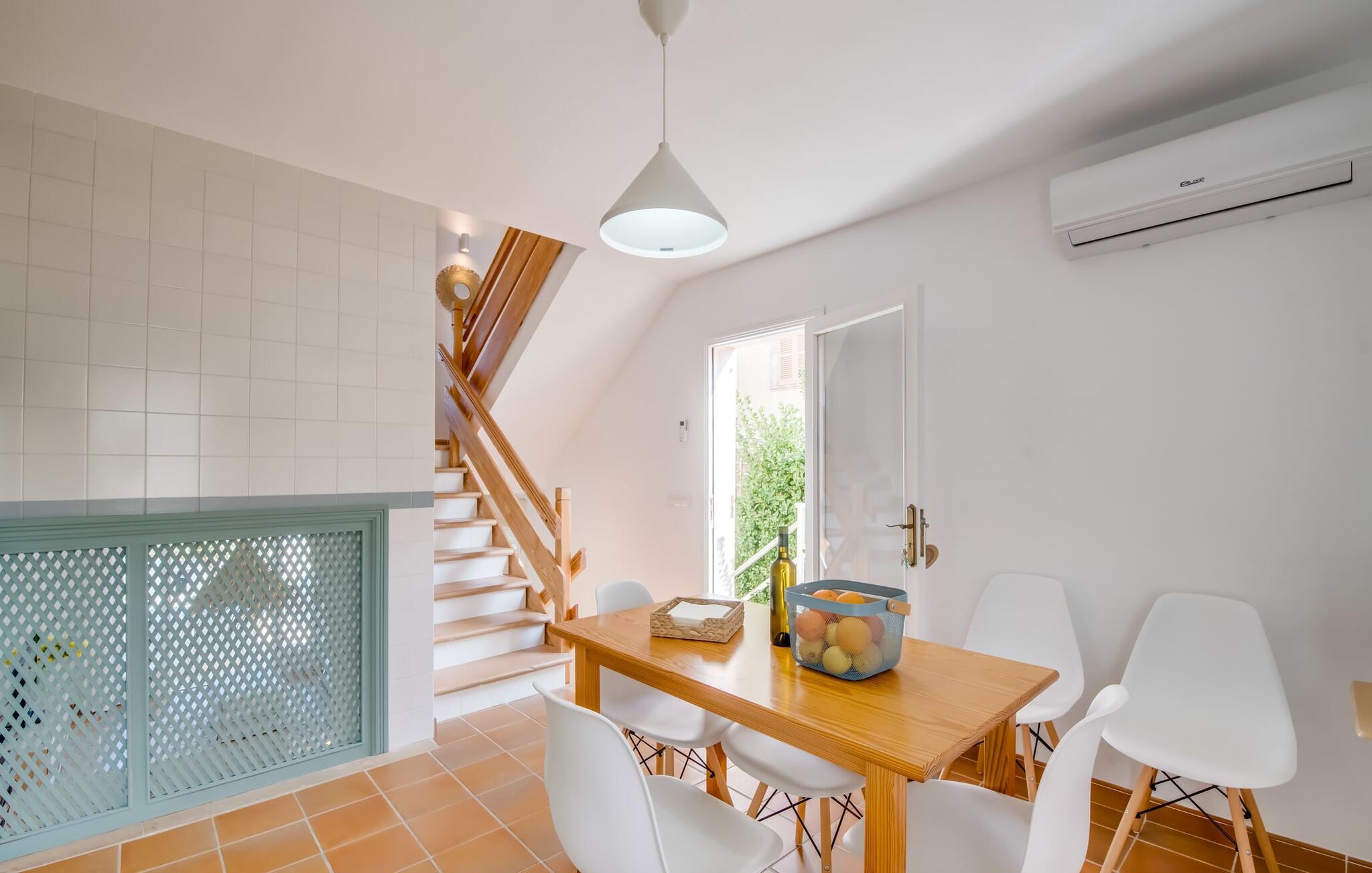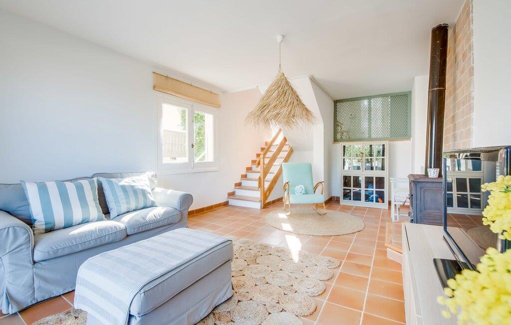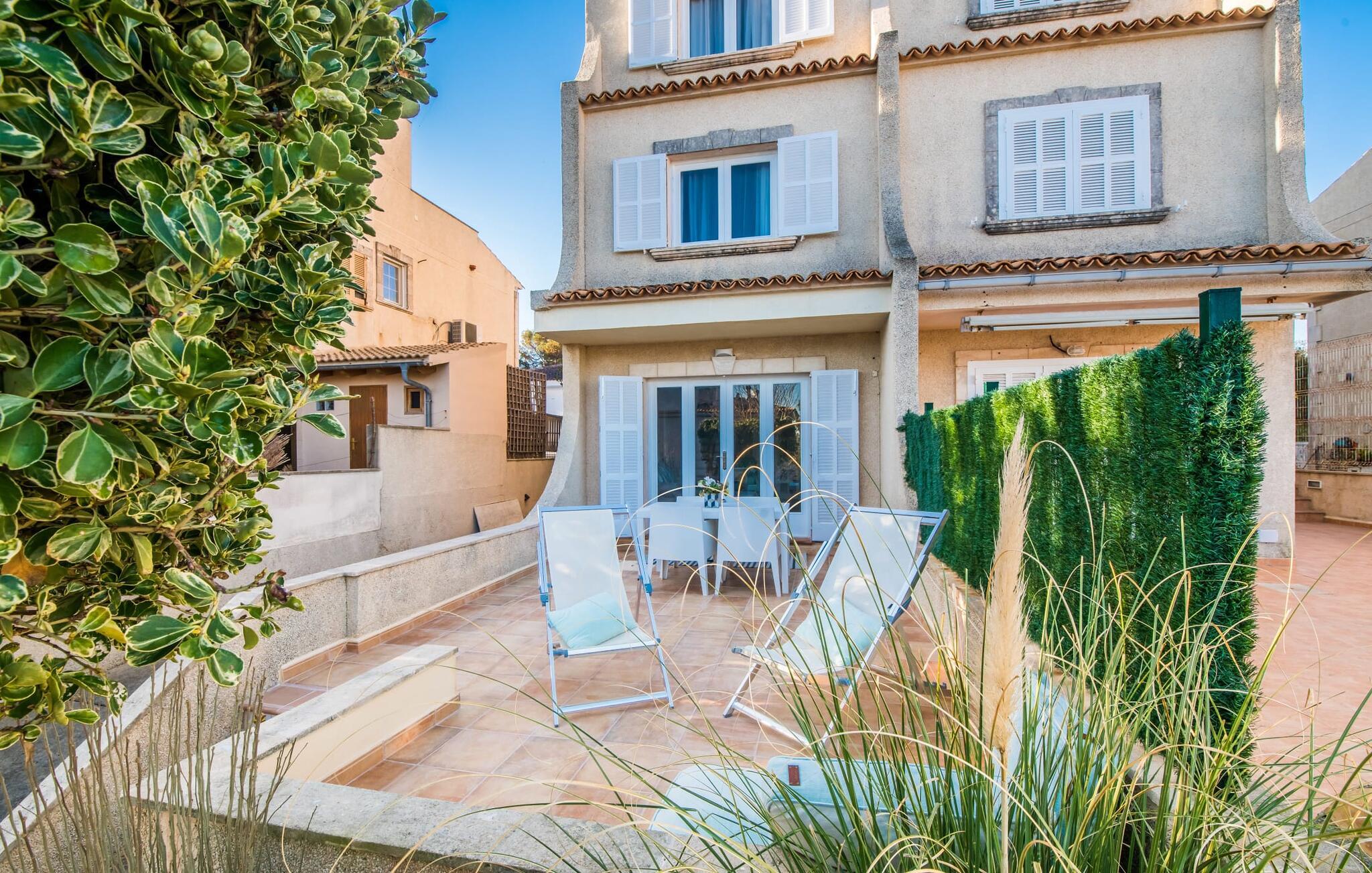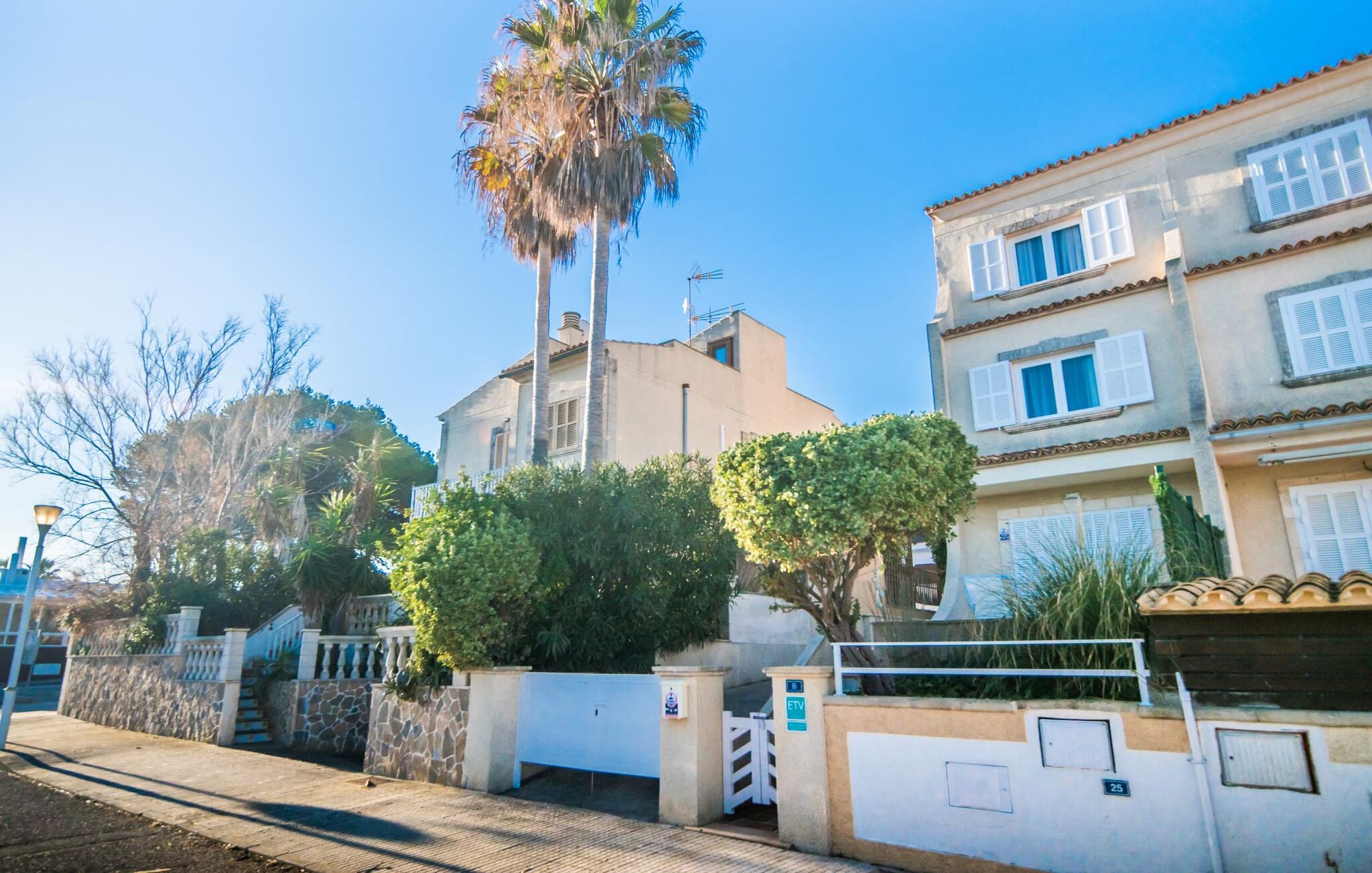 Tilbring uberørte dage ved havet, bo i en sommervilla midt i den smukke kystby Son Serra de Marina - denne feriedrøm bliver til virkelighed med "Vora Mar"! Den let hævede terrasse, der er udstyret med en række møbler, byder på vidunderlige muligheder for at gøre jer godt tilpas under den åbne middelhavshimmel. En privatsfære på nabo-dobbelthuset giver det nødvendige privatliv og en udendørs bruser - selv med varmt vand - giver den efterlængte forfriskning. Den naturlige megapool er ikke langt væk, og sand og havvand venter solsøgende, der elsker lange dage på stranden. Når I kommer hjem og nyder jeres solnedgang, kan I nyde den livlige atmosfære i landsbyen og tænke over, hvor I måske vil tage hen om aftenen. Måske slentre ind på en af de indbydende restauranter og nyde regionale delikatesser? Et gulv-til-loft vindue ud mod terrassen giver masser af lys ind i huset og gør det nemmere at skifte mellem udendørs og indendørs ophold. Venlig, trendy indretning med et charmerende maritimt præg gør også opholdet indendørs yderst attraktivt - I kan f.eks. trives i sofaen foran tv'et. På kølige aftener skaber en brændeovn hyggelig varme. Den samtidige havudsigt, som I kan nyde gennem nogle vinduer, og den blide havbrise, der blæser gennem rummene, skaber en helt særlig atmosfære. Dette suppleres effektivt af de forskellige niveauer, I kan bevæge jer imellem i denne villa på Mallorca. Stuen i stueetagen fører til det rummelige og lyse køkken, som har alt hvad I behøver til en dag med selvforplejning, herunder et spisebord. De to andre etager rummer de tre hyggelige soveværelser og to badeværelser. Absolut et meget attraktivt hus for havelskere og feriegæster, der kan lide at bo centralt! Den sommerlige villa "Vora Mar" venter jer midt i den charmerende kystby Son Serra de Marina på Mallorca. På grund af sin beliggenhed på gaden er I perfekt forbundet fra dobbelthuset: alle faciliteter - butikker, restauranter og caféer - er i gåafstand til en ubekymret hverdagsferie. I kan nemt nå stranden uden bil, mens I ideelt set kan udforske de andre kystsektioner af den lange bugt Alcúdia mod nord med jeres lejebil.