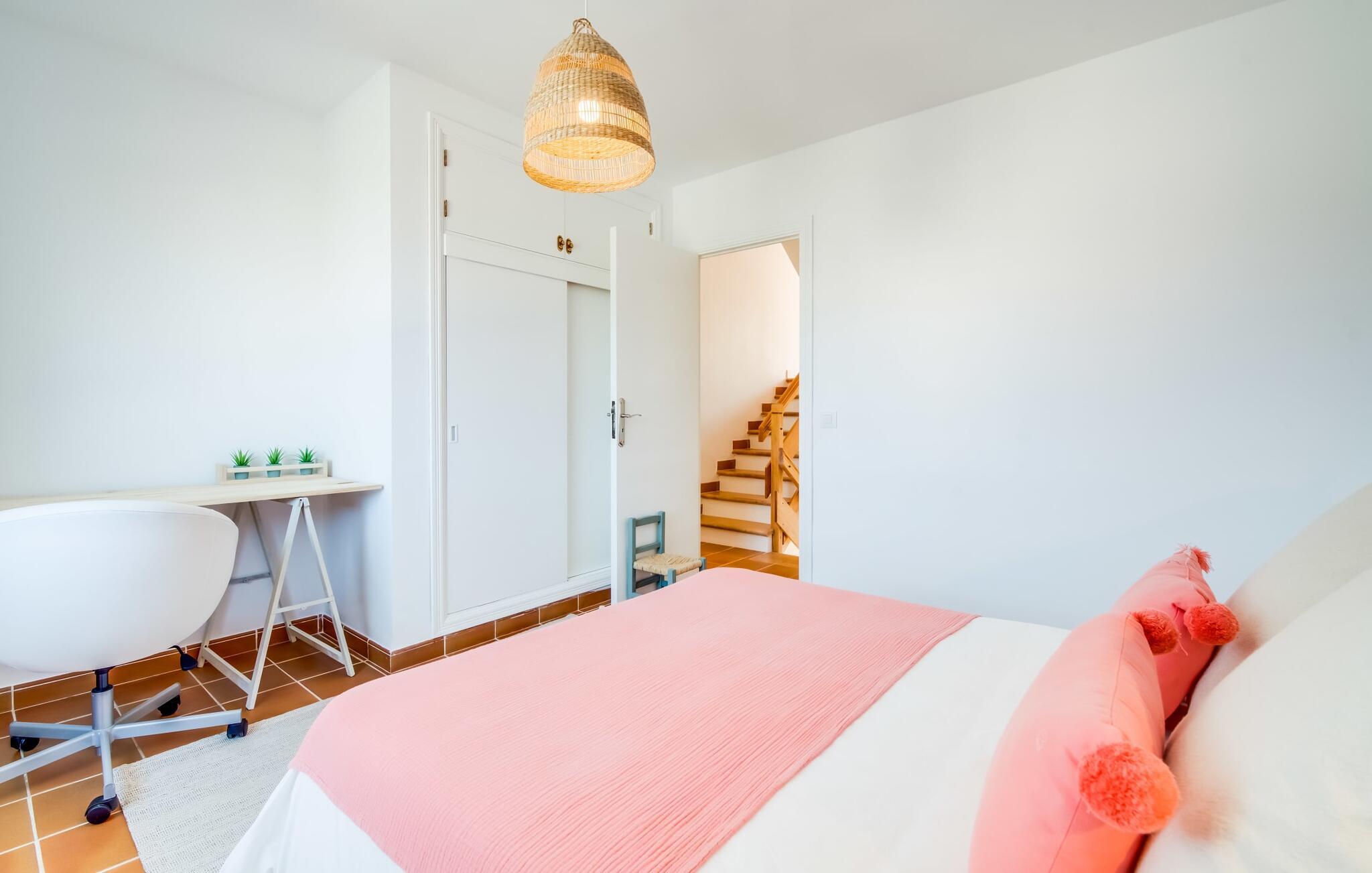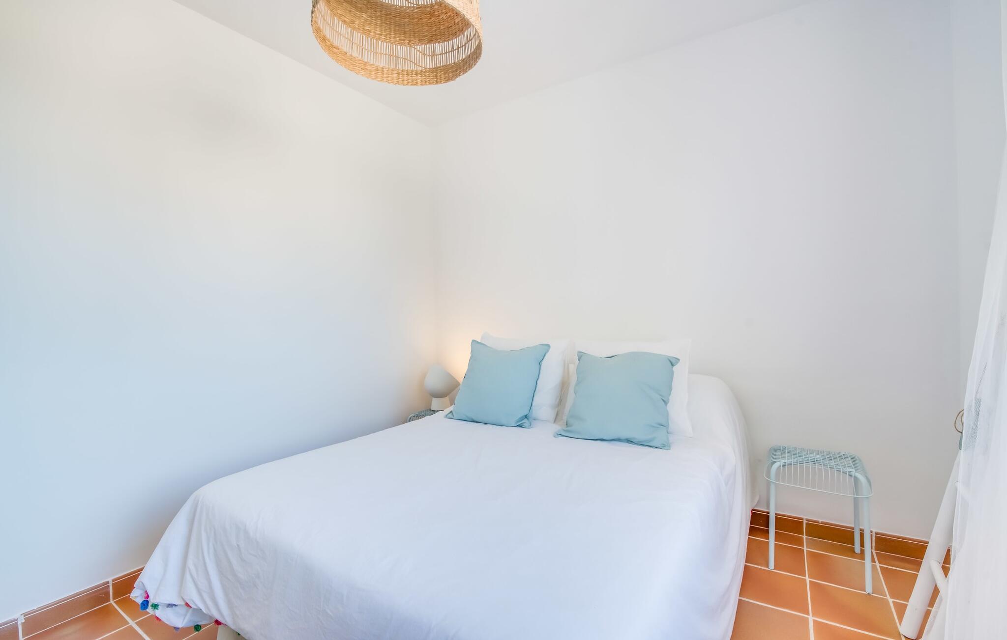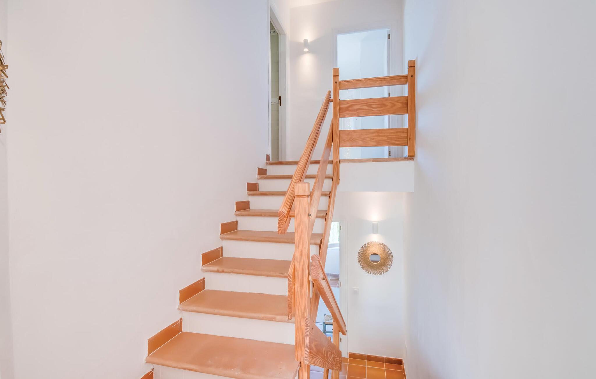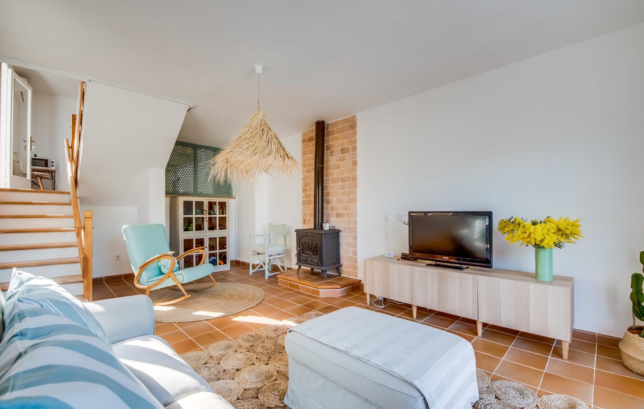 Tilbring uberørte dage ved havet, bo i en sommervilla midt i den smukke kystby Son Serra de Marina - denne feriedrøm bliver til virkelighed med "Vora Mar"! Den let hævede terrasse, der er udstyret med en række møbler, byder på vidunderlige muligheder for at gøre jer godt tilpas under den åbne middelhavshimmel. En privatsfære på nabo-dobbelthuset giver det nødvendige privatliv og en udendørs bruser - selv med varmt vand - giver den efterlængte forfriskning. Den naturlige megapool er ikke langt væk, og sand og havvand venter solsøgende, der elsker lange dage på stranden. Når I kommer hjem og nyder jeres solnedgang, kan I nyde den livlige atmosfære i landsbyen og tænke over, hvor I måske vil tage hen om aftenen. Måske slentre ind på en af de indbydende restauranter og nyde regionale delikatesser? Et gulv-til-loft vindue ud mod terrassen giver masser af lys ind i huset og gør det nemmere at skifte mellem udendørs og indendørs ophold. Venlig, trendy indretning med et charmerende maritimt præg gør også opholdet indendørs yderst attraktivt - I kan f.eks. trives i sofaen foran tv'et. På kølige aftener skaber en brændeovn hyggelig varme. Den samtidige havudsigt, som I kan nyde gennem nogle vinduer, og den blide havbrise, der blæser gennem rummene, skaber en helt særlig atmosfære. Dette suppleres effektivt af de forskellige niveauer, I kan bevæge jer imellem i denne villa på Mallorca. Stuen i stueetagen fører til det rummelige og lyse køkken, som har alt hvad I behøver til en dag med selvforplejning, herunder et spisebord. De to andre etager rummer de tre hyggelige soveværelser og to badeværelser. Absolut et meget attraktivt hus for havelskere og feriegæster, der kan lide at bo centralt! Den sommerlige villa "Vora Mar" venter jer midt i den charmerende kystby Son Serra de Marina på Mallorca. På grund af sin beliggenhed på gaden er I perfekt forbundet fra dobbelthuset: alle faciliteter - butikker, restauranter og caféer - er i gåafstand til en ubekymret hverdagsferie. I kan nemt nå stranden uden bil, mens I ideelt set kan udforske de andre kystsektioner af den lange bugt Alcúdia mod nord med jeres lejebil.