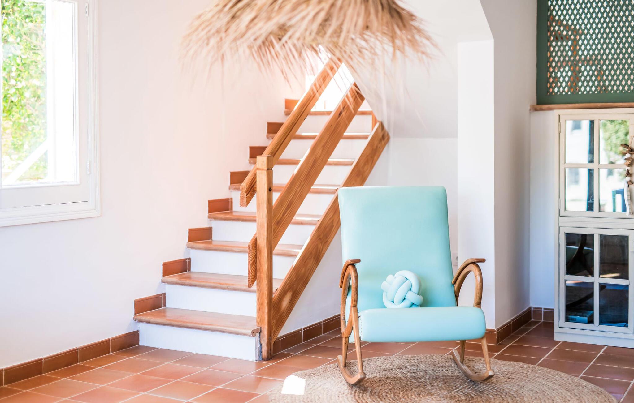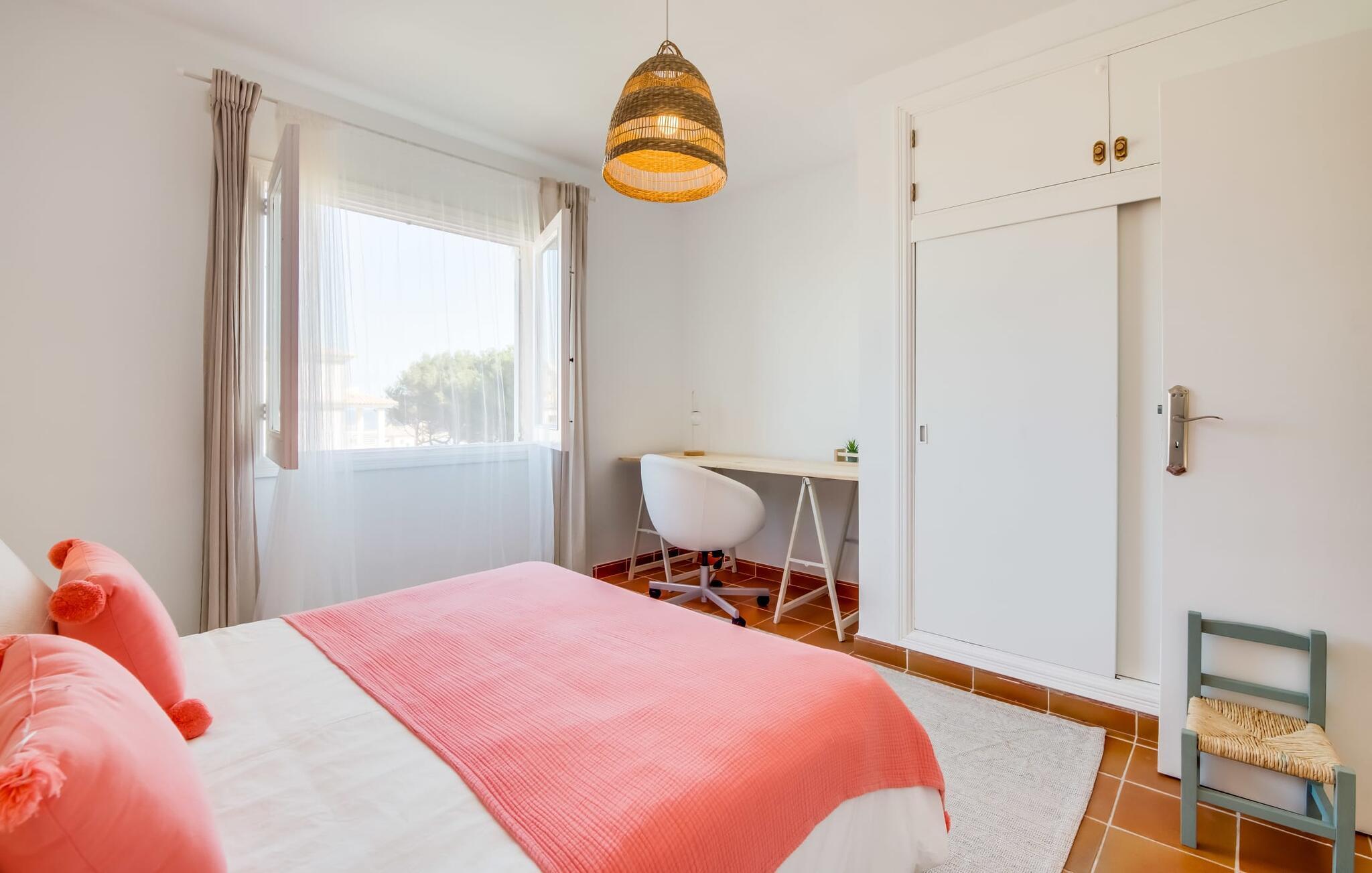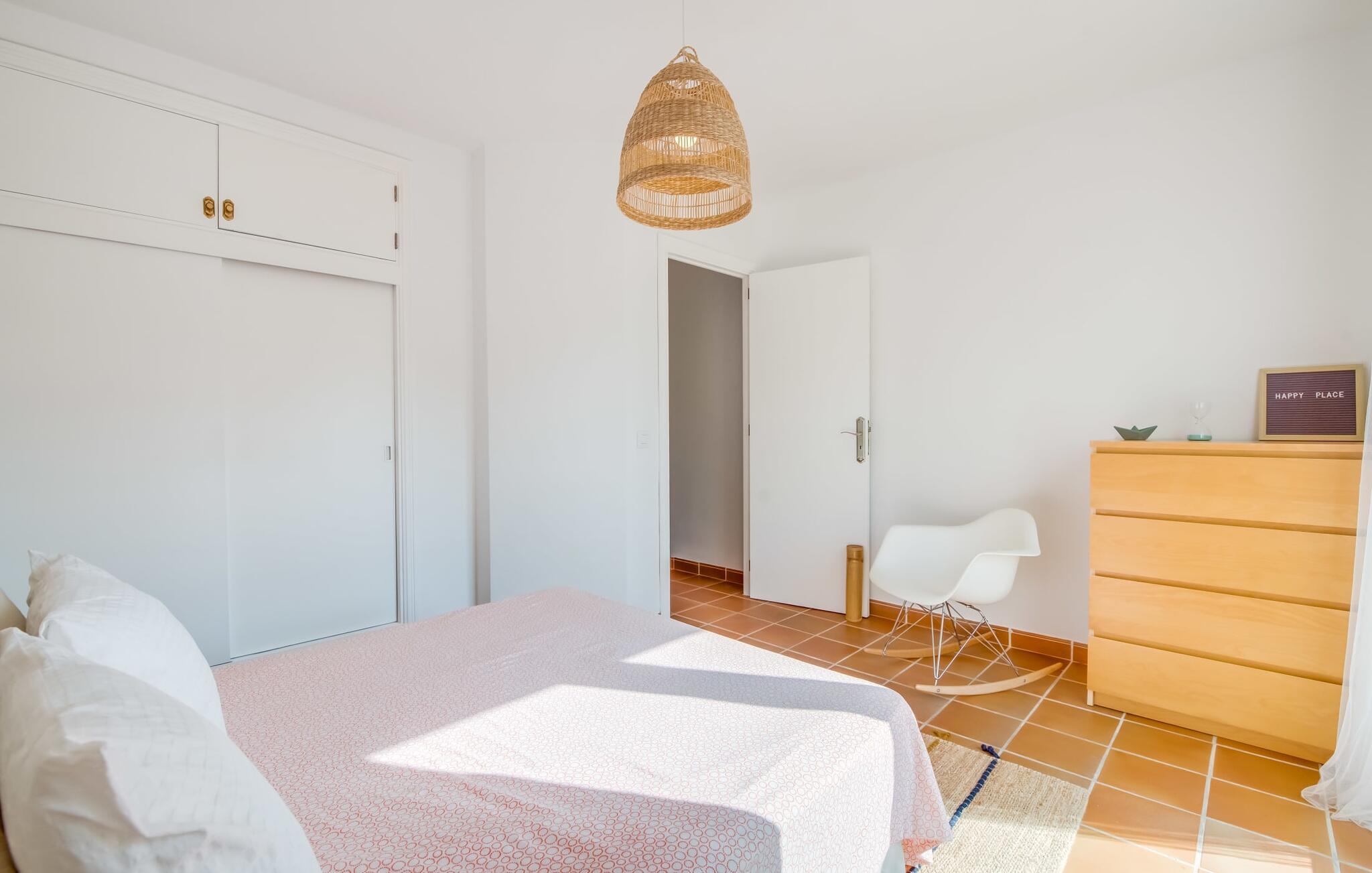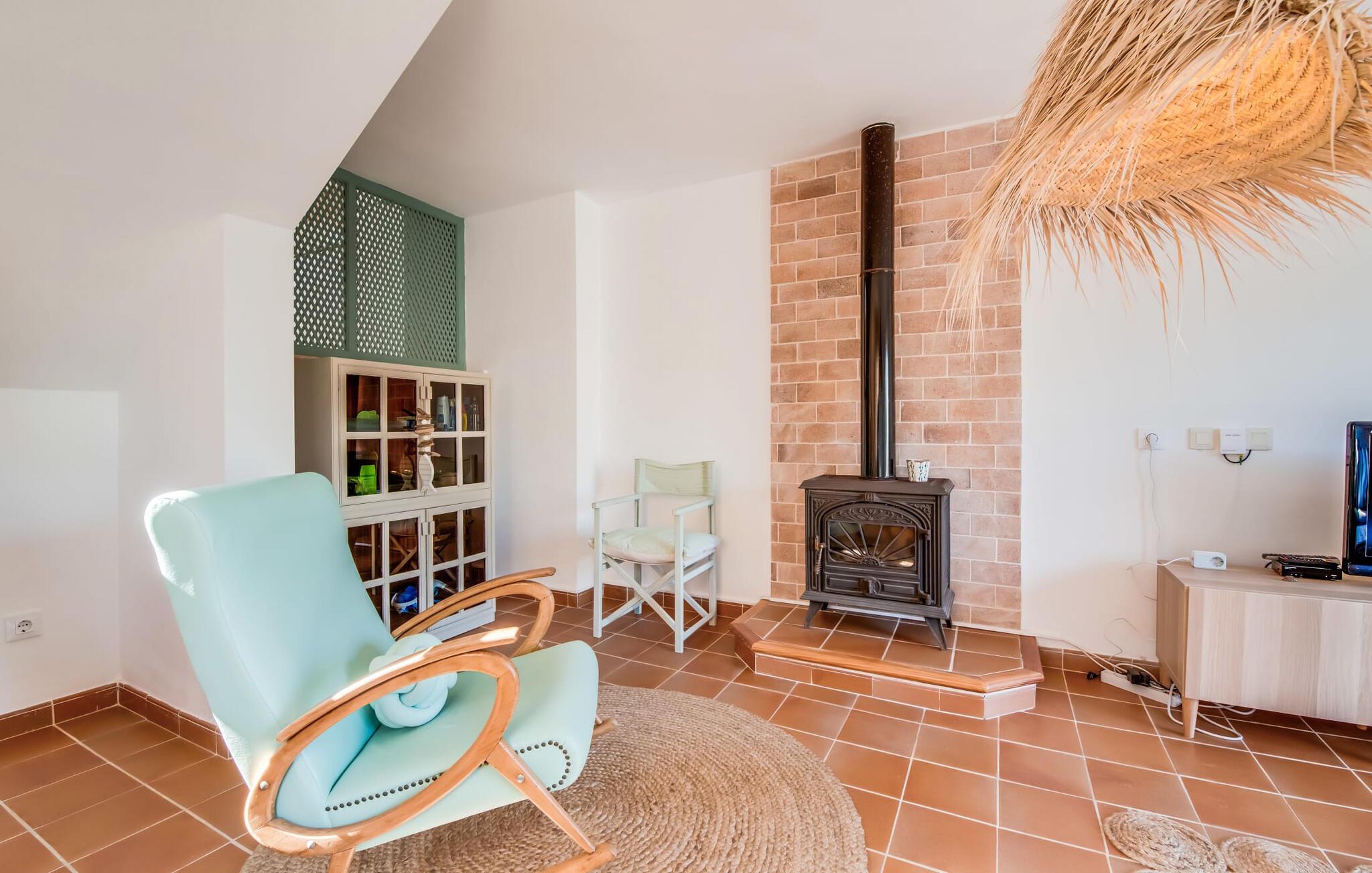 Tilbring uberørte dage ved havet, bo i en sommervilla midt i den smukke kystby Son Serra de Marina - denne feriedrøm bliver til virkelighed med "Vora Mar"! Den let hævede terrasse, der er udstyret med en række møbler, byder på vidunderlige muligheder for at gøre jer godt tilpas under den åbne middelhavshimmel. En privatsfære på nabo-dobbelthuset giver det nødvendige privatliv og en udendørs bruser - selv med varmt vand - giver den efterlængte forfriskning. Den naturlige megapool er ikke langt væk, og sand og havvand venter solsøgende, der elsker lange dage på stranden. Når I kommer hjem og nyder jeres solnedgang, kan I nyde den livlige atmosfære i landsbyen og tænke over, hvor I måske vil tage hen om aftenen. Måske slentre ind på en af de indbydende restauranter og nyde regionale delikatesser? Et gulv-til-loft vindue ud mod terrassen giver masser af lys ind i huset og gør det nemmere at skifte mellem udendørs og indendørs ophold. Venlig, trendy indretning med et charmerende maritimt præg gør også opholdet indendørs yderst attraktivt - I kan f.eks. trives i sofaen foran tv'et. På kølige aftener skaber en brændeovn hyggelig varme. Den samtidige havudsigt, som I kan nyde gennem nogle vinduer, og den blide havbrise, der blæser gennem rummene, skaber en helt særlig atmosfære. Dette suppleres effektivt af de forskellige niveauer, I kan bevæge jer imellem i denne villa på Mallorca. Stuen i stueetagen fører til det rummelige og lyse køkken, som har alt hvad I behøver til en dag med selvforplejning, herunder et spisebord. De to andre etager rummer de tre hyggelige soveværelser og to badeværelser. Absolut et meget attraktivt hus for havelskere og feriegæster, der kan lide at bo centralt! Den sommerlige villa "Vora Mar" venter jer midt i den charmerende kystby Son Serra de Marina på Mallorca. På grund af sin beliggenhed på gaden er I perfekt forbundet fra dobbelthuset: alle faciliteter - butikker, restauranter og caféer - er i gåafstand til en ubekymret hverdagsferie. I kan nemt nå stranden uden bil, mens I ideelt set kan udforske de andre kystsektioner af den lange bugt Alcúdia mod nord med jeres lejebil.