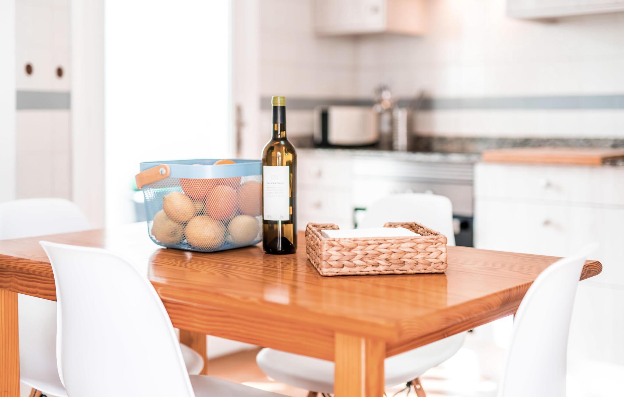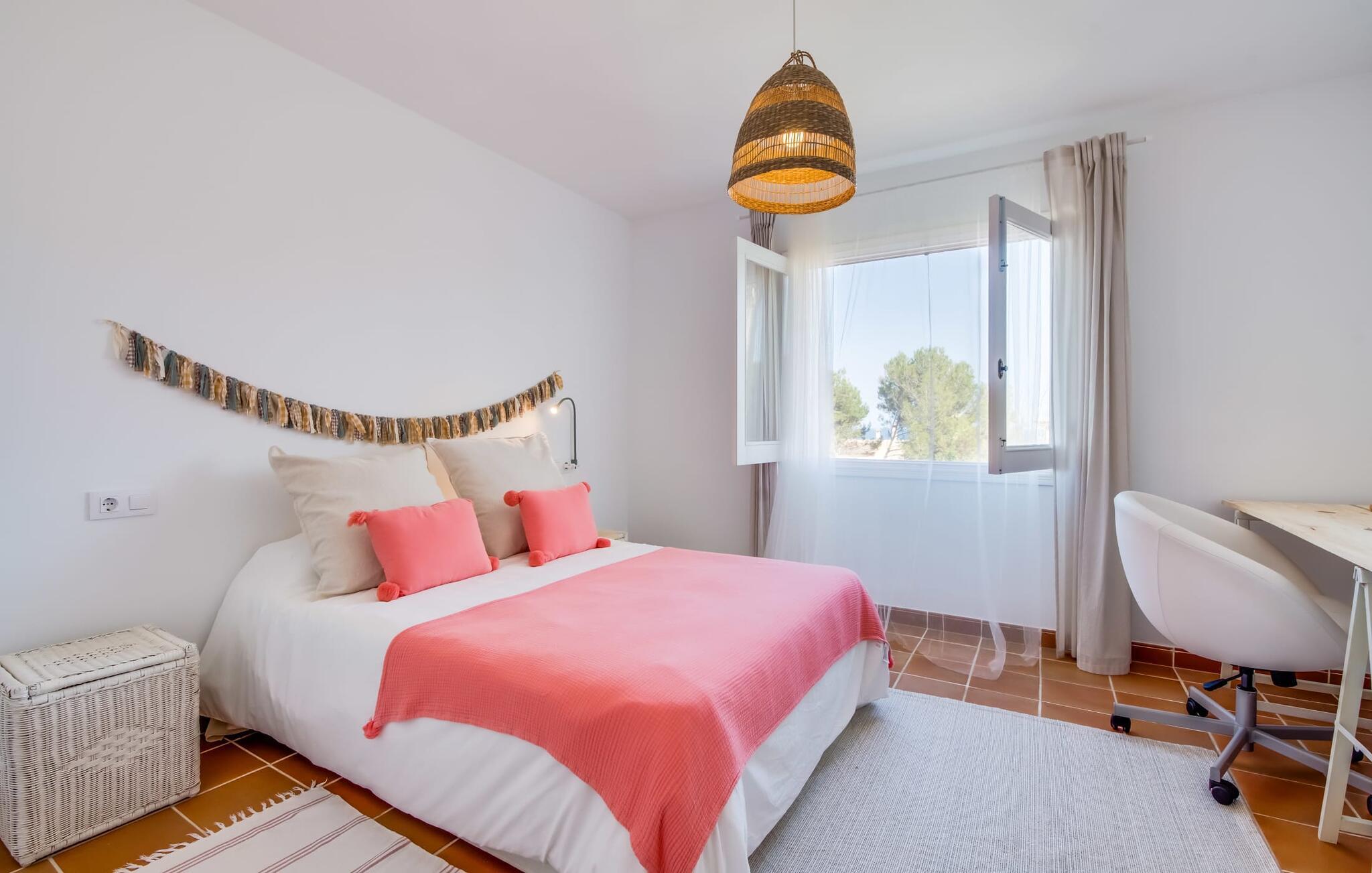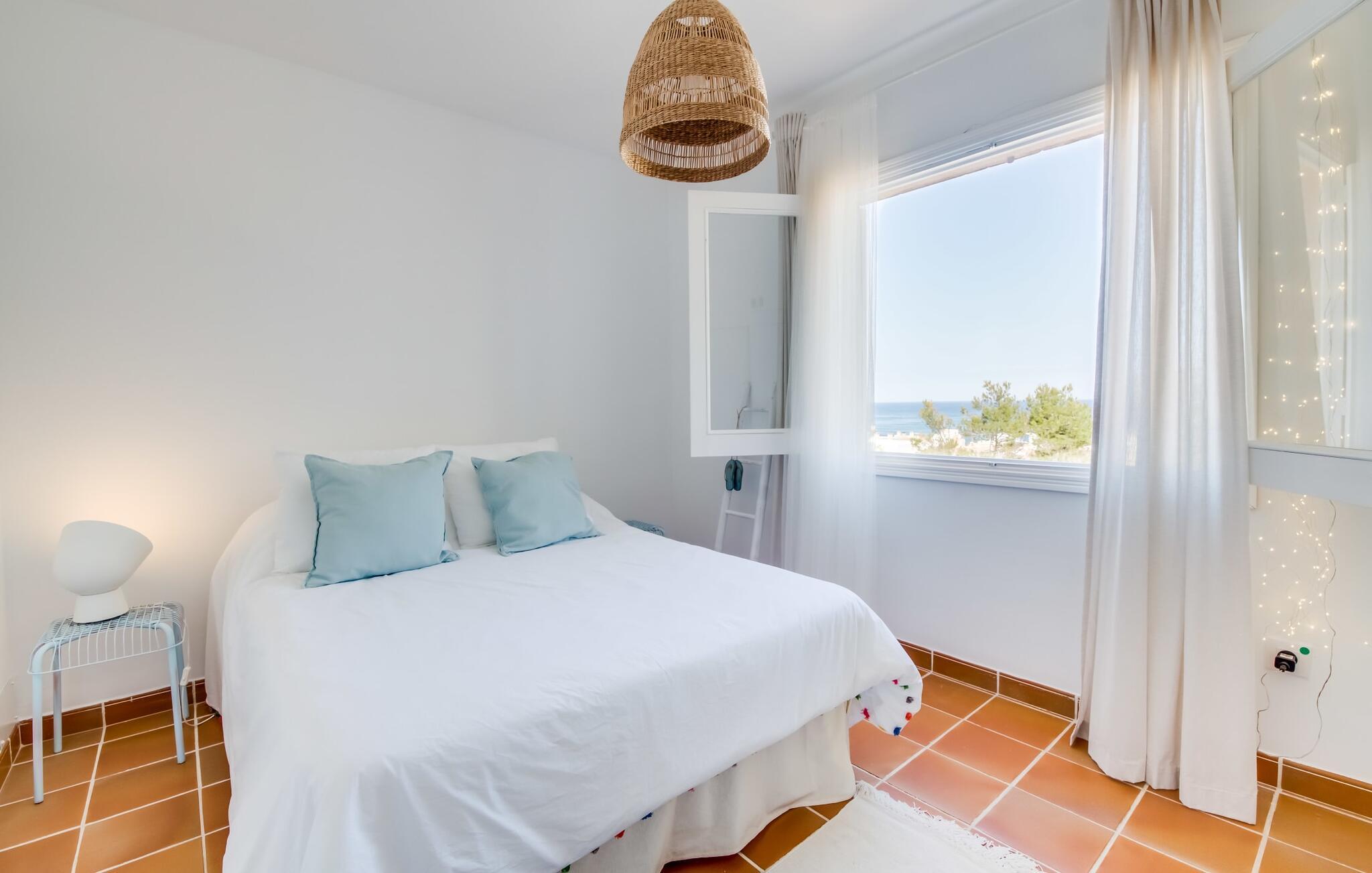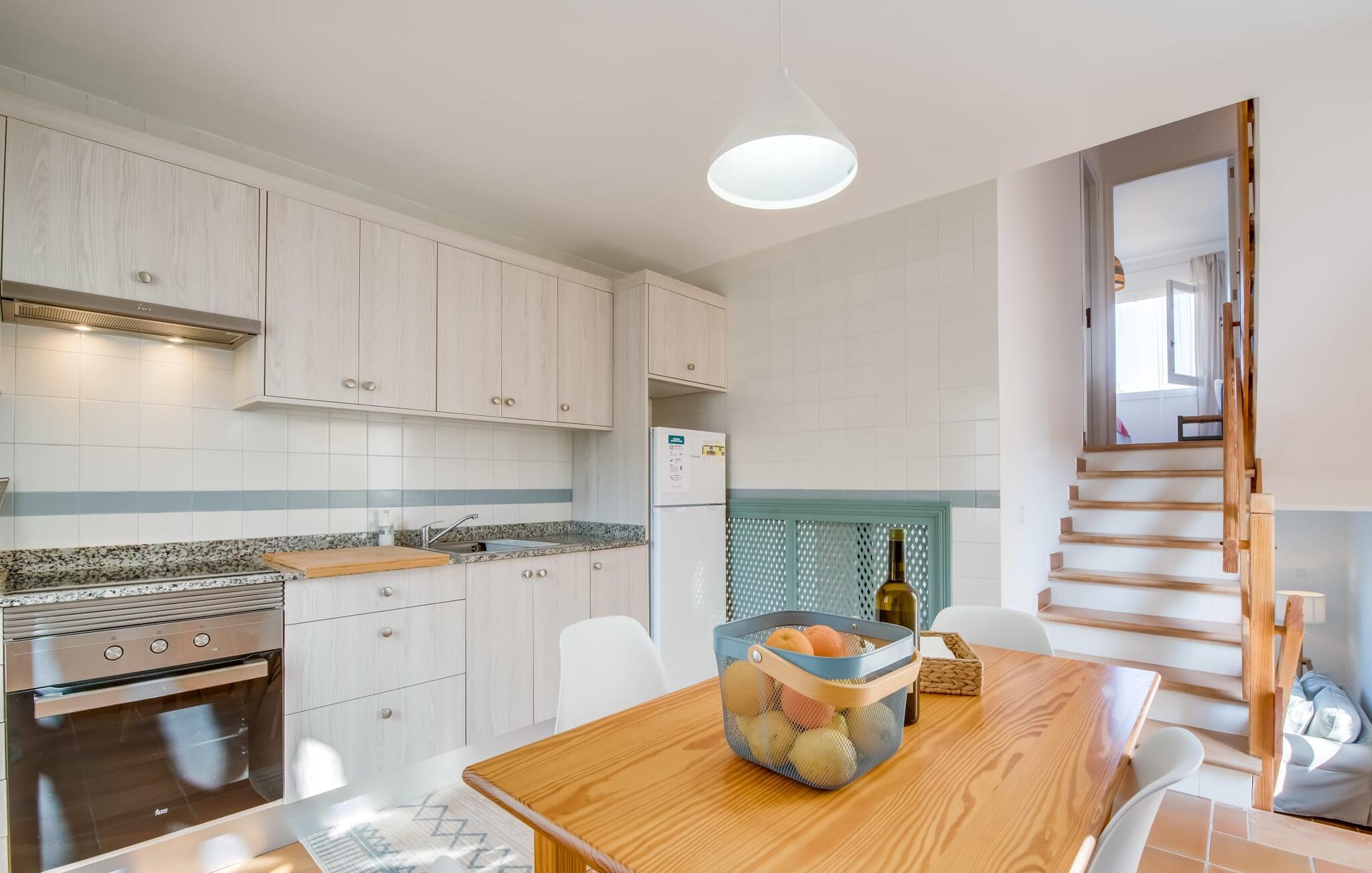 Tilbring uberørte dage ved havet, bo i en sommervilla midt i den smukke kystby Son Serra de Marina - denne feriedrøm bliver til virkelighed med "Vora Mar"! Den let hævede terrasse, der er udstyret med en række møbler, byder på vidunderlige muligheder for at gøre jer godt tilpas under den åbne middelhavshimmel. En privatsfære på nabo-dobbelthuset giver det nødvendige privatliv og en udendørs bruser - selv med varmt vand - giver den efterlængte forfriskning. Den naturlige megapool er ikke langt væk, og sand og havvand venter solsøgende, der elsker lange dage på stranden. Når I kommer hjem og nyder jeres solnedgang, kan I nyde den livlige atmosfære i landsbyen og tænke over, hvor I måske vil tage hen om aftenen. Måske slentre ind på en af de indbydende restauranter og nyde regionale delikatesser? Et gulv-til-loft vindue ud mod terrassen giver masser af lys ind i huset og gør det nemmere at skifte mellem udendørs og indendørs ophold. Venlig, trendy indretning med et charmerende maritimt præg gør også opholdet indendørs yderst attraktivt - I kan f.eks. trives i sofaen foran tv'et. På kølige aftener skaber en brændeovn hyggelig varme. Den samtidige havudsigt, som I kan nyde gennem nogle vinduer, og den blide havbrise, der blæser gennem rummene, skaber en helt særlig atmosfære. Dette suppleres effektivt af de forskellige niveauer, I kan bevæge jer imellem i denne villa på Mallorca. Stuen i stueetagen fører til det rummelige og lyse køkken, som har alt hvad I behøver til en dag med selvforplejning, herunder et spisebord. De to andre etager rummer de tre hyggelige soveværelser og to badeværelser. Absolut et meget attraktivt hus for havelskere og feriegæster, der kan lide at bo centralt! Den sommerlige villa "Vora Mar" venter jer midt i den charmerende kystby Son Serra de Marina på Mallorca. På grund af sin beliggenhed på gaden er I perfekt forbundet fra dobbelthuset: alle faciliteter - butikker, restauranter og caféer - er i gåafstand til en ubekymret hverdagsferie. I kan nemt nå stranden uden bil, mens I ideelt set kan udforske de andre kystsektioner af den lange bugt Alcúdia mod nord med jeres lejebil.