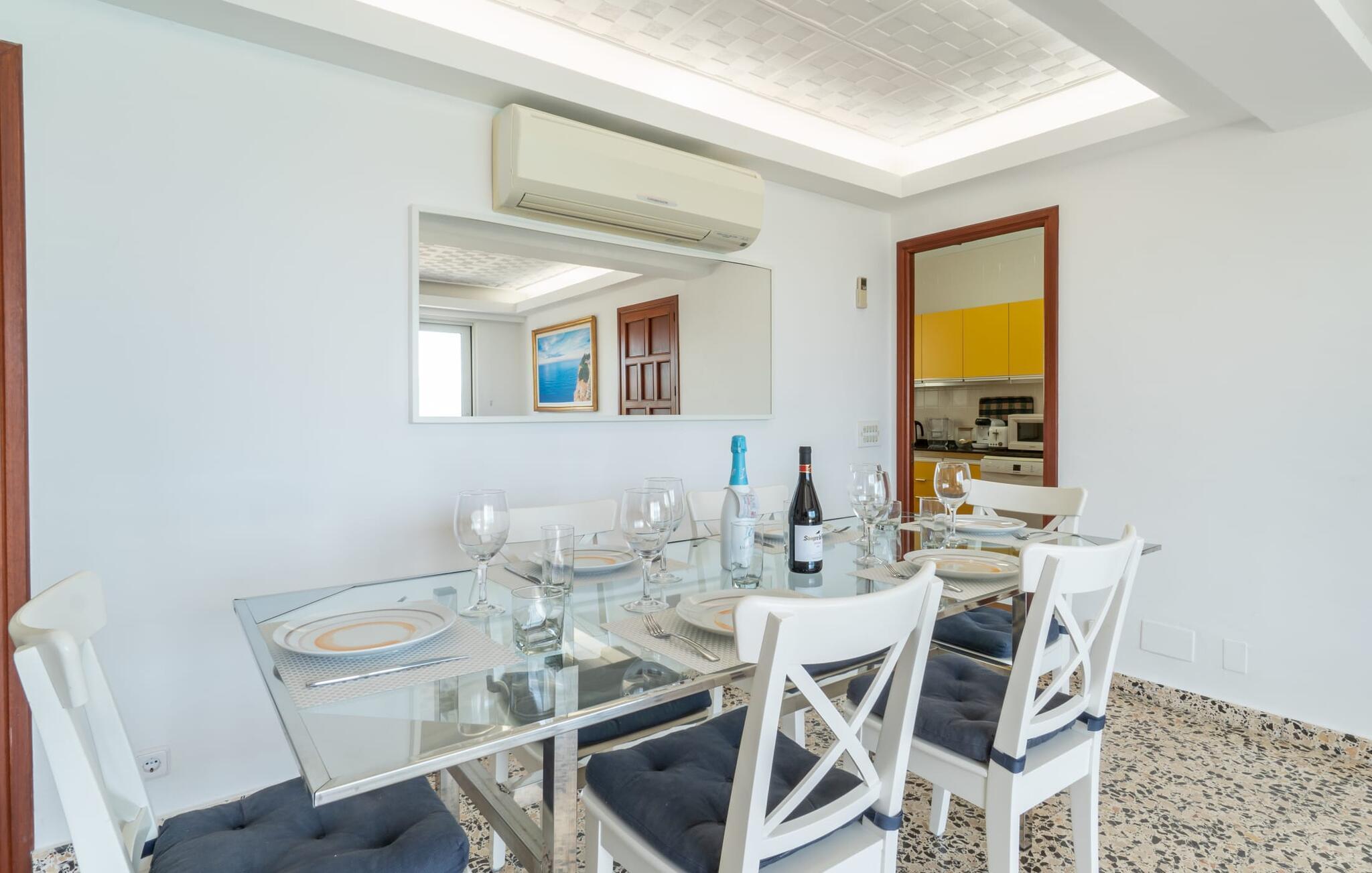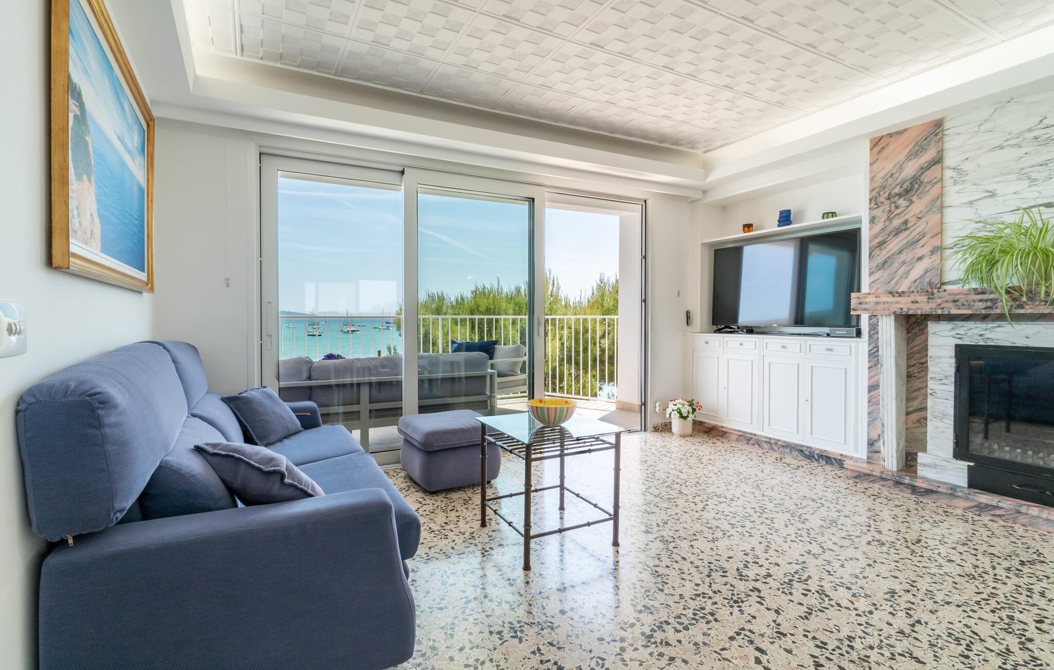 Hvis du ønsker at være omgivet af den blide lyd af bølgerne, der ruller ind på kysten dag efter dag under din ferie på Mallorca, er denne bolig en absolut gave. Det er svært at bo tættere på havet – kun jordpromenaden adskiller dig fra vandet. Fra din private altan, som er delvist overdækket og også kan skygges med et fortelt, har du perfekt udsigt til det hele, kan se travlheden på land og vandet og nyde en kølig drink i ro og mag. Og hvis du har lyst til at forfriske dig selv i den enorme naturlige pool, skal du bare klatre de få trin fra anden sal og et par trin mere ned, så er du i det kølige vand. Dette er et Fincallorca feriehus. Det er også behageligt køligt inde i den klimatiserede ferielejlighed. Hvide vægge og store gulvfliser skaber en stilfuld stemning i stue-spisestuen, der støder op til altanen, som har en behagelig sofa og et smukt bord til seks medrejsende. Fladskærms-tv'et monteret på væggen er tilgængeligt for god underholdning, men vil måske næppe konkurrere med den fantastisk smukke udsigt over Pollença-bugten, som også kan nydes indendørs. På kølige aftener skaber den rummelige pejs med marmoromkring, som kan bruges hvis det ønskes, en særlig atmosfære. Det fuldt udstyrede køkken ligger ved siden af og har alle de nødvendige redskaber til uafhængige dage med selvforplejning. De tre hyggelige soveværelser ligger på den anden side af huset. To badeværelser, et med bruser og et med badekar, fuldender rummet i dette feriehus på Mallorca, som kan være et ukompliceret sted at bo på et eksklusivt sted for par eller en familie, der rejser sammen. I den smukke nordlige del af Mallorca ligger ferielejligheden "Voramar on Pinewalk" med en førsteklasses beliggenhed lige ved havet. Fra balkonen kan du se ud over stranden ved dine fødder, mens du nyder dit privatliv. Huset ligger på den berømte fyrrepromenade af samme navn, en ren gågade i Pollença-bugten. Afhængig af vindretningen kan du her og der se den nærliggende vej, som forbinder dig glimrende til forskellige destinationer. Du kan dog sagtens slentre rundt i byen til fods, shoppe og besøge restauranter.
