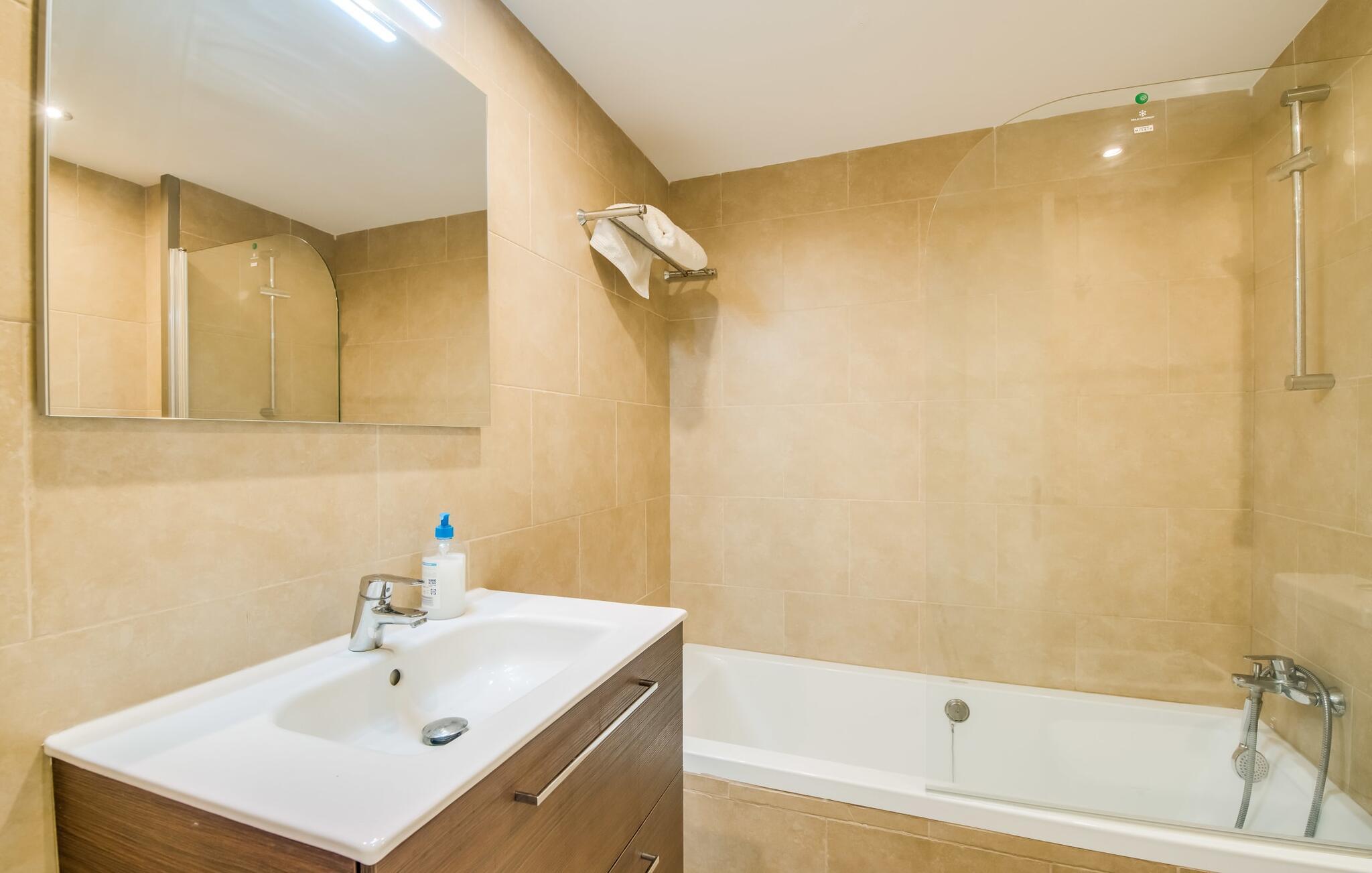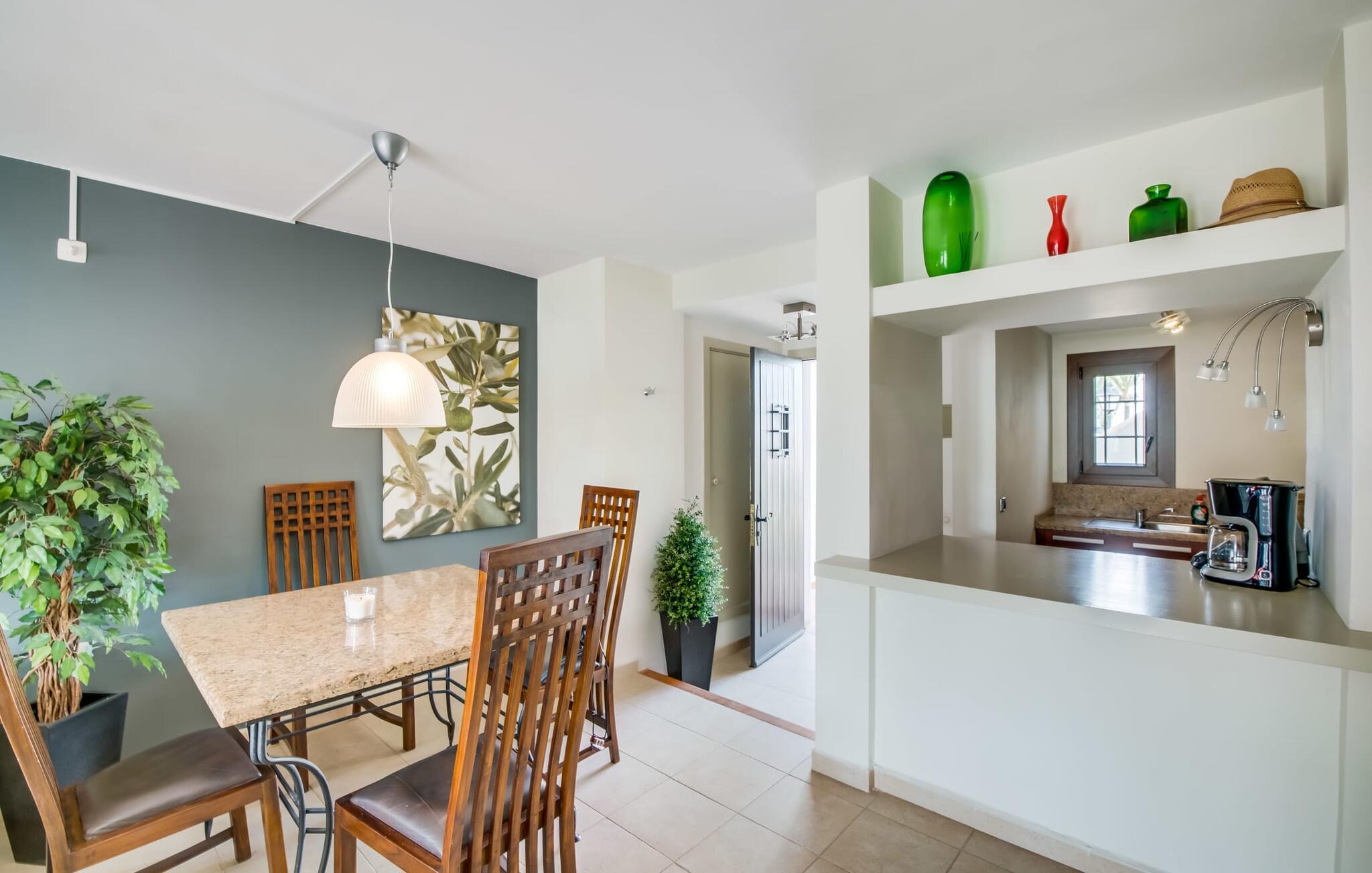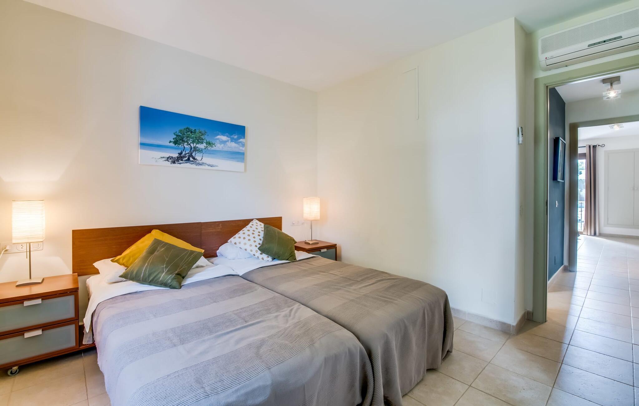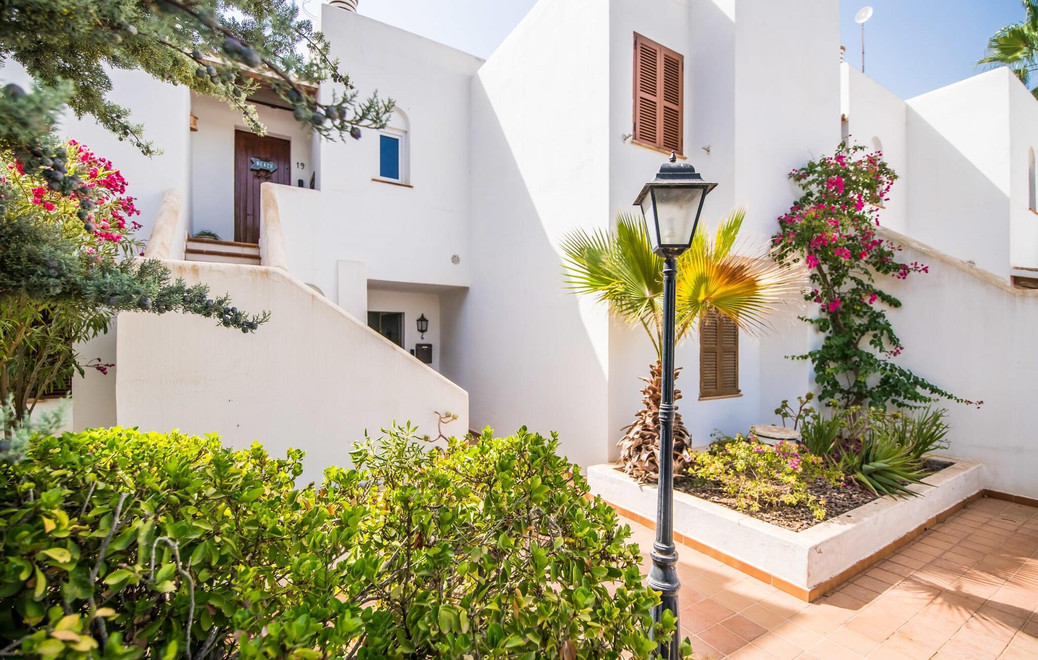 Den charmerende ferielejlighed "Yachthafen Dor" venter på jer i et funklende hvidt, arkitektonisk meget smukt designet bygningskompleks direkte på marinapromenaden i Cala D'Or. Stedets navn kan oversættes som "Golden Bay", og faktisk har badebugten med sin fine gule sandstrand, azurblå vand og børnevenlige lavvandede indsejling ikke dette navn for ingenting. Cala D'Or består næsten udelukkende af lyse hvide bygninger som denne, hvor ferielejligheden er særdeles bekvemt placeret i lavsæsonen. Brug af det fælles poolområde er inkluderet i prisen. Husene er omgivet af fyrreskove og palmer, hvilket giver stedet et meget naturligt udtryk. På grund af beliggenheden på havnebassinet nyder I ikke kun en helt betagende udsigt fra den generøst store altan, men I kan også nyde jeres velduftende morgenkaffe ved spisebordet og afslutte aftenen romantisk. Med denne beliggenhed drager I fordel af nærheden til mange restauranter og barer langs havnepromenaden. Ikke desto mindre har I adgang til et køkken til jeres ønskede selvforplejning, som giver jer mere fleksibilitet end hotelovernatning. Pladsen i ferieboligen, som har et ret åbent design, er også optimal. I tilknytning til stuen ligger spisepladsen med sit store panoramavindue, hvis vinduessæde giver en fantastisk udsigt selv i de køligere årstider. Værelserne, der er indrettet i venlige farver, er kølige om sommeren og kan nemt varmes op i lavsæsonen takket være den varme-kolde aircondition. To soveværelser, hver med komfortable badeværelser med badekar (et af dem en suite), tilbyder behagelig komfort uden at begrænse privatlivets fred. Velkommen til "Yachthafen Dor" - nyd jeres tid ude i den perfekte kombination af by, land og hav. Den velholdte ferielejlighed "Yachthafen Dor" venter på jer på den sydlige del af øen i den smukke kystby Cala D'Or. Navnet siger selvfølgelig det hele, da det lyse hvide lejlighedskompleks ligger direkte ved lystbådehavnen. Fra balkonen i den centralt beliggende ferielejlighed kan I nyde en direkte udsigt over havnen, som ikke er skæmmet af lejlighedsvise akustiske lyde fra gaden. I kan nå byen og den smukke sandstrand i bugten af samme navn til fods.