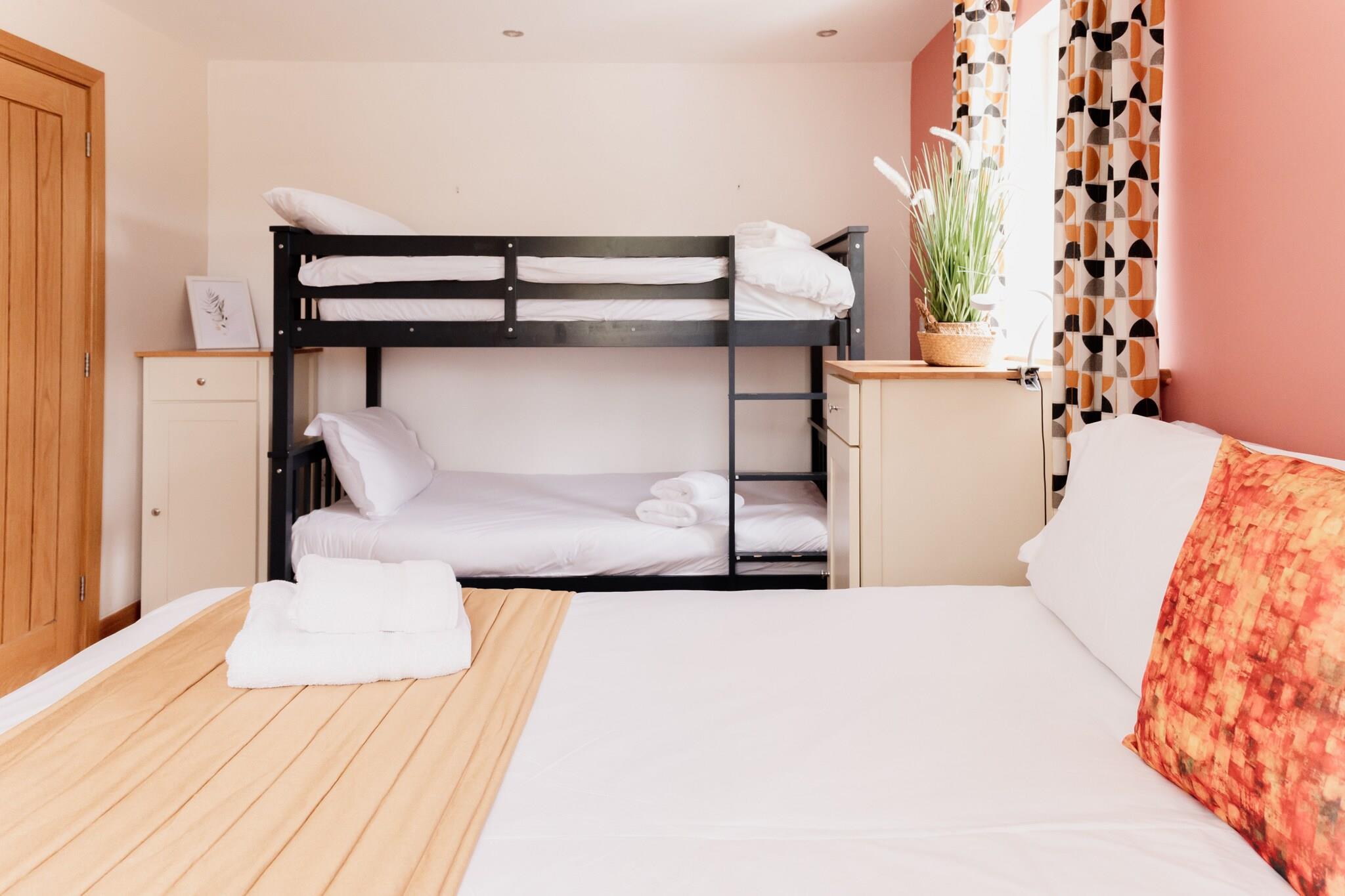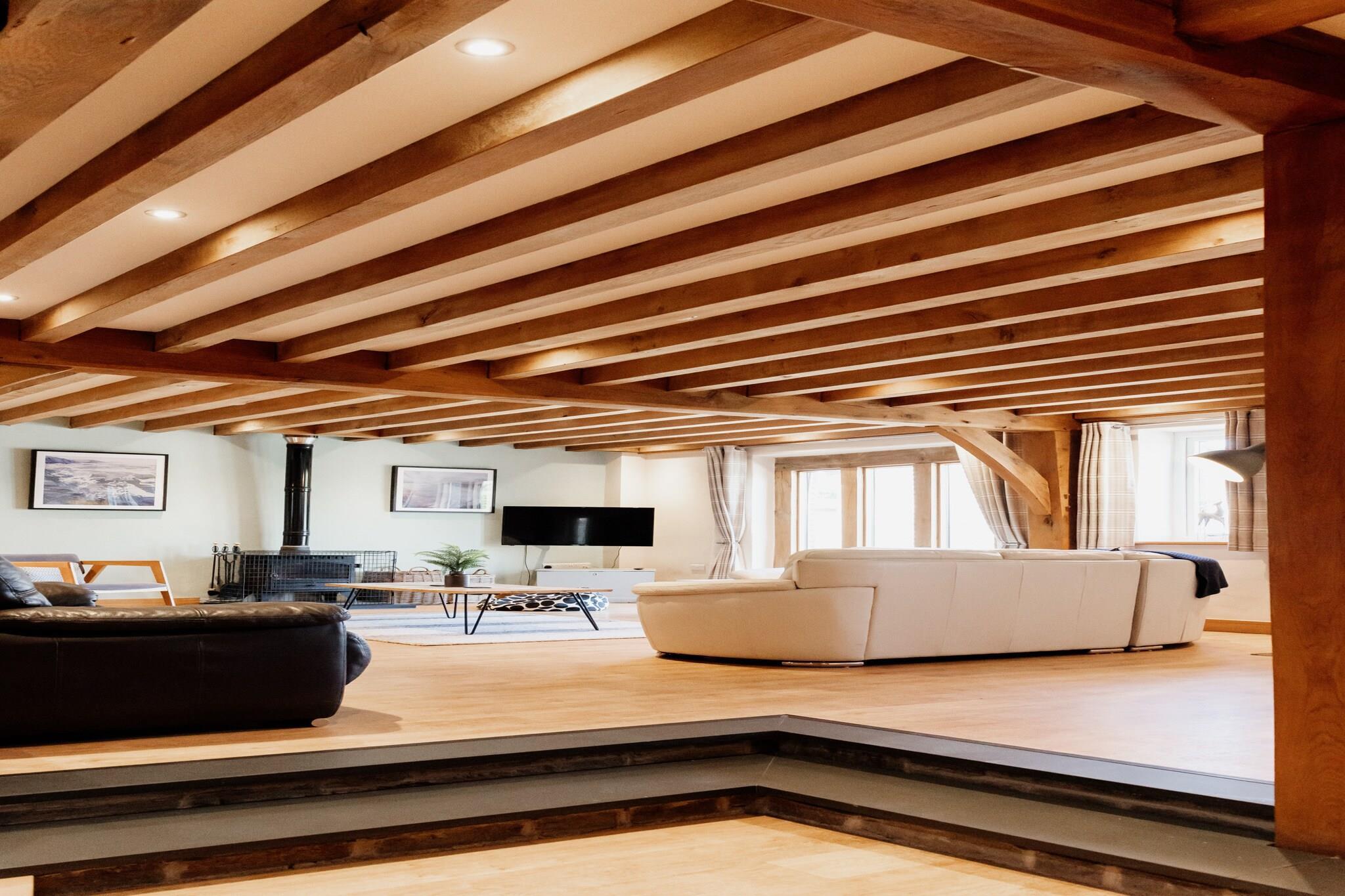Flygt til det naturskønne walisiske landskab og oplev den ultimative grupperejse på The Welsh Barn. Dette ekspansive tilflugtssted, beliggende inden for 13 hektar roligt land, tilbyder tre sammenhængende lader - Pumlumon, Cambrian og Barcud - med plads til op til 38 gæster i alt. Uanset om du planlægger en familiesammenkomst, et venners retreat eller en særlig fest, er denne unikke ejendom designet til at skabe uforglemmelige minder. Hver stald er omhyggeligt designet med komfort og luksus i tankerne og giver rummelige opholdsområder, fuldt udstyrede køkkener og smukt indrettede soveværelser med en-suite badeværelser. Nyd en fantastisk udsigt over det omkringliggende landskab fra private balkoner, slap af i spabadet med 12 pladser, eller samles til sjove aftener i de interaktive spillelokaler. The Welsh Barn byder også dine firbenede venner velkommen, hvilket gør det til en ideel destination for kæledyrsvenlige ferier. Med en række suiter at vælge imellem, inklusive luksusmuligheder med super kingsize-senge og betagende udsigt, er du sikker på at finde den perfekte plads til dit ophold. Udforsk den nærliggende skønhed i Aberystwyth, gå en tur gennem naturen, eller slap af i de fredelige omgivelser - dette er mere end blot et sted at bo, det er en oplevelse, der bringer kære tættere på hinanden.