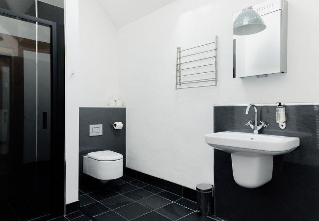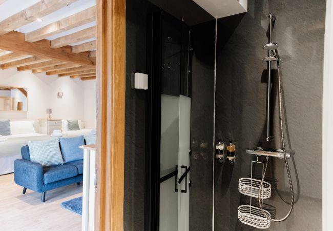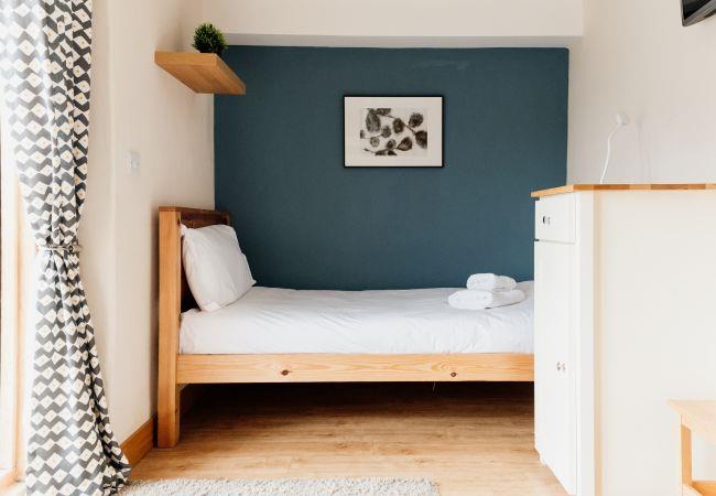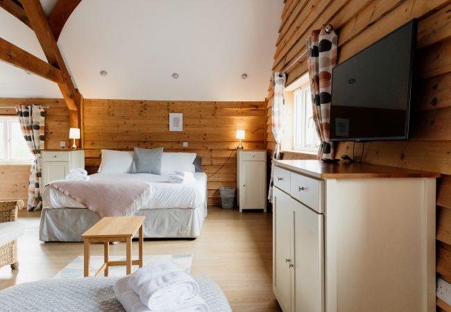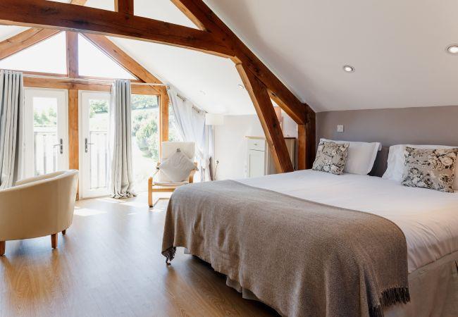 Barcud Coch - Ground floor. Super King-sized bed (Zip & link, twin upon request.) SMART tv and Netflix. Private access directly to the Welsh slate patio. Wheelchair accessible with ramp. (Sleeps 2)