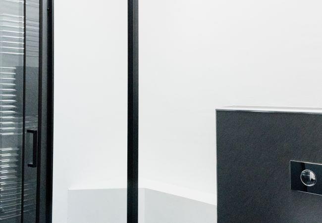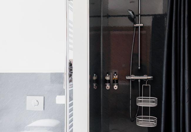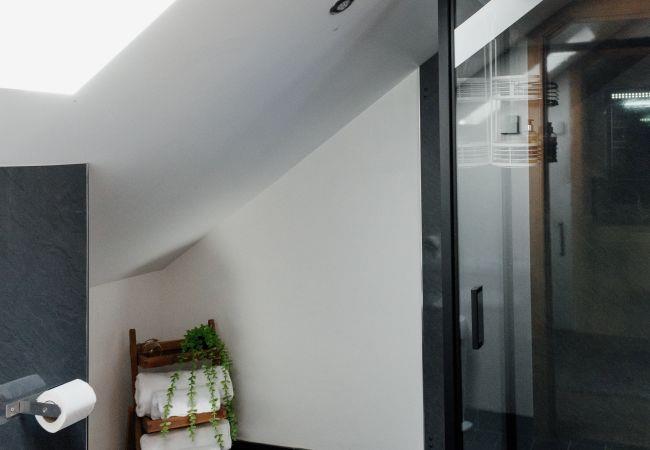 Family Shower Room – Ground Floor - Grohe shower, heated towel rail, an LED illuminated cabinet and toilet.
