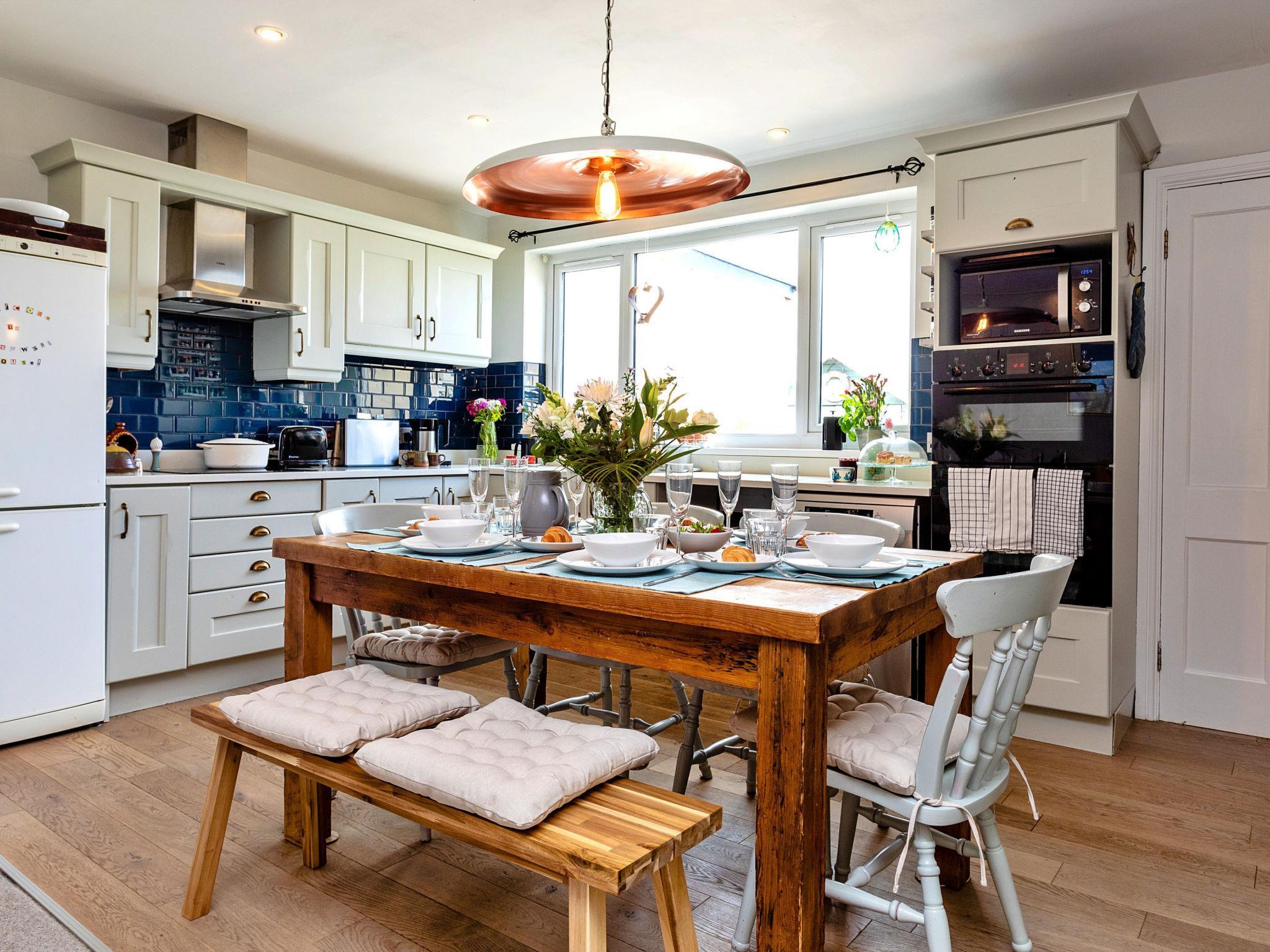 "Cresswell House", 5-room house 140 m2. Object suitable for 6 adults. Living room with open-hearth fireplace and TV. 1 room with 1 double bed and TV. 1 room with 1 double bed. 1 room with 1 bed. 1 room with 1 bed. Kitchen (oven, dishwasher, toaster, kettle, microwave, freezer). Shower/WC, sep. WC. View of the sea and the garden. Facilities: washing machine, iron. Internet (WiFi, free). Please note: non-smokers only. 2 pets/ dogs allowed. Smoke alarm.