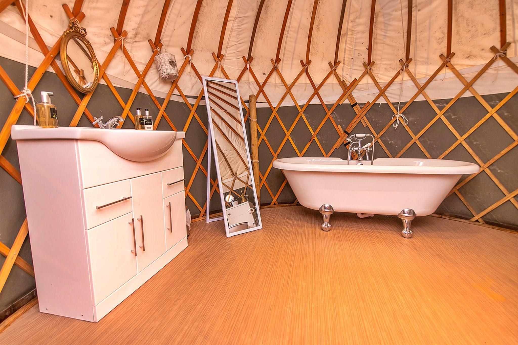 Beliggende i et betagende hjørne af Alexander House-grunden tilbyder Bramble Yurt et idyllisk tilflugtssted med en fantastisk udsigt over Gleneagles og Ben Vorlich. Perfekt til par, der søger en fredelig ferie, denne luksuriøse yurt kombinerer naturlig skønhed med komfort. Slap af i dit private brændefyrede spabad under stjernerne, lyt til naturens lyde og nyd det fredfyldte landskab, der omgiver dig. Jurten har en overdådig king-size seng, en hyggelig brændeovn og et en-suite badeværelse med et moderne 12-fods design, hvilket sikrer et romantisk og afslappende ophold. Indenfor giver jurten et komfortabelt opholdsområde med en sofa sammen med væsentlige køkkenfaciliteter såsom en to-ring induktionskomfur, køleskab med fryser og grundlæggende redskaber - ideel til at tilberede enkle måltider. Sengetøj og håndklæder er inkluderet, sammen med USB-stik og belysning for at forbedre din komfort. Til spisning al fresco er der plads til to, en grill og parkering til et køretøj. Bemærk venligst, at adgang kræver en stejl, lang indkørsel, og en bil er afgørende; lavthængende køretøjer kan finde rejsen udfordrende, især under vinterforhold. Mens WiFi ikke er tilgængeligt på grund af fjernplaceringen, er 4G-signaler typisk stærke på alle mobilnetværk, så du kan forblive forbundet, hvis det er nødvendigt. Sørg for at forberede optændingen, hvis du ønsker at holde varmen og hygge under dit ophold. Denne fortryllende yurt lover en virkelig magisk oplevelse med evigt skiftende landskaber og spektakulære udsigter, der vil fange dit hjerte. Uanset om det er en romantisk weekend eller et fredeligt tilflugtssted, tilbyder Bramble Yurt en uforglemmelig flugt ud i naturen.