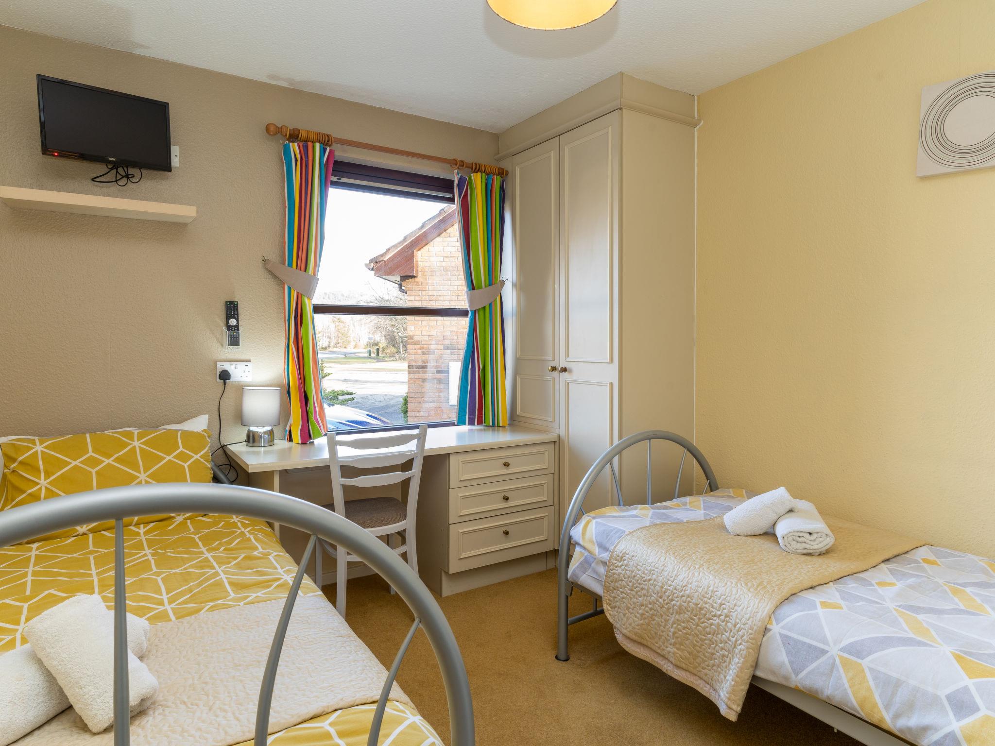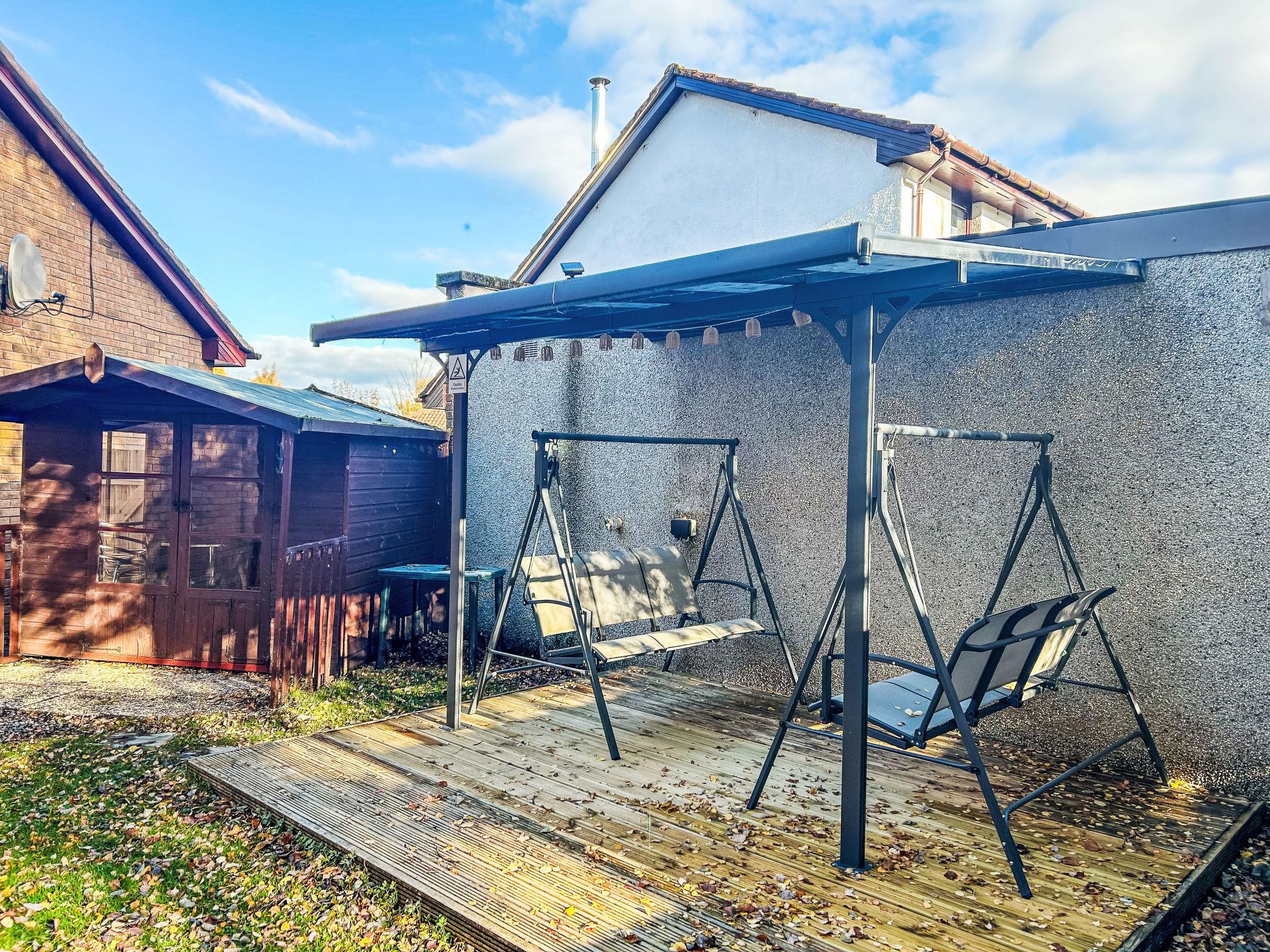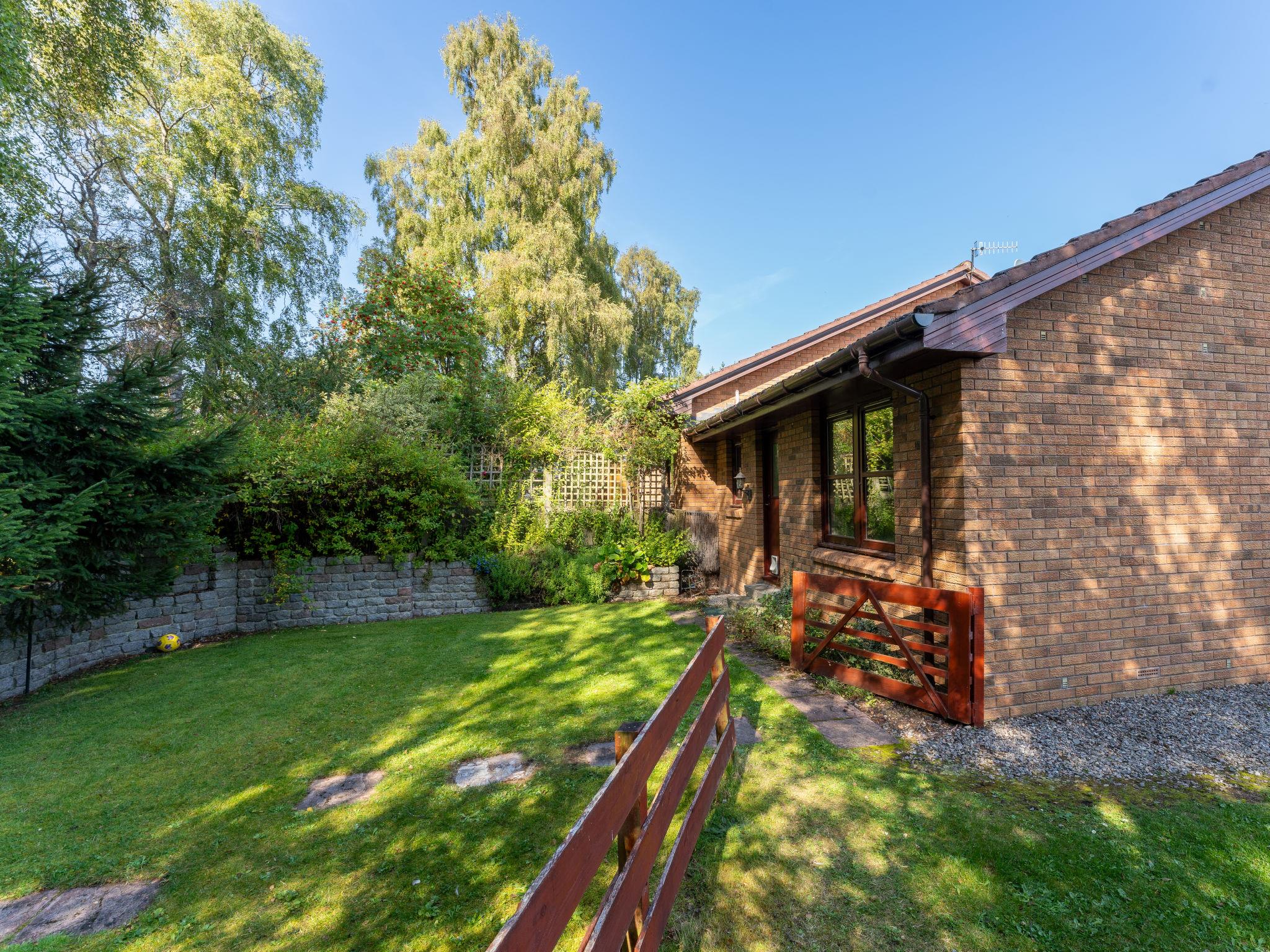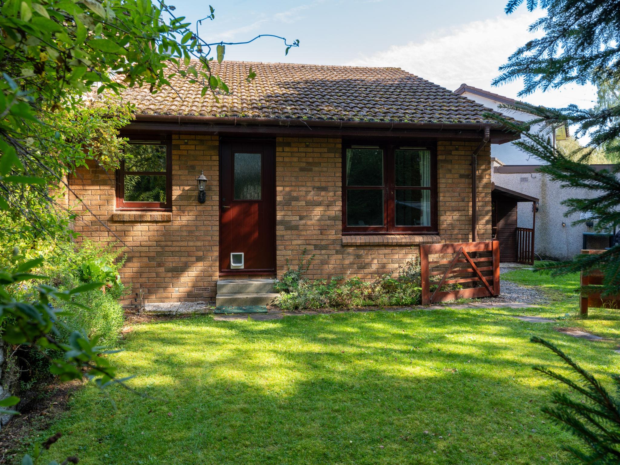 Child friendly, cosy, comfortable bungalow "Glenfiddich", semi-detached. 2 km from the centre of Aviemore, in a quiet, sunny position, 15 km from the lake, 18 km from the skiing area, in a cul-de-sac. Private: garden (fenced) lawn. Garden furniture, barbecue. In the complex: storage room for bicycles, storage room for skis. Parking at the house. Shop, grocery 550 m, supermarket 2 km, restaurant 2 km, bar 2 km, bus stop "Aviemore (dalfaber)" 300 m, railway station "Aviemore" 2 km. Golf course (18 hole) 1 km, ski lift 18 km. Nearby attractions: Dalfaber Golf & Country Club 700 m, Cairngorm National Park, Highland Wildlife Park 15 km, Inverness 48 km, Landmark Forest Adventure Park 9 km, Highland Folk Museum 27 km. Well-known ski regions can easily be reached: Cairngorms ski resort 18 km, The Lecht ski resort 54 km. Well-known lakes can easily be reached: Loch Morlich 15 km, Loch Garten 14 km, Loch Ness 69 km. Please note: baby equipment (included).