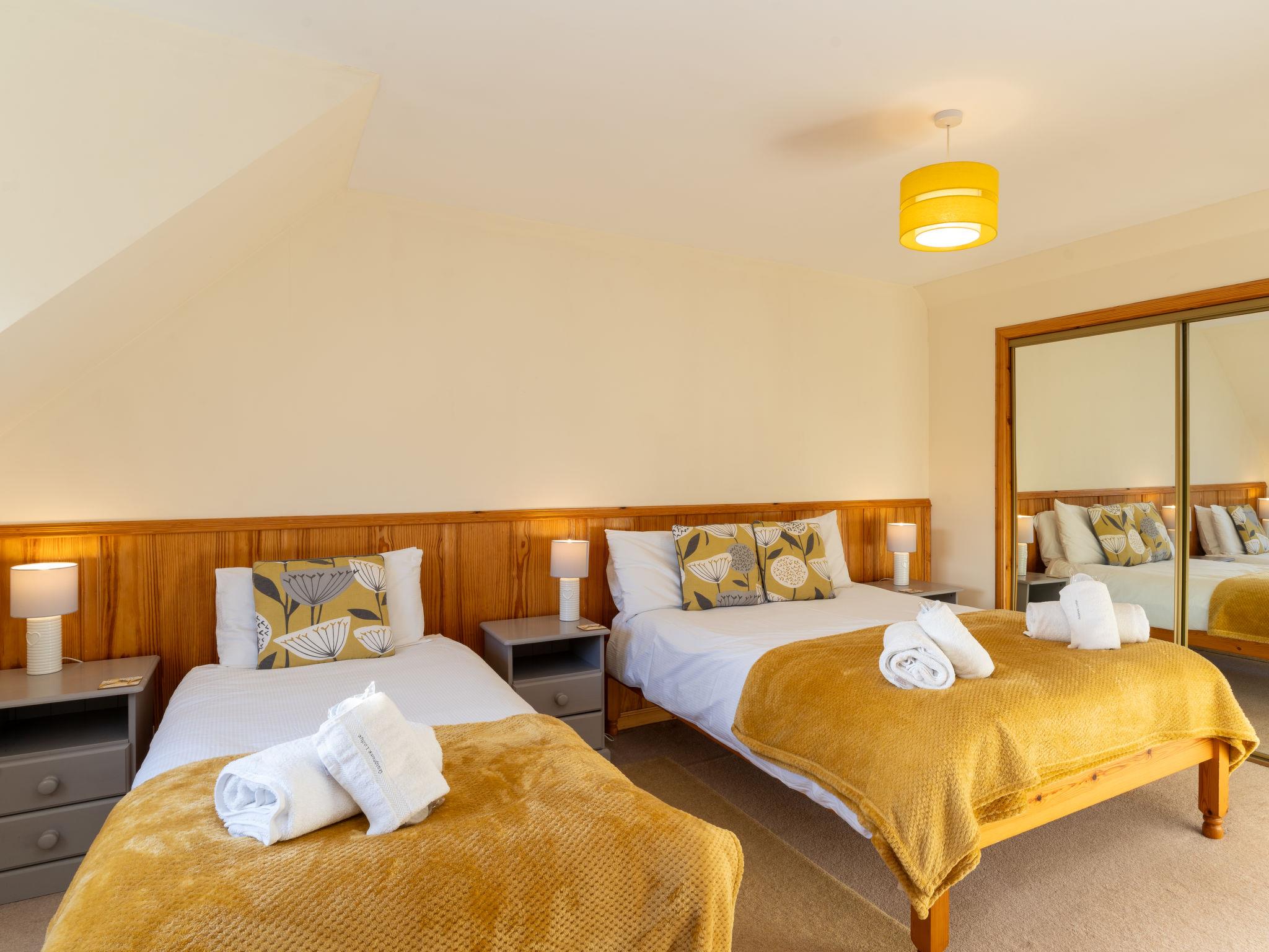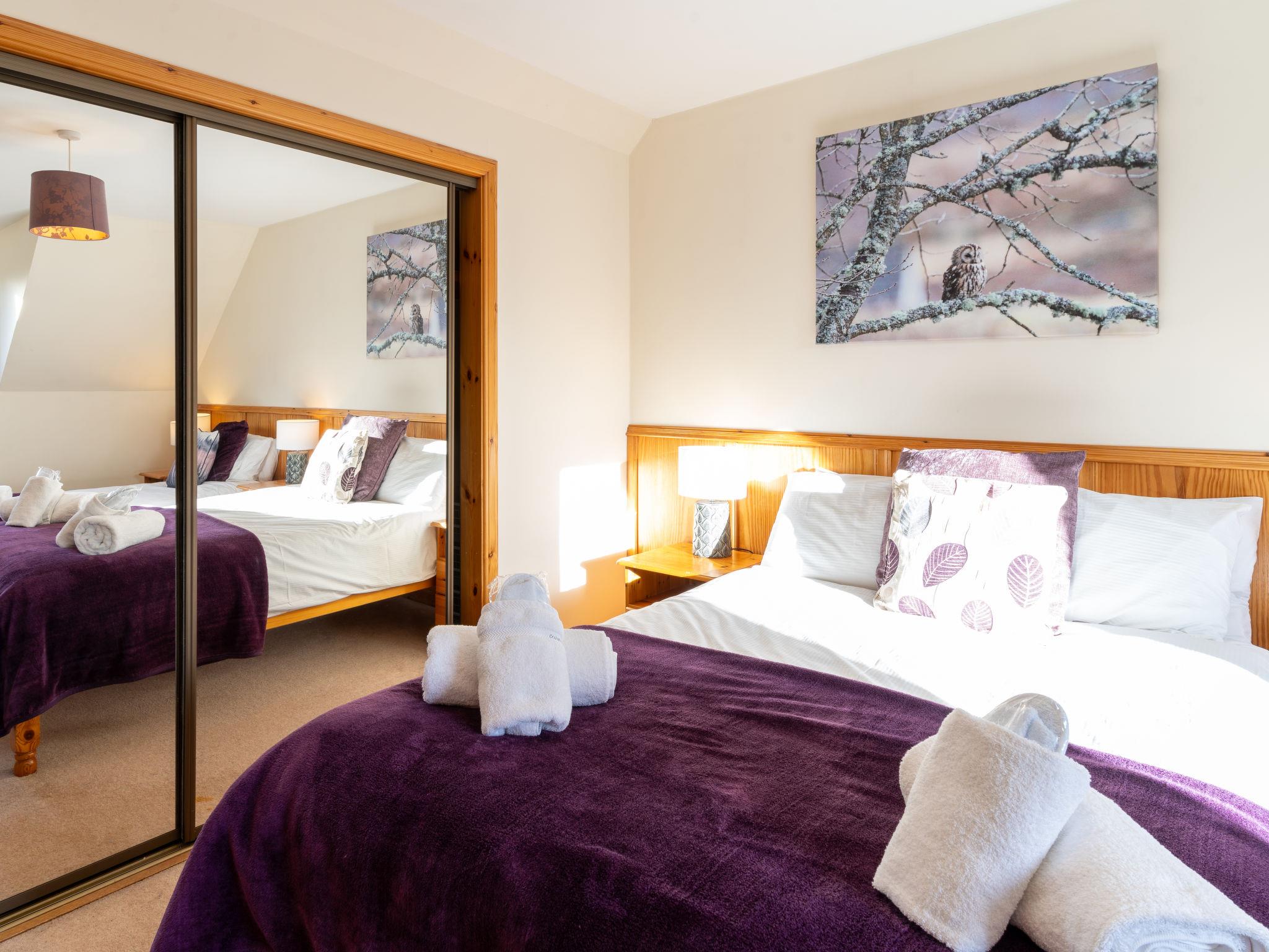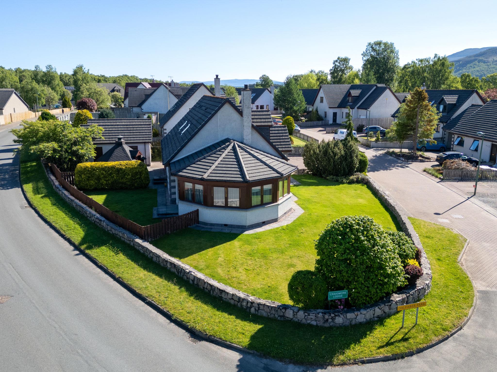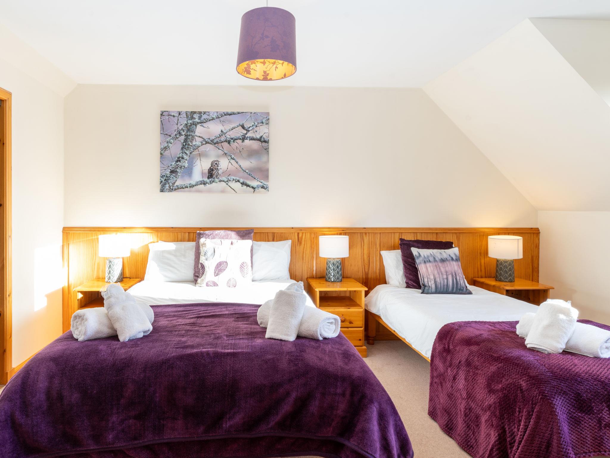 The property sits within the Cairgorms National Park. Large, modern villa "Craigmore Lodge", 2 storeys, detached. 2 km from the centre of Aviemore, in a quiet position, 15 km from the lake, 18 km from the skiing area. Private: well-kept garden with lawn. Hot tub, patio, garden furniture, barbecue house. In the complex: storage room for bicycles, storage room for skis, washing machine, tumble dryer. Parking (for 3 cars) at the house. Shop 1 km, grocery 1 km, supermarket 2 km, restaurant 2 km, bar 2 km, bus stop "Aviemore (dalfaber)" 500 m, railway station "Aviemore" 2 km. Golf course (18 hole) 750 m, mountain railway 18 km, ski lift 18 km. Nearby attractions: Strathspey Railway 2 km, Cairngorm National Park, Inverness 48 km, Highland Wildlife park 15 km, Landmark Forest Adventure Park 9 km, Highland Folk Museum 27 km. Well-known ski regions can easily be reached: Cairngorms ski resort 18 km, Lecht Ski Centre 54 km. Well-known lakes can easily be reached: Loch Morlich 15 km, Loch Ness 69 km, Loch Garten 14 m. Please note: car recommended. Baby equipment (included). The owner does not accept any youth groups.