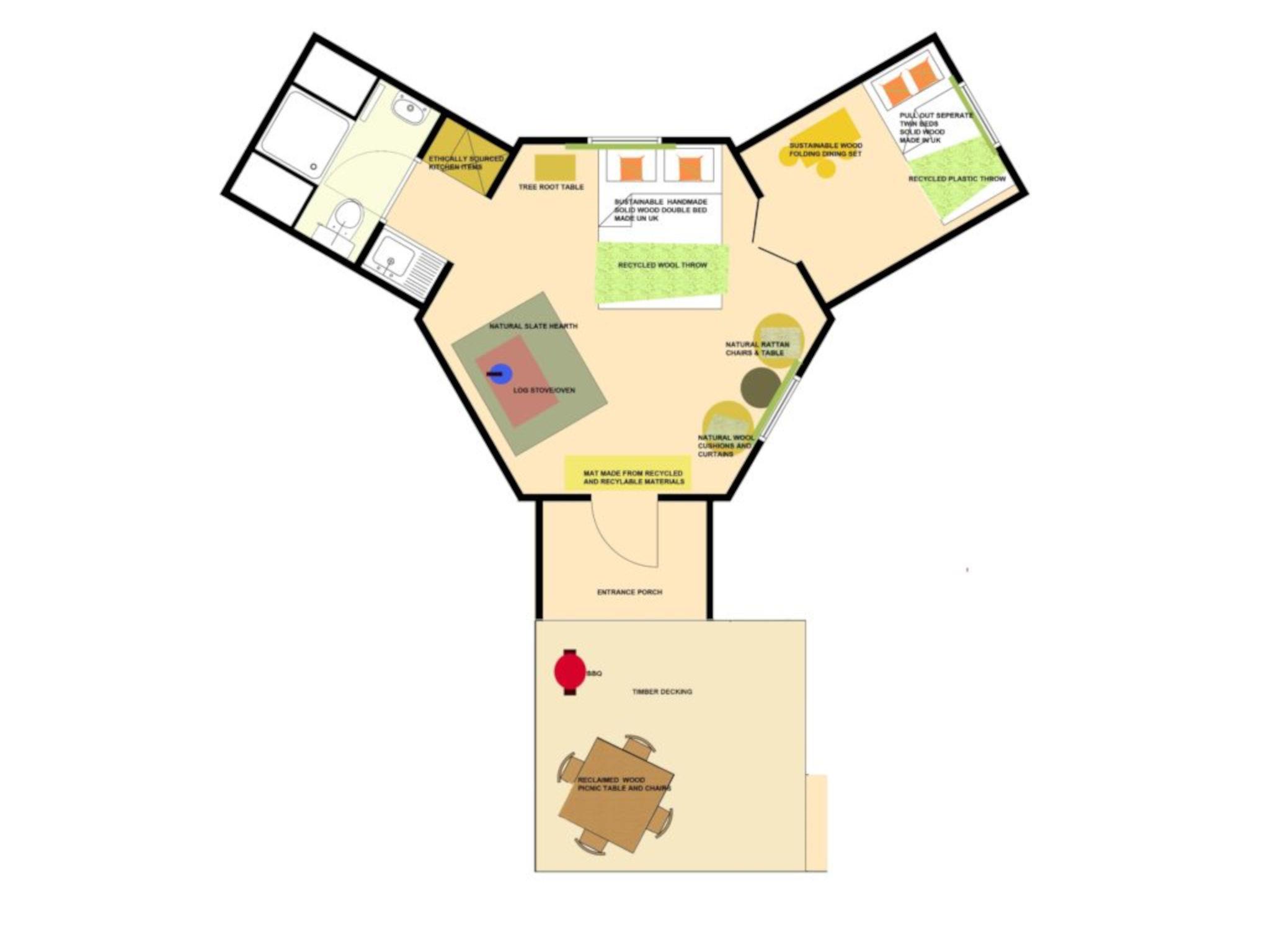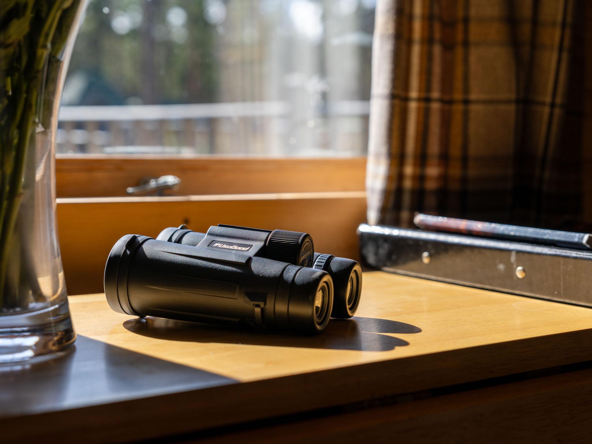 "Ghillie’s Bothy", 2-room chalet. Tasteful and cosy furnishings: open living/sleeping room with 1 double bed and radio. Exit to the terrace. 1 small room with 1 bed (76 cm, length 155 cm), 1 pull-out bed (1 pers. 2 x 76 cm, length 155 cm), dining table. Small, open kitchen (oven, kettle) with wood-burning stove. Shower/WC. Wood heating. Terrace furniture, barbecue. Beautiful view of the forest. Facilities: children's high chair for up to 2 year olds (extra). Parking (1 car) at the house. Please note: suitable for families. Fridge without freezer, non-smoking house. Maximum 2 pets/ dogs allowed. The property is one of a type of property or apartment.