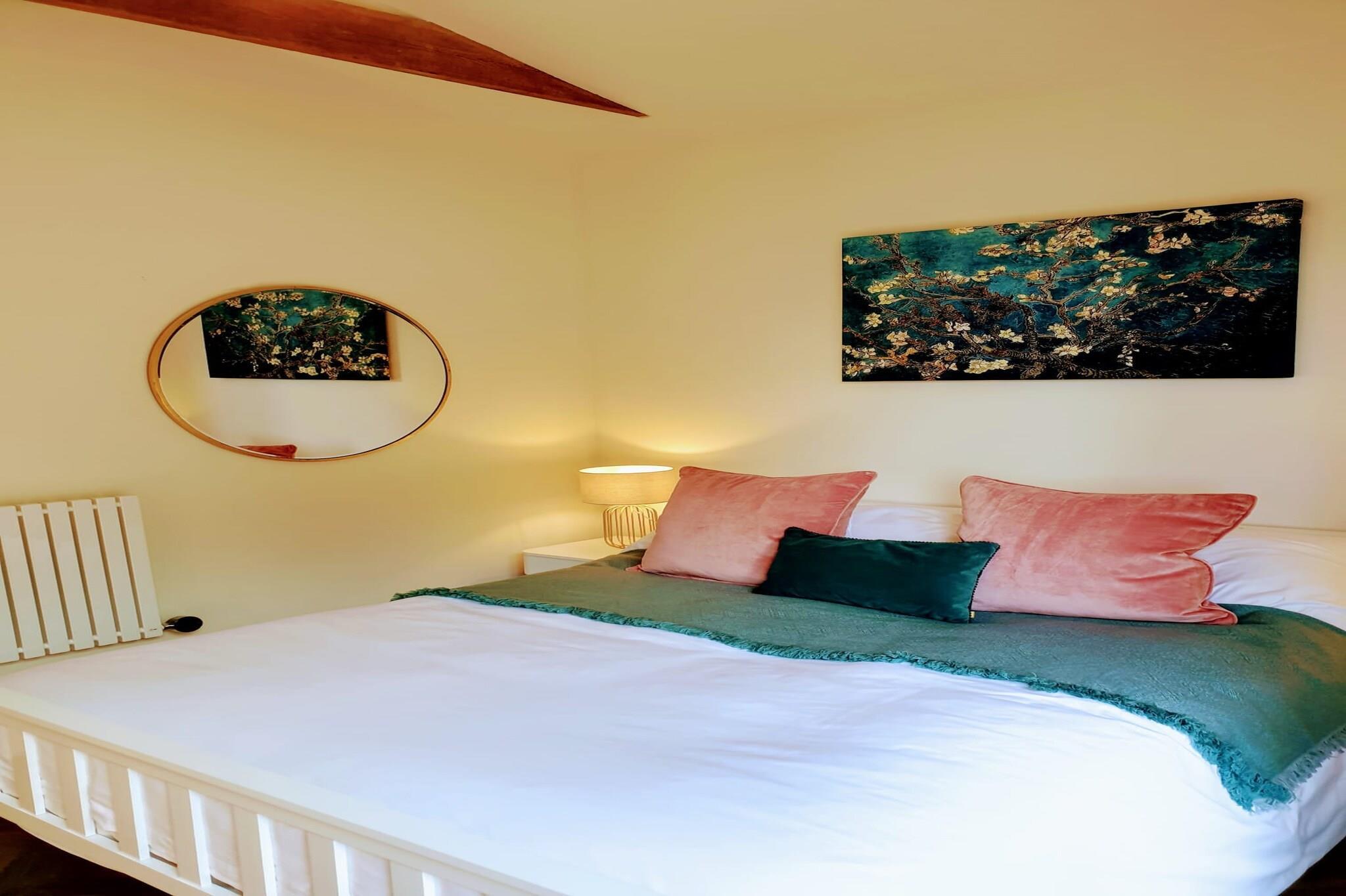 Denne luksusladekonvertering, beliggende i 7 hektar skov og vilde blomstereng, tilbyder den perfekte flugt med en betagende udsigt over grænsen mellem Cambridgeshire og Suffolk. Laden, som for nylig blev afsluttet efter øko-passivhaus-standarder, er designet til at holde dig komfortabel både sommer og vinter. Interiøret i åbent plan har et lyst, luftigt rum med charmerende gamle bjælker, et fuldt udstyret køkken og en hyggelig lounge med udsigt over landskabet og skoven. Køkkenet er udstyret til den højeste standard med fuld ovn, induktionskomfur, opvaskemaskine, vaskemaskine/tørretumbler, køleskab og plads til fire. Stuen byder på en fløjlssofa og lænestol, ideel til afslapning foran det digitale tv eller til at lytte til musik gennem lyddocken. Døre åbner ud til en rummelig indisk sandstensterrasse med en stilfuld havesofa i rattan, perfekt til at slappe af eller nyde en bålplads om aftenen. Det store soveværelse med en king-size seng tilbyder et roligt tilflugtssted med friske pasteltoner og sin egen private terrasse, mens dobbeltværelset er designet med en blanding af industriel stil og naturlige elementer. Begge værelser har luksuriøse Silent Night Eco-madrasser til en afslappende nattesøvn. Det luksuriøse familiebadeværelse omfatter badekar, vandfaldsbruser og håndklædetørrer. Stalden har også en hårtørrer og GHD glattejern for din bekvemmelighed. Ejendommen tilbyder også en række aktiviteter, herunder at udforske det private skovområde, se dyreliv såsom harer, hjorte og røde glenter, eller tage en kort køretur til nærliggende attraktioner såsom Linton Zoo, Duxford Imperial War Museum og Cambridge. Der er også masser af vandre- og cykelruter i det omkringliggende område, herunder den berømte Icknield Way-sti. For dem, der foretrækker ikke at køre bil, er landsbyen Balsham kun en kort gåtur væk, hvor du kan nyde en kop kaffe på The Old Butchers, besøge landsbybutikken eller udforske den lokale kirke fra det 13. århundrede. Med en række lokale pubber og cykelmuligheder tilbyder denne ejendom en perfekt base for en afslappende og eventyrlig ferie.