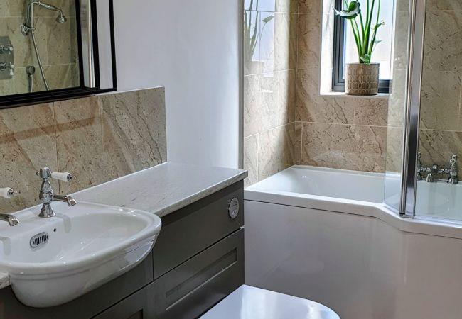 The luxury family bathroom has a bath, waterfall shower and heated towel rail. The barn is also equipped with hairdryer and GHD hair straighteners.