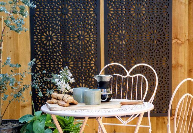 The stunning master bedroom, with king-size bed, is decorated with fresh pastel tones which create an uplifting feel in this light airy room. It has its own private patio - a quiet shaded spot where you can enjoy the 2 seater bistro set away from the heat of the day.