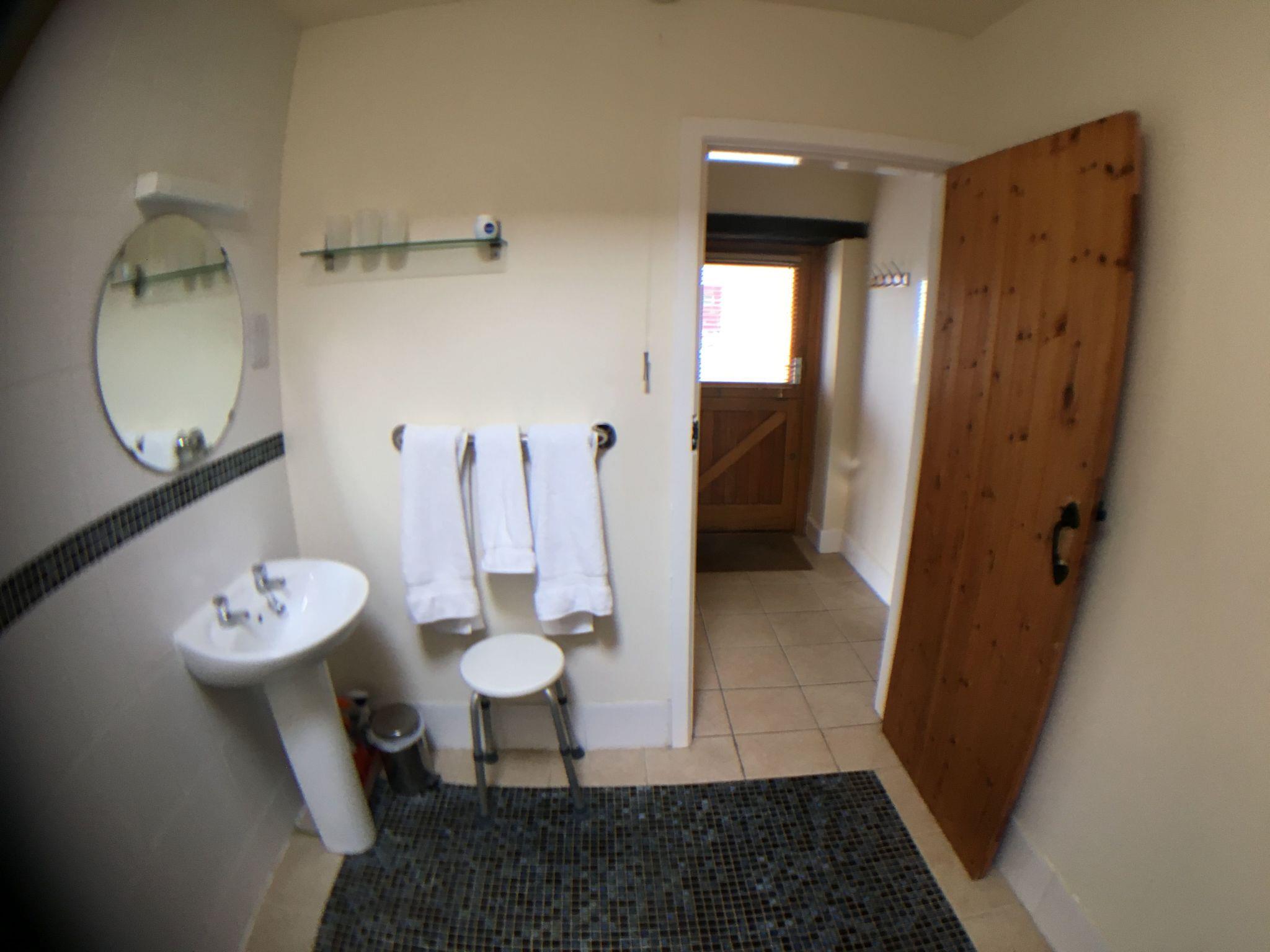 The bathroom is a wet room (no bath).