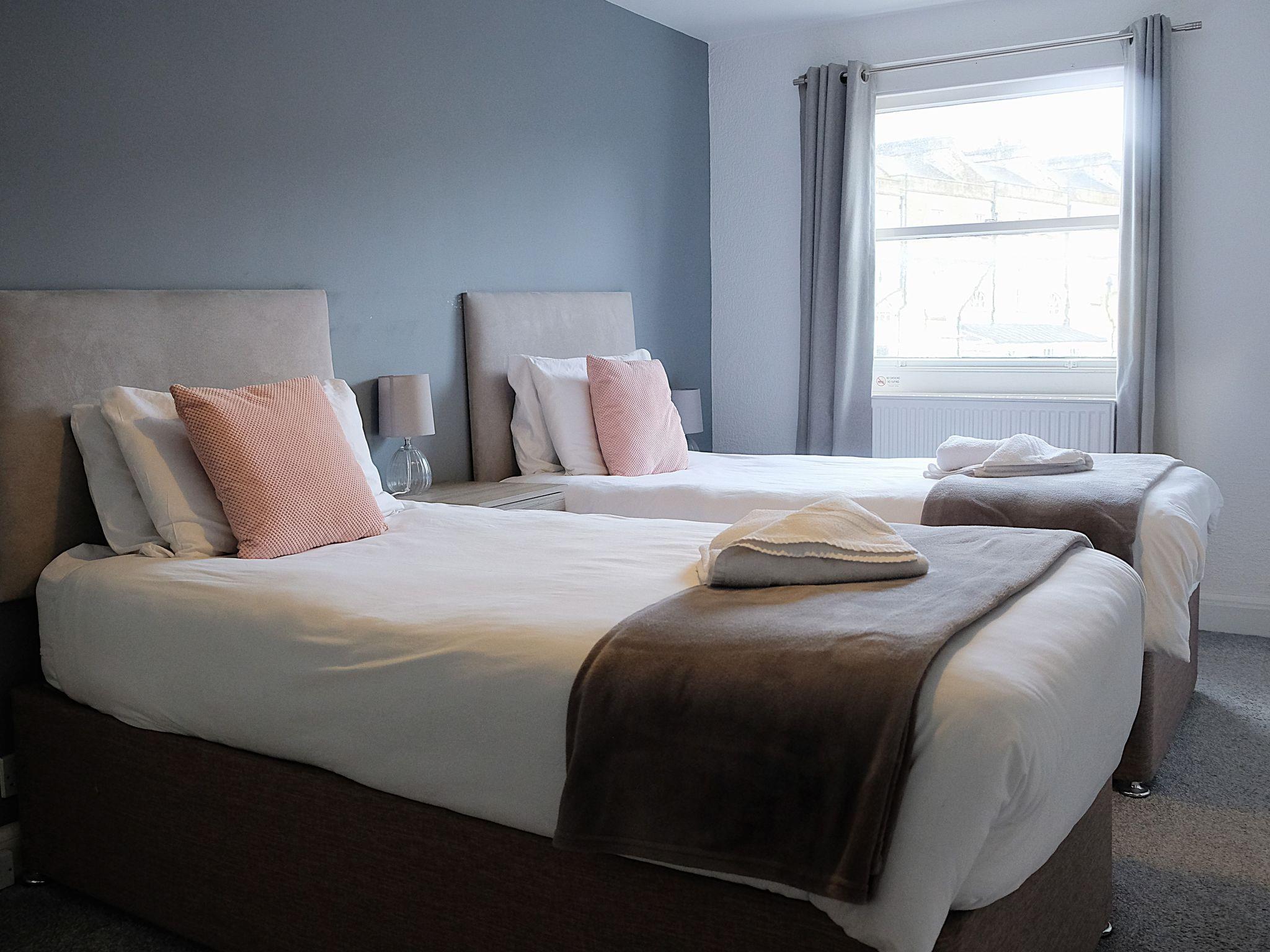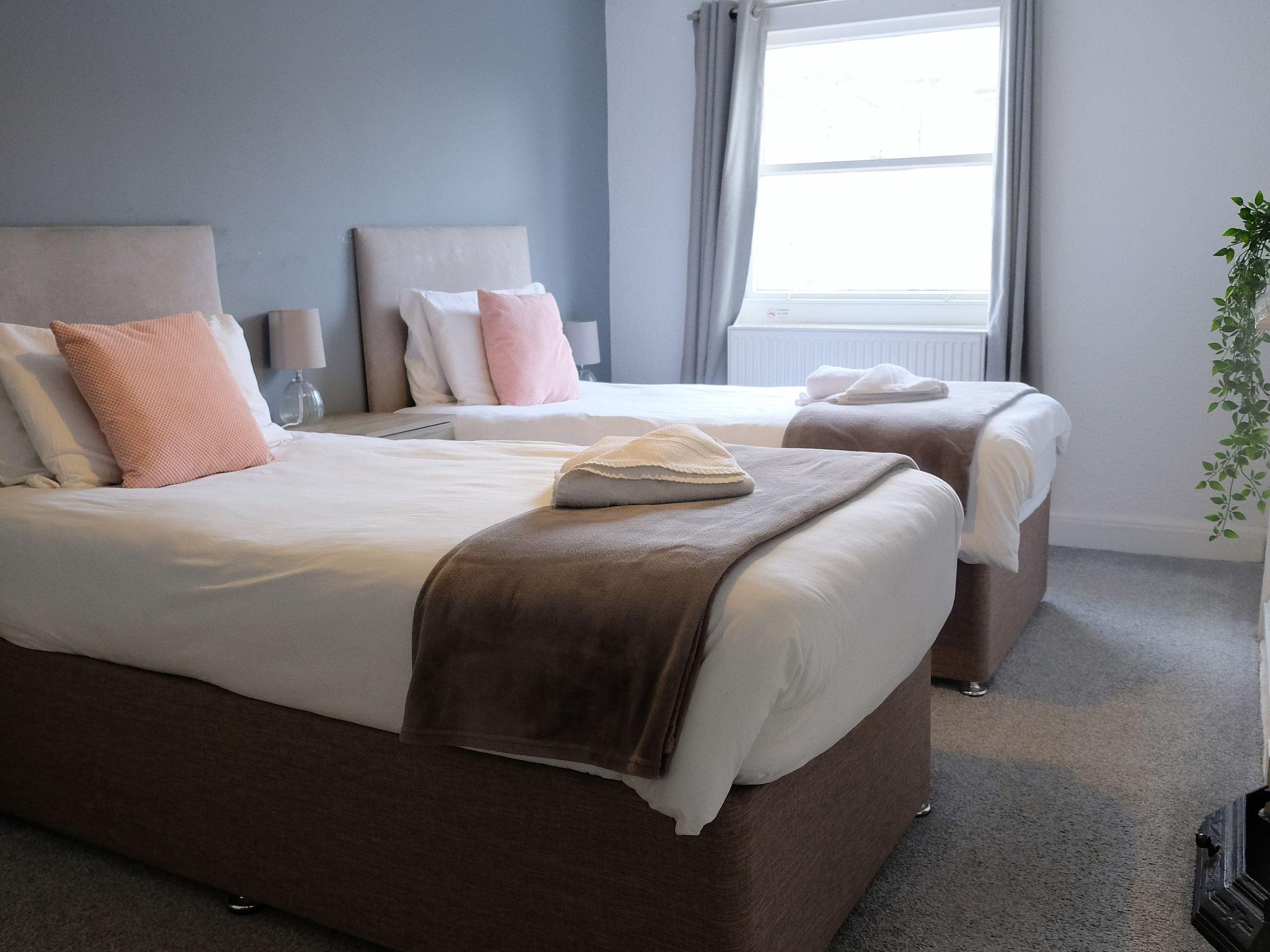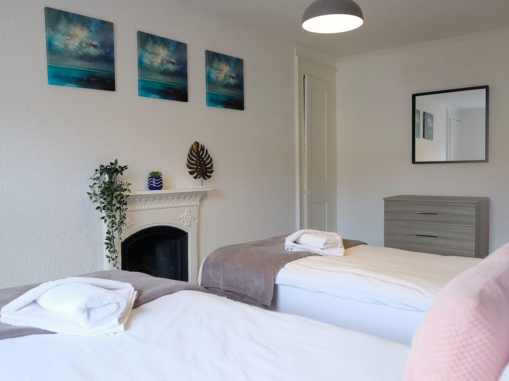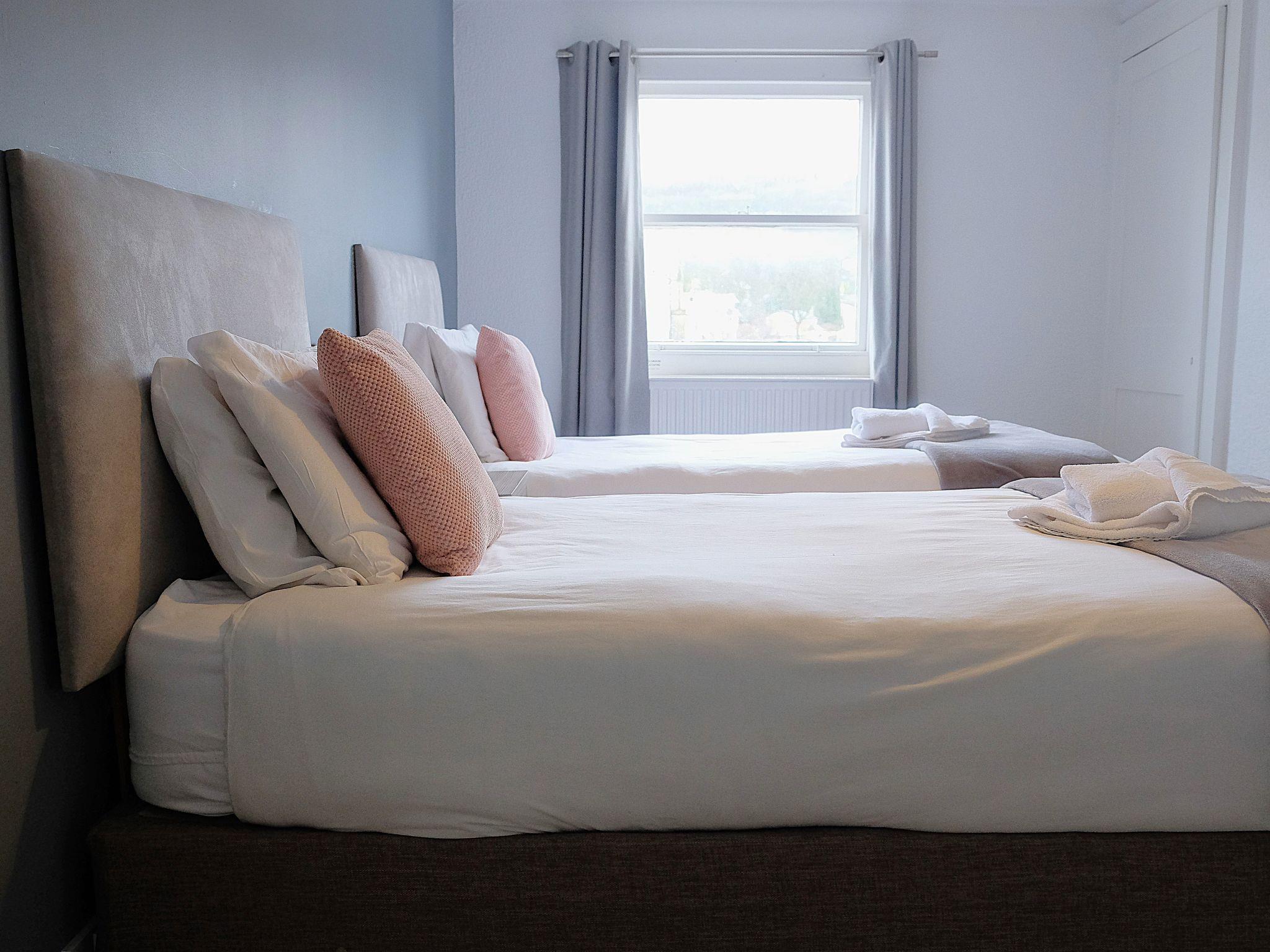 On the upper floor, you'll find a generous sized bedroom with one double bed and a single, a second bedroom with one double bed, and a third bedroom featuring 2 single beds.