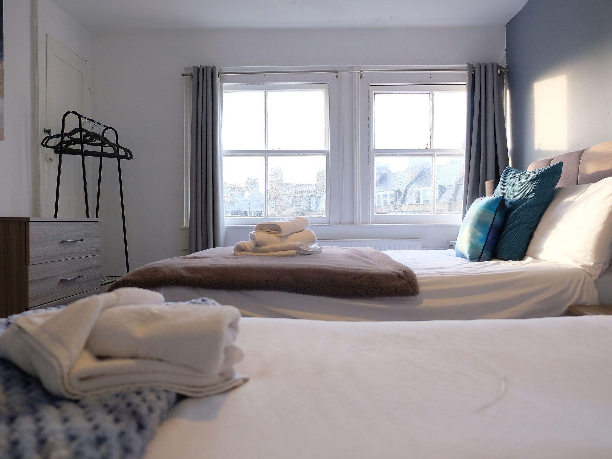 This spacious 3 bedroom apartment features 5 beds, great for group gatherings, students & contractors