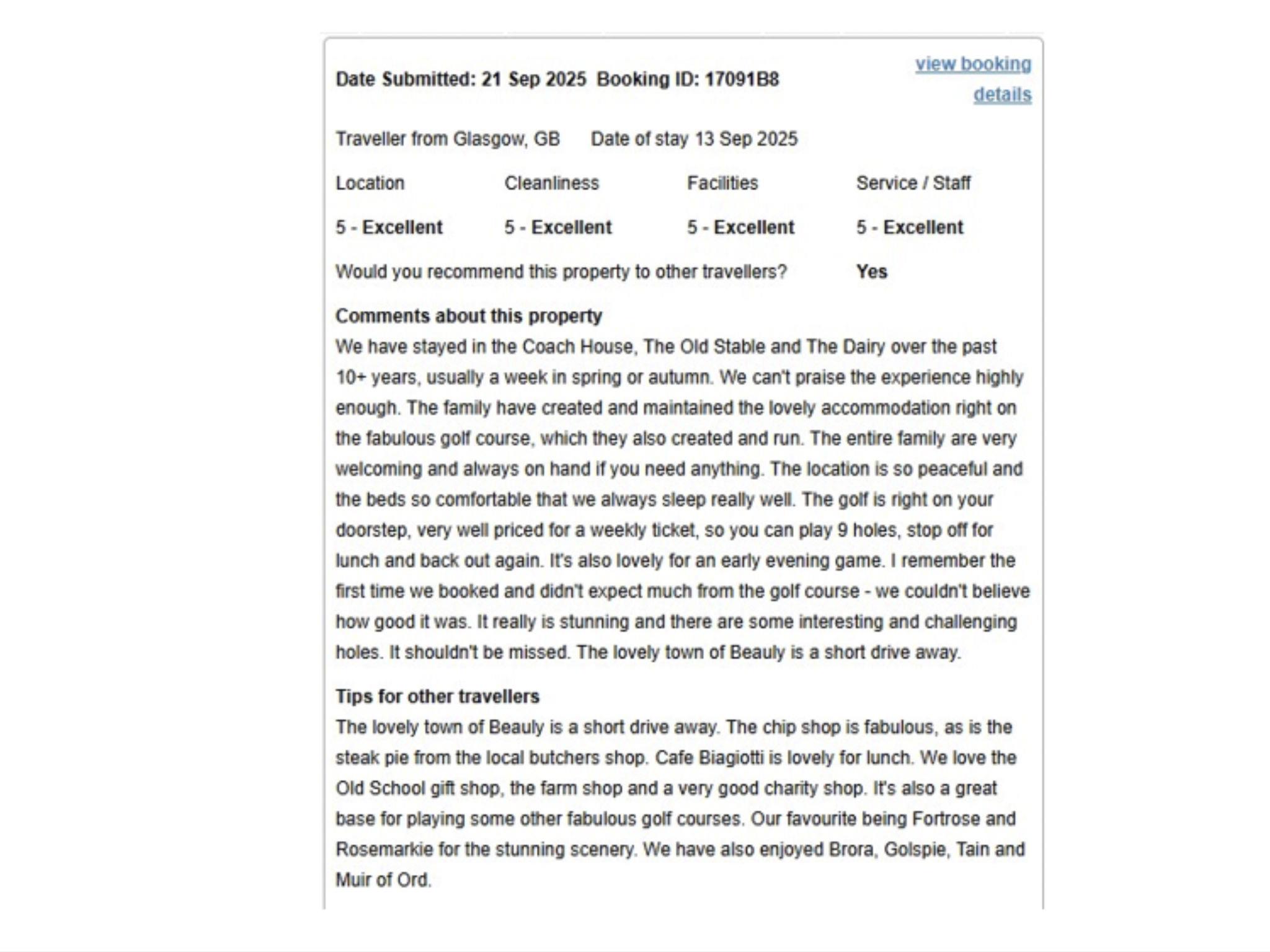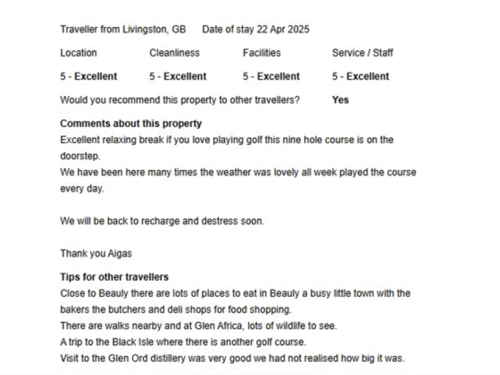 Aigas Holidays 10 km from Beauly: Cosy, comfortable mews "Old Dairy on Aigas Golf Course", terraced. 4 houses in the resort. In a secluded, quiet position, in the countryside. For shared use: garden (not fenced), courtyard, pond. Garden furniture, barbecue. In the complex: washing machine, tumble dryer (for shared use). 4x4 car recommended in winter. Parking at the house. Shop 10 km, supermarket 20 km, restaurant 6 km, bar 6 km, café 10 km, bus stop "Crask of Aigis Post Office" 800 m, railway station "Beauly" 10 km. Golf course (9 hole) 10 m. Nearby attractions: Urquhart Castle 31 km, Loch Ness Exhibition Centre 27 km, Aigis Field Centre 500 m, The Singleton Distillery 14 km, Robertson's Farm Shop & Petting Farm 11 km, Culloden Battlefield 40 km. Well-known lakes can easily be reached: Loch Ness 27 m. Hiking paths: Aigas Community Forest Walks. Please note: car recommended. Suitable for families, suitable for seniors baby equipment (included).