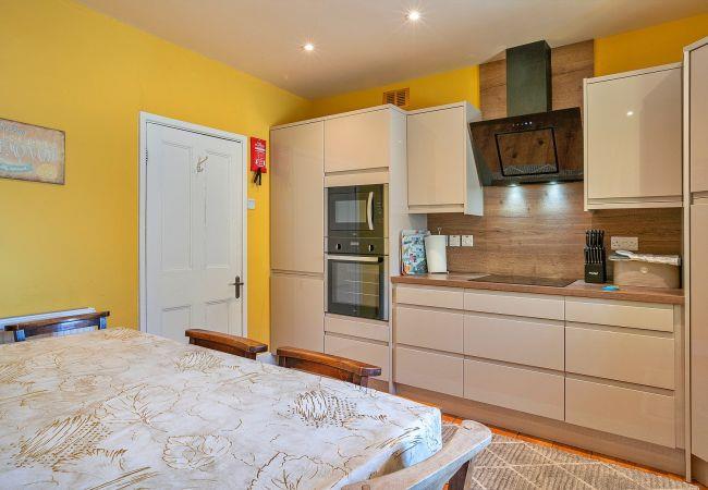 Inside, the lounge features large sea-facing windows, filling the space with natural light and stunning views. A spacious corner sofa invites the whole family to gather for games or a relaxing evening as the sun sets. The well-equipped kitchen provides everything needed for home-cooked meals, though with Beaumaris’ fantastic restaurants and takeaways just a short stroll away, you may be tempted to dine out.
