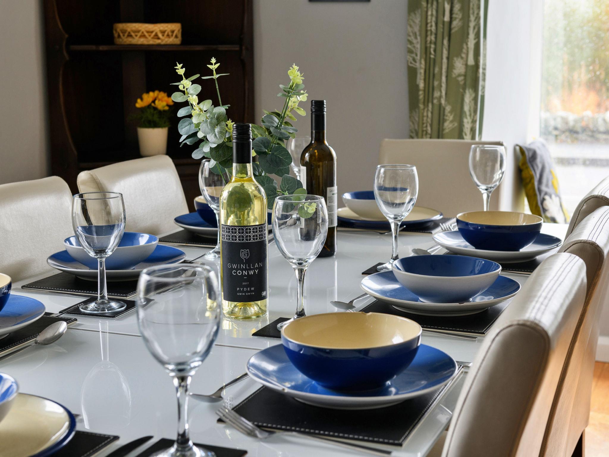 "Bodlawen Holiday House - Edge of Snowdonia", 6-room house 310 m2. Object suitable for 8 adults. Living room with TV. 1 room with 1 french bed. 1 room with 1 french bed. 1 room with 1 double bed. 1 room with 1 bed. 1 room with 1 bed. Kitchen (oven, dishwasher, toaster, kettle, microwave, freezer). Bath/WC, shower/WC, sep. WC. Facilities: washing machine. Internet (WiFi, free). Parking (3 cars). Please note: non-smokers only. 1 pet/ dog allowed. Smoke alarm.