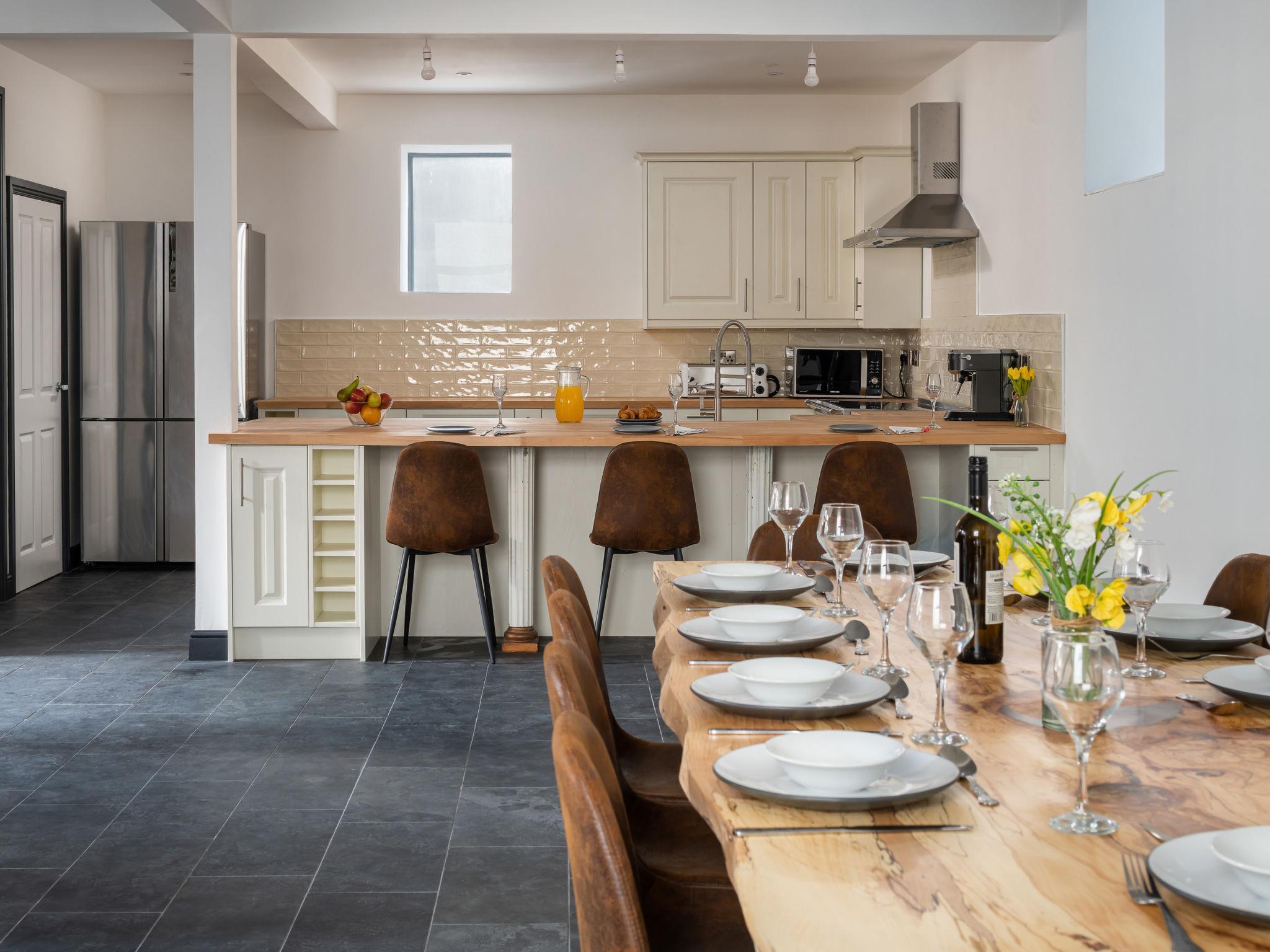 "Capel Salem", 7-room house 185 m2. Object suitable for 12 adults. Living room with TV. 1 room with 1 french bed. 1 room with 1 french bed. 1 room with 1 french bed. 1 room with 1 french bed. 1 room with 2 french beds. Dining room. Kitchen (oven, dishwasher, toaster, kettle, microwave, freezer, electric coffee machine). Bath/WC, 2 showers/WC. Facilities: washing machine, iron. Internet (WiFi, free). Parking (2 cars). Please note: non-smokers only. 1 pet/ dog allowed. Smoke alarm.
