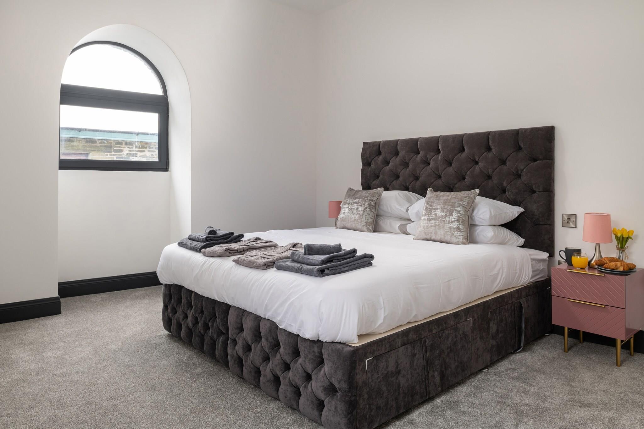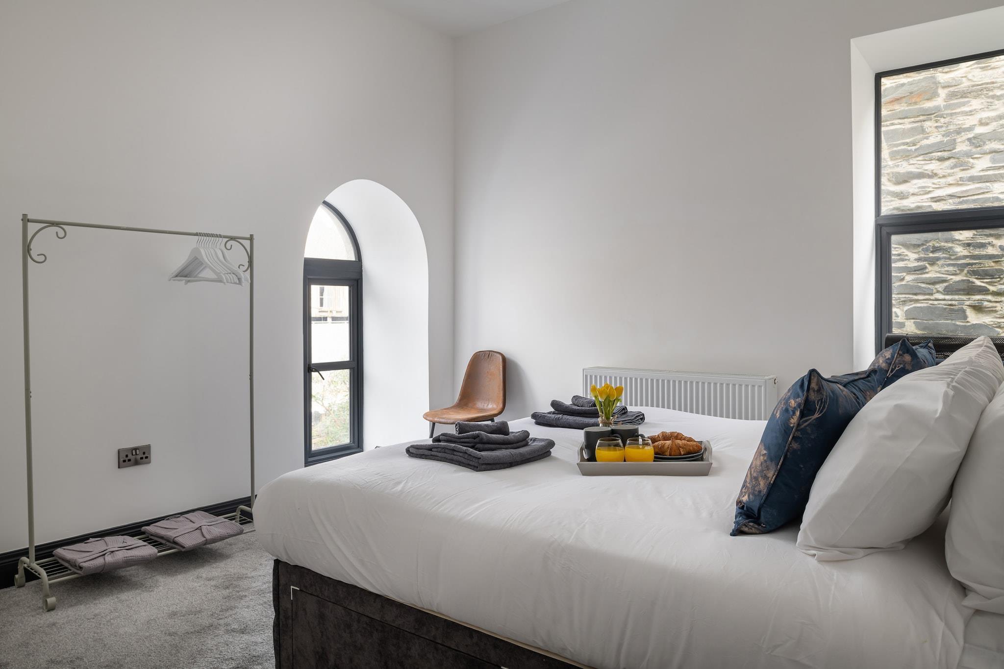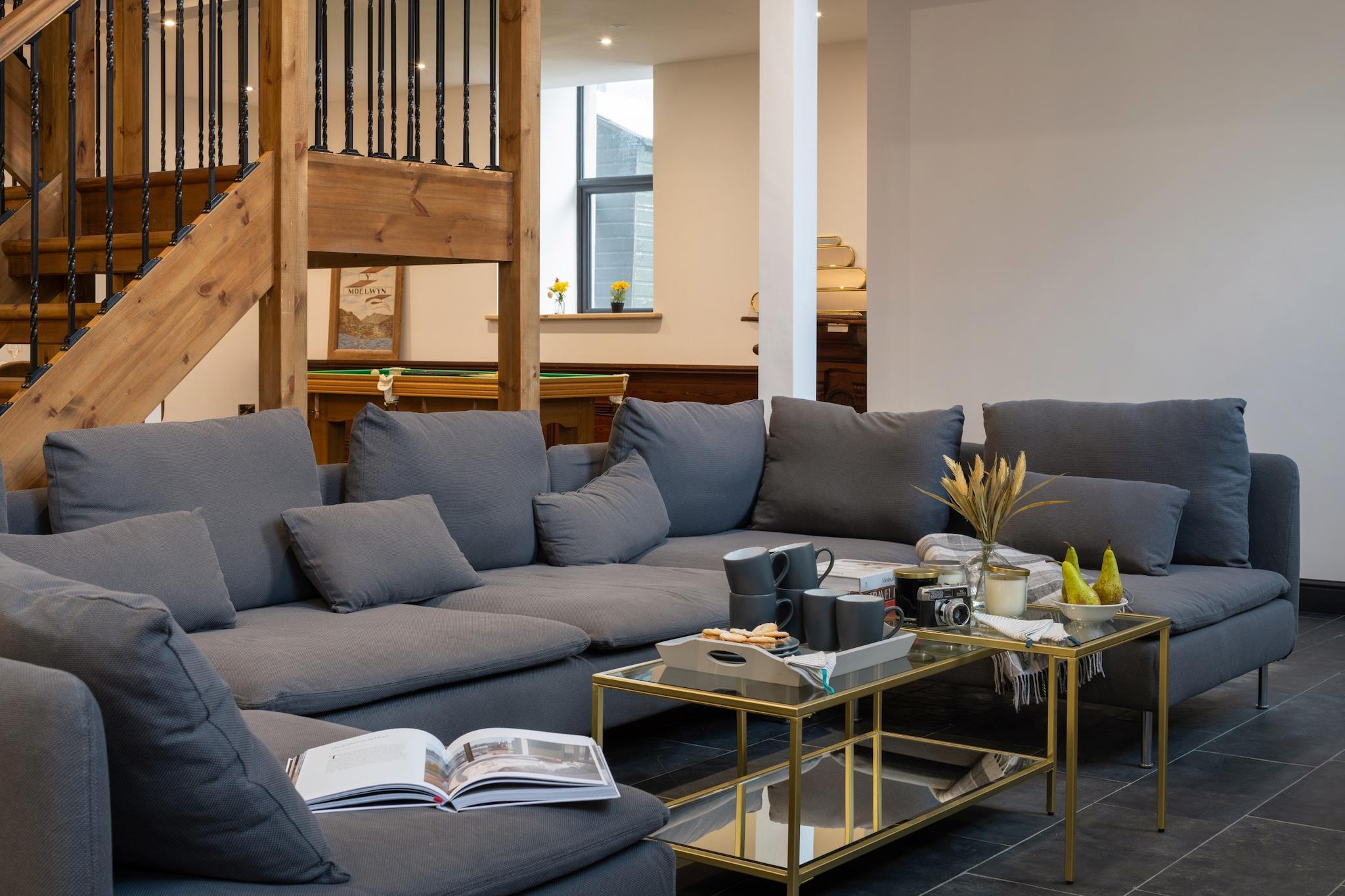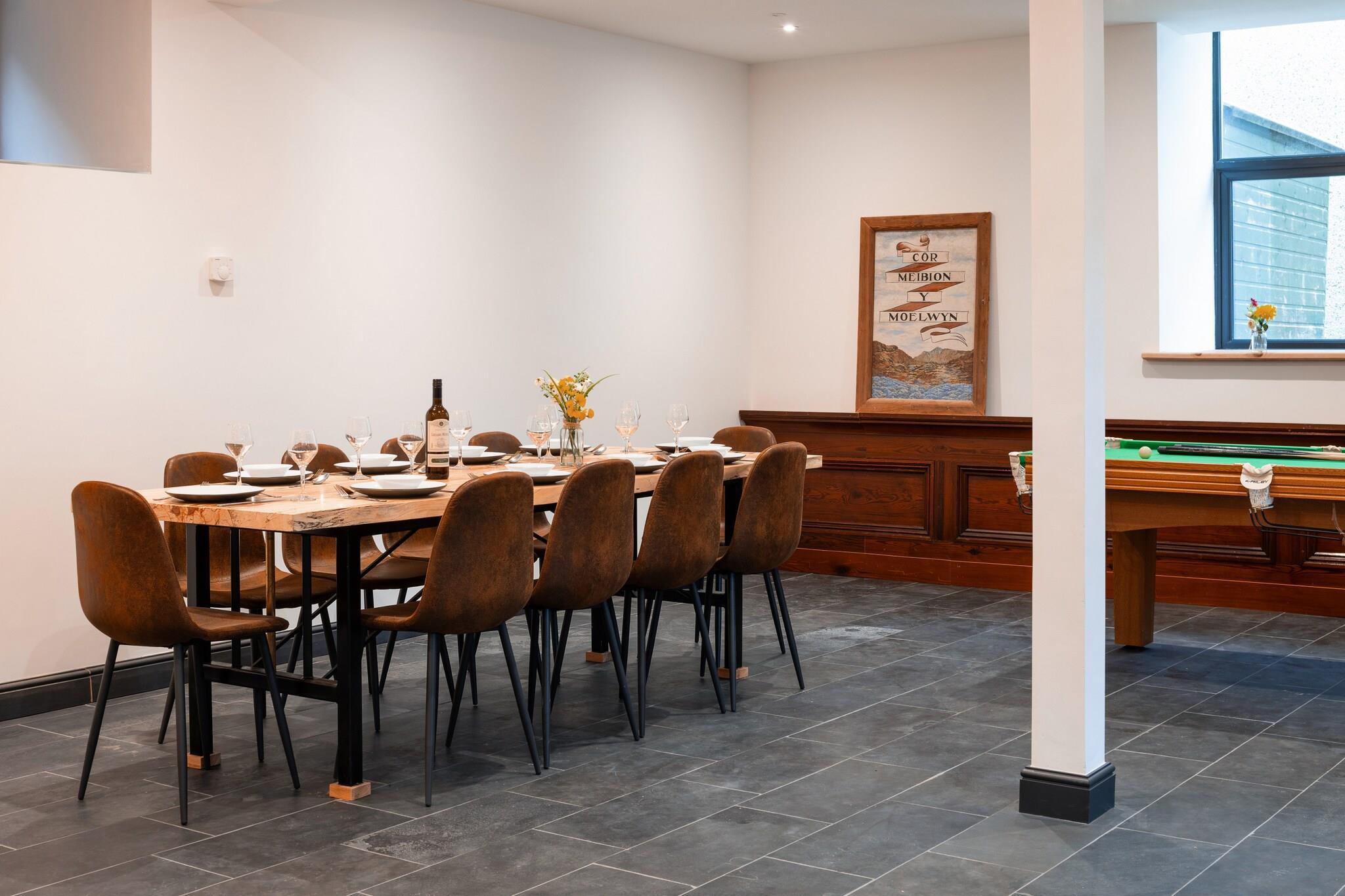 Dette smukt renoverede kapel tilbyder et unikt og rummeligt tilflugtssted for familier eller grupper på op til 12 gæster. Med fem soveværelser, inklusive fire super king-size værelser og et king twin værelse, giver det masser af plads til afslapning og komfort. Den åbne planløsning har højt til loftet, moderne design og et fuldt udstyret køkken, perfekt til at tilberede måltider til særlige familiesammenkomster. Stuen har en lun med en stor hjørnesofa og et smart-tv, hvilket gør den ideel til at slappe af efter en travl dag med udforskning. Beliggende i den historiske by Blaenau Ffestiniog, som engang var et knudepunkt for skiferminedrift, er denne ejendom omgivet af fantastiske bjerglandskaber, søer og vandre- eller mountainbikeruter. Antur Stiniog, en populær destination med 14 mountainbikestier, ligger lige i nærheden. Selve byen byder på et udvalg af uafhængige butikker, caféer og pubber, hvor gæsterne kan fordybe sig i lokal kultur. Ejendommen er udstyret med moderne bekvemmeligheder, herunder Wi-Fi, opvaskemaskine, vaskemaskine og poolbord for ekstra underholdning. Det har også parkering til to køretøjer og er familievenligt med barneseng, højstol og trappelåger til rådighed for yngre gæster. Med et lille udendørs opholdsområde er det den perfekte base til at slappe af og slappe af efter at have udforsket de smukke omgivelser.