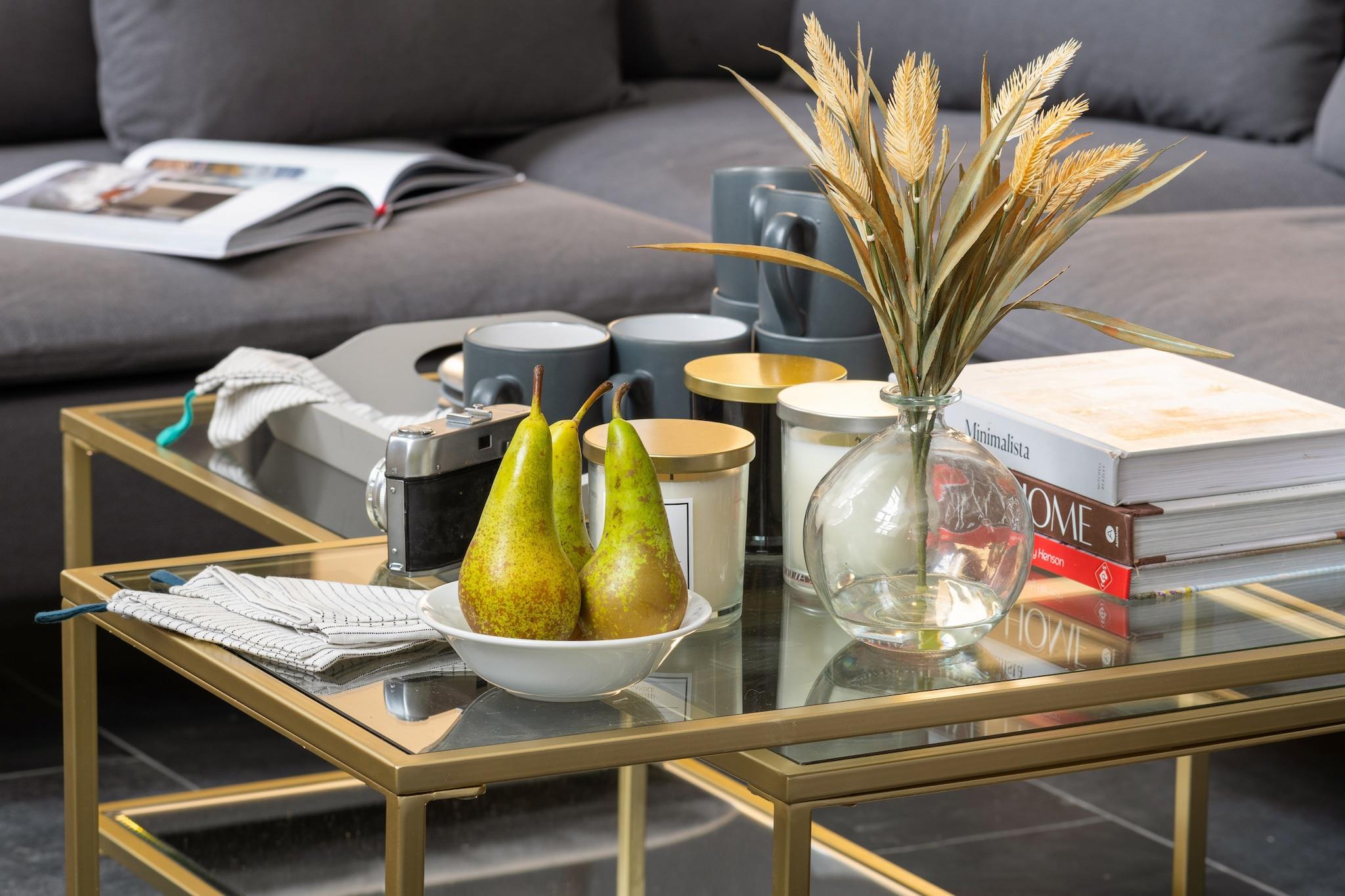 Stueetage: (Stue(Fjernsyn, spisebord, sofahjørne), åbent køkken(elkedel, brødrister, kaffemaskine, ovn, mikrobølgeovn, opvaskemaskine , køle-fryseskab, ), badeværelse(badekar), badeværelse(bruser), Internetadgang) På 1. etage: (soveværelse(king size-seng, king size-seng), soveværelse(king size-seng), soveværelse(king size-seng), soveværelse(king size-seng), soveværelse(king size-seng), badeværelse(bruser, føntørrer)) vaskemaskine, varme(central), parkering, strygejern