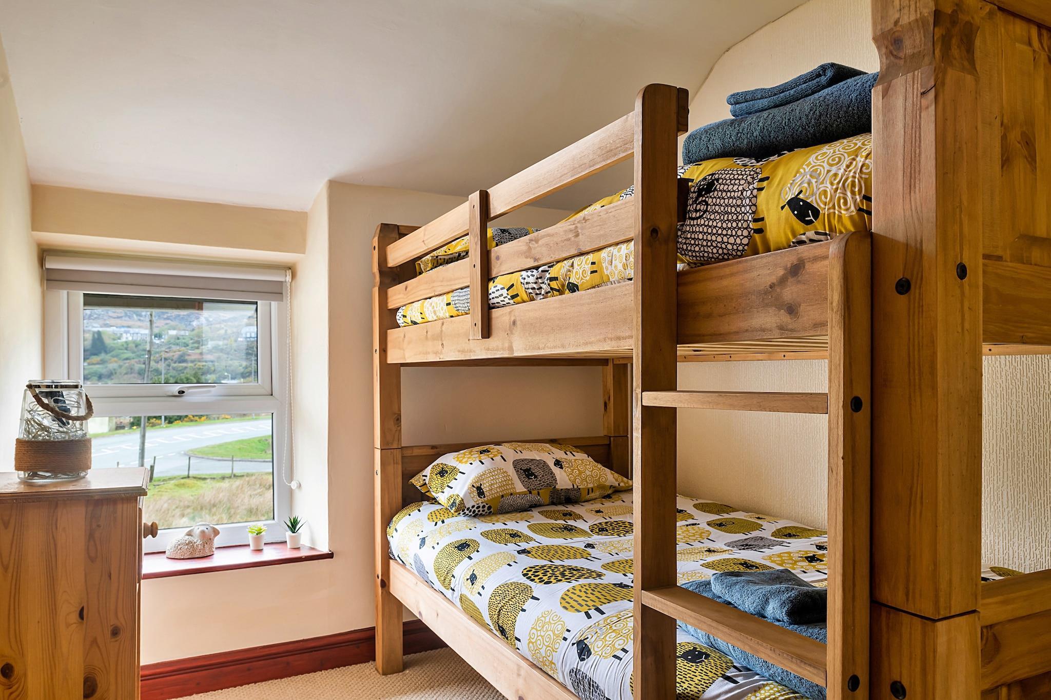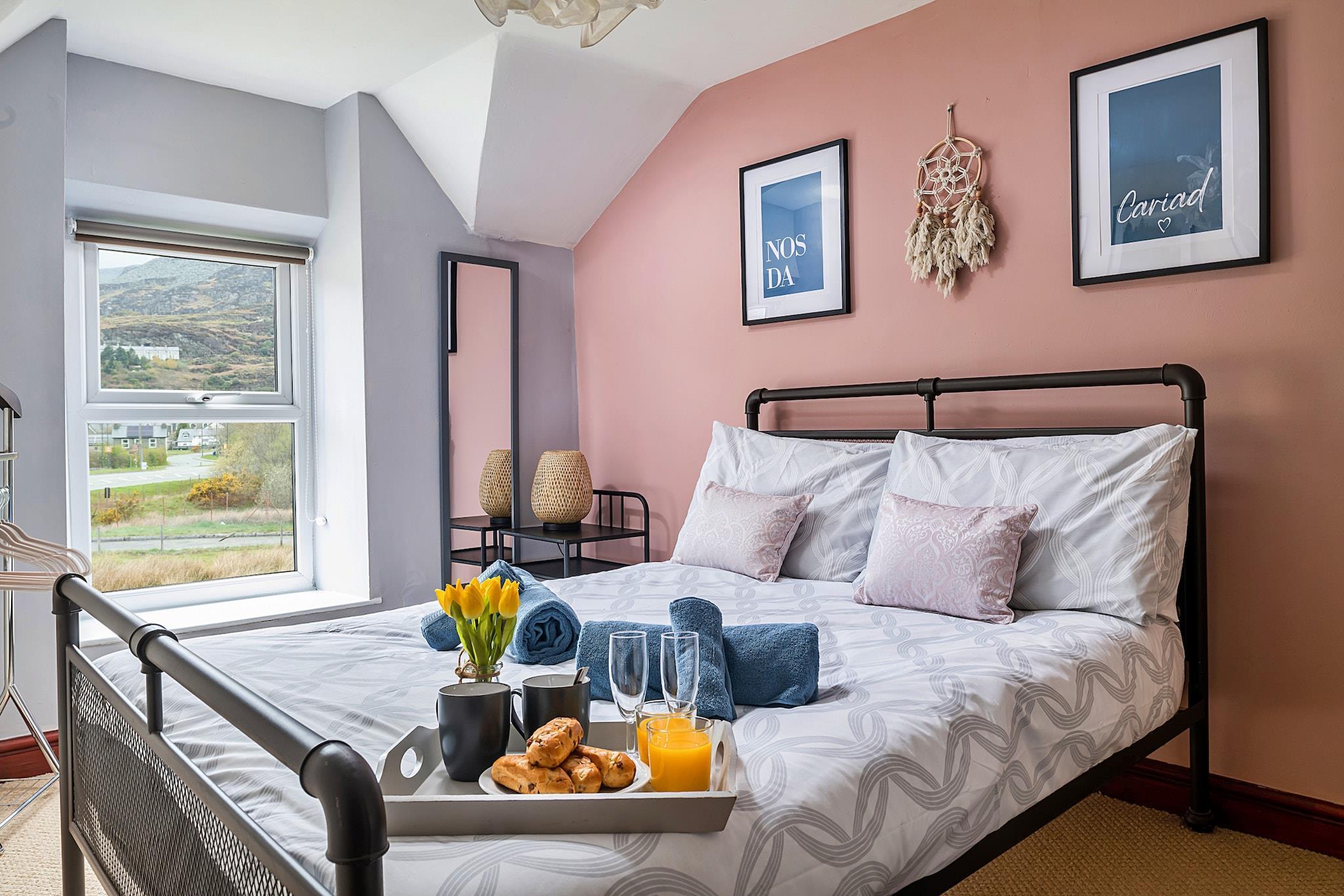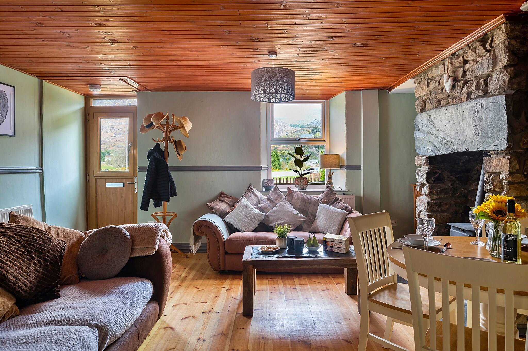Flygt til hjertet af Snowdonia og fordyb dig i charmen ved et smukt restaureret to-værelses sommerhus i den maleriske by Blaenau Ffestiniog. Dette dejlige tilflugtssted fremviser traditionel walisisk arkitektur, med synlige stenvægge og en hyggelig skiferpejs, der inviterer til varme og afslapning. Perfekt til par, venner eller små familier, hytten tilbyder en fantastisk udsigt over de omkringliggende bjerge og landskaber, hvilket giver en malerisk baggrund for din ferie. Nyd fredelige morgener i den private have, hvor du kan nippe til kaffe, mens du observerer det lokale dyreliv og nyder den fredfyldte atmosfære. Indvendigt har hytten en rummelig og indbydende stue, udstyret med komfortable sofaer, en brændeovn og et fladskærms-tv med gratis Wi-Fi. Det veludstyrede køkken giver mulighed for kulinariske eventyr, så du kan tilberede måltider og dele dem omkring det indbydende spisebord. Ovenpå finder du to hyggelige soveværelser - det ene med en plys dobbeltseng og det andet med køjesenge - som sikrer en god nattesøvn for alle. Det moderne badeværelse tilføjer bekvemmelighed med en forfriskende bruser og opvarmet håndklædetørrer til de kølige aftener. Perfekt beliggende for at udforske de naturlige vidundere i Snowdonia National Park, dette charmerende sommerhus fungerer som en port til eventyr. Blaenau Ffestiniog er et knudepunkt for udendørsaktiviteter, fra vandreture og mountainbiking til de spændende underjordiske ture i Llechwedd Slate Caverns. Med en række lokale caféer, restauranter og pubber, der serverer lækre walisiske retter, finder du masser af muligheder for at nyde traditionelle smagsoplevelser efter en dag med udforskning. Uanset om du vælger at vandre gennem de fantastiske landskaber eller blot slappe af i hytten, lover dette fortryllende tilflugtssted en uforglemmelig oplevelse i en af ??Wales' mest fængslende regioner.