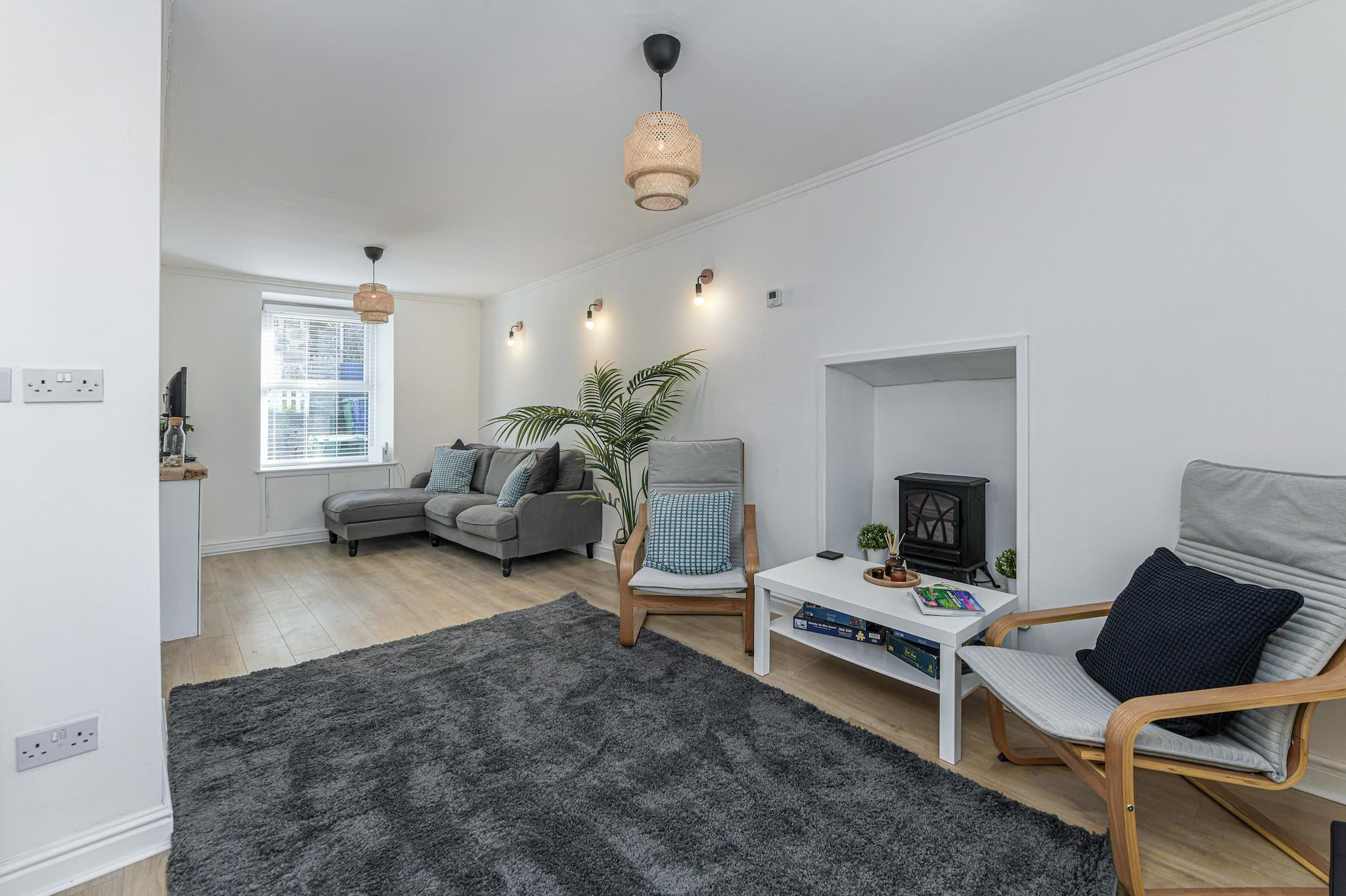 Beliggende i hjertet af Blaenau Ffestiniog tilbyder dette traditionelle semi-fritliggende sommerhus det perfekte tilflugtssted for op til seks gæster. Det kan prale med en fantastisk udsigt over de omkringliggende bjerge og udgør en fredelig base for dine eventyr i Snowdonia National Park. Sommerhuset er smukt renoveret for at kombinere moderne komfort med klassisk charme. Det rummelige køkken og spiseplads i åbent plan er ideelle til at tilberede måltider efter en dag med vandreture eller udforskning af området, mens den komfortable lounge er perfekt til at slappe af ved pejsen med elektrisk effekt. Hold forbindelsen eller nyd dine yndlingsprogrammer med Sky fuld fiberbredbånd og Sky Stream i loungen. Moelwyn har tre hyggelige soveværelser - to dobbeltværelser og en enkelt - hvilket sikrer rigelig plads til alle. Familiebadeværelset, komplet med bruser og toilet, er bekvemt placeret på første sal, og der er et ekstra toilet i nederste etage. For underholdning kan du gå gennem en hemmelig dør ind i den nederste etage, hvor du finder et filmrum og spilleområde. Rummet inkluderer en projektor med Netflix til filmaftener og et 3-i-1 bord (bordtennis, pool og airhockey) til timevis af sjov. Denne plads er ideel for familier med børn eller dem, der ønsker et dedikeret område til at slappe af og hygge sig. Udenfor tilbyder en grushave bagerst i hytten et sikkert rum til opbevaring af cykler. Moelwyn er perfekt beliggende for udendørsentusiaster, med vandrestier på alle niveauer i nærheden, fra blide gåture til mere udfordrende vandreture gennem Snowdonias forrevne bjerge og dale. Sommerhuset inkluderer parkering til en mindre bil, med yderligere gadeparkering tilgængelig i nærheden efter først-til-mølle-princippet. Bemærk venligst, at biografsalen i underetagen har lavere loftshøjde.
