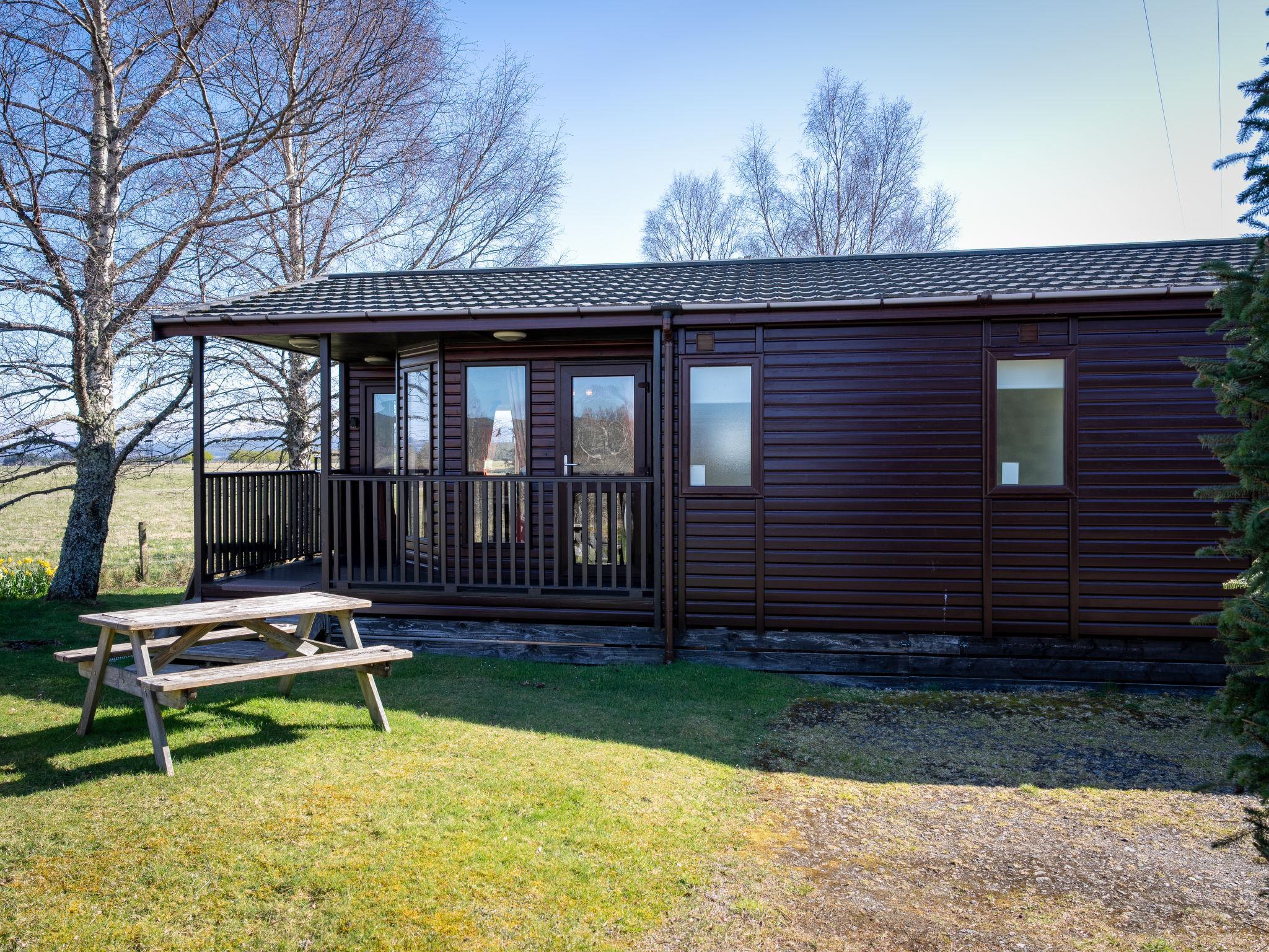 Cosy, comfortable chalet "Capercaillie Lodge", detached, surrounded by fields. On the outskirts, 2 km from the centre of Boat of Garten, 26 km from the skiing area. Private: patio, garden furniture. In the complex: washing machine (extra), tumble dryer (for shared use, extra). Parking at the house. Shop 2 km, supermarket 2 km, restaurant 2 km, bar 2 km, bus stop "Boat of garten" 2 km, railway station "Aviemore" 8 km. Nearby attractions: Cairngorm National Park, Highland Wildlife Park 23 km, Inverness 46 km, Landmark Adventure Forest Park 7 km, Highland Folk Museum 32 km. Well-known ski regions can easily be reached: Cairngorm Mountain 23 km, The Lecht Ski Centre 40 km. Well-known lakes can easily be reached: Loch Garten 1 km, Loch Morlich 18 km, Loch Ness 65 km. Please note: car recommended. Additional accommodations can be booked.