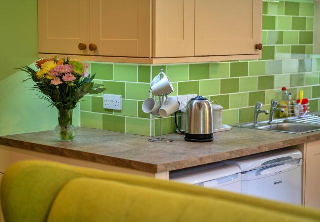 Cook up a feast of an evening with fully fitted kitchen, microwave, fridge/freezer and cosy dining for two in front of the fire! There is a private seating area outside, where you can watch the local wildlife and take in the tranquillity of the landscape.