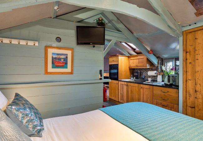 Deceptively spacious and well-appointed for a self-catering stay, enter the living area with full kitchen, dining area, electric fire, TV and Wi-Fi included during your stay. Head through into the king-size bedroom, with an adjoined bathroom with shower, basin and WC.
