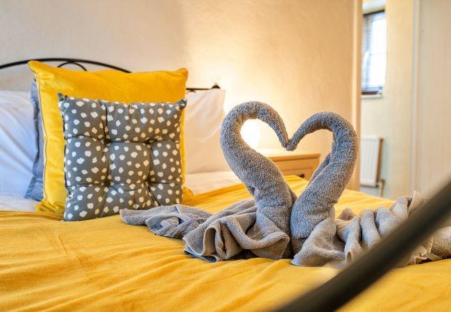 Upstairs in the cottage, you'll find two cosy bedrooms. The master bedroom features a sumptuous king-size bed, with a second double bedroom. Both share a family bathroom with shower over bath, WC and basin. The rooms are tastefully decorated and offer views of the surrounding area.