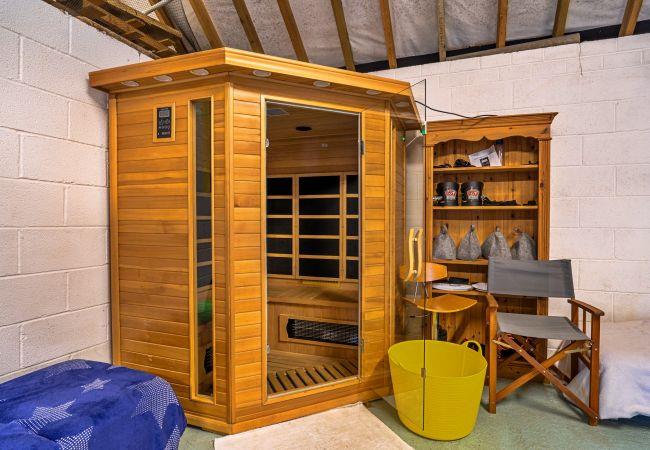 PLAYROOM: with a second TV. For children's games, quiet reading, watching the match or pumping out the music, with 2 comfy sofas, a table for games and a wood burning stove.