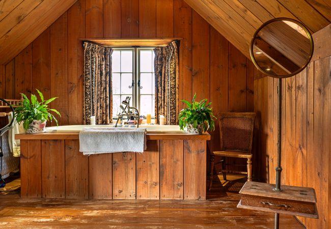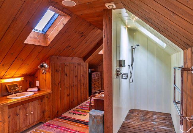 BEDROOM 8: (Luke's Room") - King size bed or twins with small double futon, with rafters to the peaked roof.
