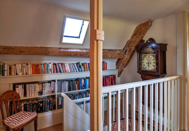 UPPER HALL with more shelves full of wonderful books including for children and some children’s toys.