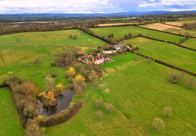 Welcome to New Park Farm, an elegant, modernised farmhouse near Bruton, set in 60 acres of meadows, for a private getaway perfect for multi families or friends. Enjoy unrivalled views of fields to Glastonbury Tor. An elegant quirky haven, full of character, open fires, central heating, and large fully kitted kitchen. With 3 lakes for wild swimming/picnics, sauna and gym.