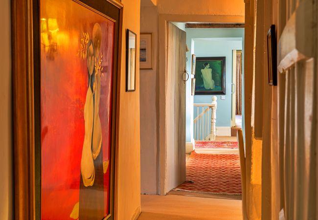 Upstairs we have bedrooms for up to 16 people in 6 doubles, 1 triple and 1 single bedrooms. A travel cot can be provided on request. There are 4 bathrooms, 2 ensuite, with an additional two ground floor WCs.