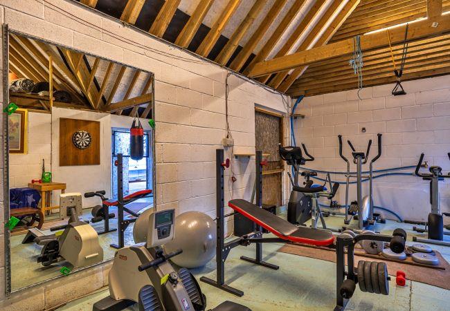 The grounds are perfect for summer living with dining tables and chairs, recliners and sunshades. The several fire pits are for cooler evenings watching the sunset and night skies. The old stable contains a gym and a sauna and there is a rowing machine and cross trainer in the main house.