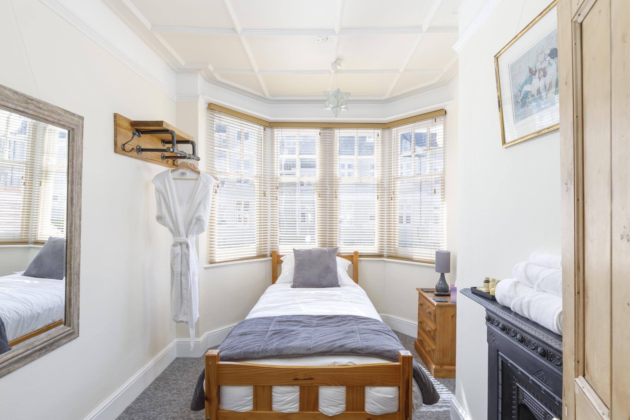 Denne charmerende lejlighed tilbyder et hyggeligt og komfortabelt enkeltværelse, perfekt til solorejsende eller dem, der søger et fredeligt tilflugtssted. Værelset er omhyggeligt indrettet med en enkeltseng og udstyret med alt det nødvendige for et afslappende ophold, inklusive inkluderet sengetøj, håndklæder og varme for at sikre et varmt og indbydende miljø. Gæsterne kan nyde gratis Wi-Fi, hvilket gør det nemt at holde forbindelsen under deres ophold. Ejendommen er også velholdt med slutrengøring inkluderet, så gæsterne kan nyde en problemfri oplevelse. Placeringen af ??denne ejendom giver nem adgang til Brightons pulserende strandpromenade, med kun en kort gåtur til Brighton Beach og nærliggende attraktioner såsom Royal Pavilion og Brighton Pier. Uanset om du foretrækker afslappede strandture eller udforske byens kulturelle vartegn, er denne lejlighed en god base for at opleve alt, hvad Brighton har at tilbyde. For ekstra ro i sindet kræver lejligheden et refunderbart depositum, der sikrer, at dit ophold er beskyttet. Gæster kan tjekke ind mellem kl. 14.00 og 22.00 med udtjekning før kl. 10.00. Bemærk venligst, at rygning ikke er tilladt, og kæledyr er ikke tilladt på ejendommen. Uden afbestillingsgebyr op til 15 dage før check-in er booking fleksibel og nem.