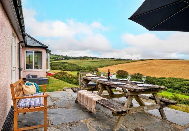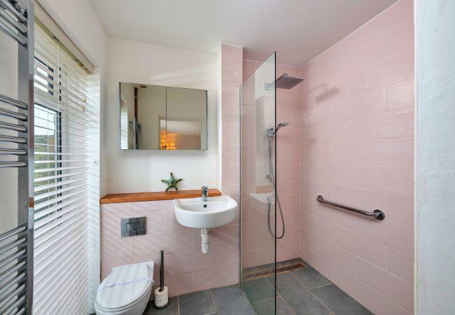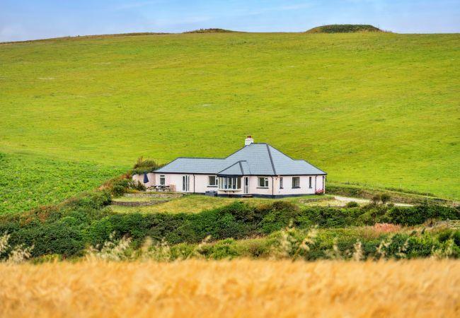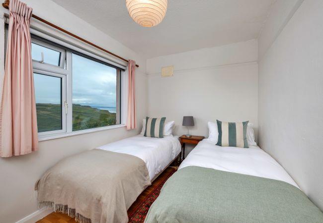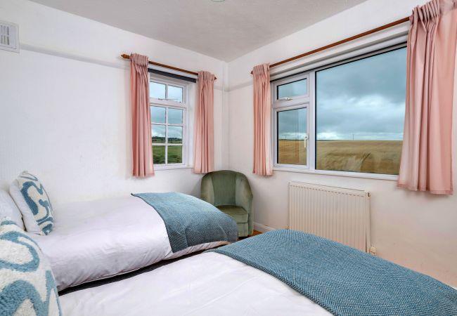 Set on one level, the house has one king bedroom, with en-suite and three twin rooms, all with access to an electric blanket. The ensuite includes a walk-in shower, while the main bathroom features a bath with a shower over. The kitchen is equipped with a dishwasher, fridge/freezer, gas hob, electric oven, washing machine and separate dryer. The sitting room opens through double doors onto a bay area with wide coastal views and a log burner.