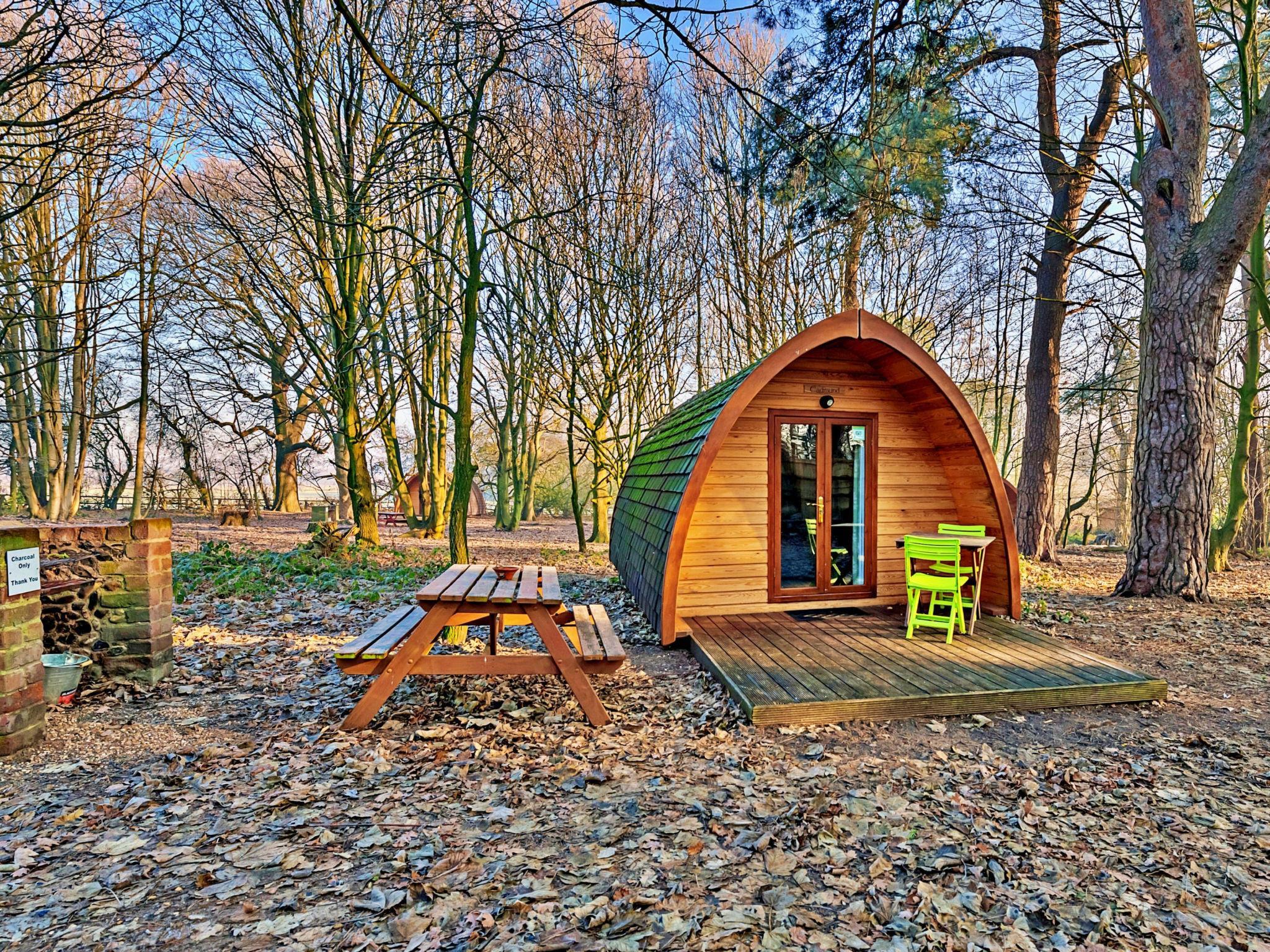 "Boudicca Pod", 2-room chalet 15 m2, on the ground floor. Object suitable for 4 adults. Living room with 1 sofabed and 1 pull-out bed. 1 room with 1 double bed. Small kitchen (toaster, kettle, microwave). Shower/WC. Terrace. Barbecue. Facilities: Internet (WiFi, free). Please note: non-smokers only. 2 pets/ dogs allowed.