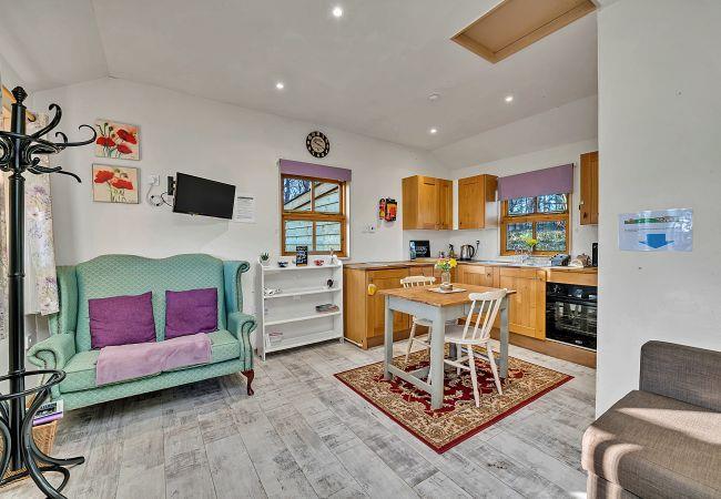 There is parking outside for ease of unloading and it sleeps two on a very comfortable sofa-bed with bed linen and towels included. You will find a well-equipped kitchenette with fridge, microwave, hob, toaster, kettle, and kitchen utensils. Lounge and seating area with digital TV, Wi-Fi, and dining table. Plus, private bathroom with shower, basin and WC.