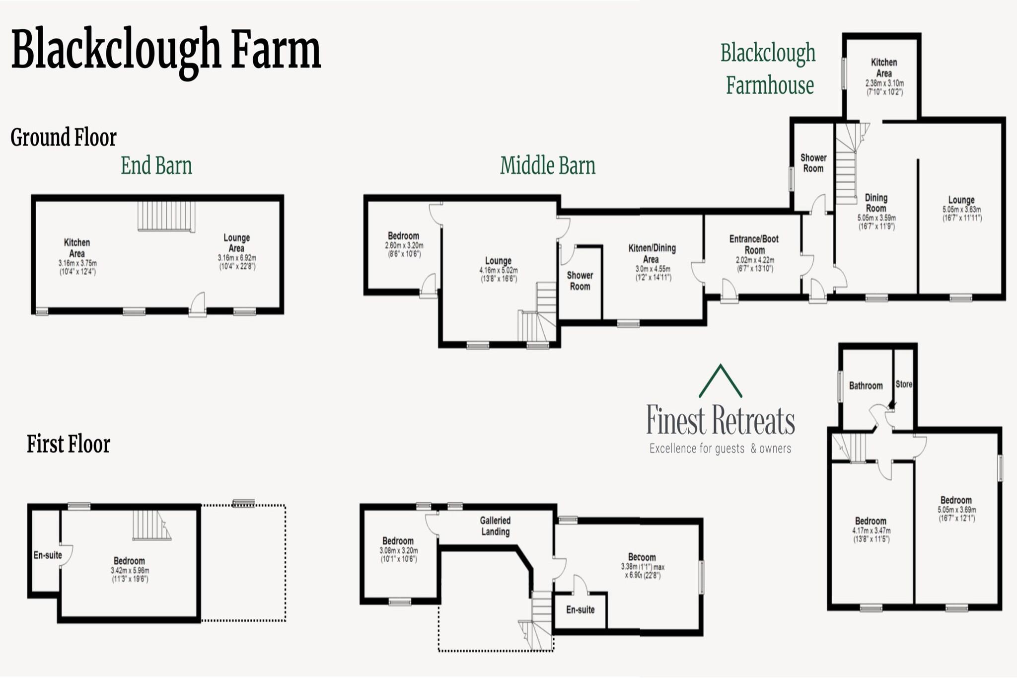 Oplev Blackclough Farm, hjemsted for en dejlig samling af tre hytter beliggende i hjertet af Peak District, med plads til op til 12 gæster. Perfekt til familiesammenkomster eller grupperejser, dette naturskønne tilflugtssted er omgivet af en fantastisk udsigt over Staffordshire Moorlands. Indkvartering: The Farmhouse: Sovepladser 5 i to soveværelser (1 dobbeltseng, 1 triple) med to badeværelser. The Middle Barn: Sovepladser 5 i tre soveværelser (2 dobbeltværelser, 1 enkelt) med to badeværelser. The End Barn: Et hyggeligt tilflugtssted for 2, med et soveværelse på mezzaninniveau og et badeværelse. Hver hytte har sit eget køkken, spisestue og loungeområde, hvilket sikrer et behageligt ophold. Farmhouse og Middle Barn kan forbindes via et fælles bagagerum, mens den fritliggende End Barn tilbyder et fredfyldt rum til afslapning. Blackclough Farm er beliggende på et sted af særlig videnskabelig interesse og er ideel til udendørsentusiaster med rigelige muligheder for at gå, mountainbike og klatre. Den nærliggende landsby Flash og kurbyen Buxton giver nem adgang til lokale butikker og attraktioner, alt sammen sat på baggrund af et roligt landskab. Hunde er velkomne mod et ekstra gebyr, begrænset til The Farmhouse eller The Middle Barn (op til to hunde). Ejere anmodes om at sikre, at hunde er over 12 måneder gamle og ikke går ovenpå eller på bløde møbler. Bemærk venligst, at adgangen kan være udfordrende i ekstremt vejr eller vinterperioder, så planlæg at ankomme før mørkets frembrud og tjek vejrudsigten. Book din flugt til Blackclough Farm i dag, og nyd Peak Districts fredfyldte skønhed!