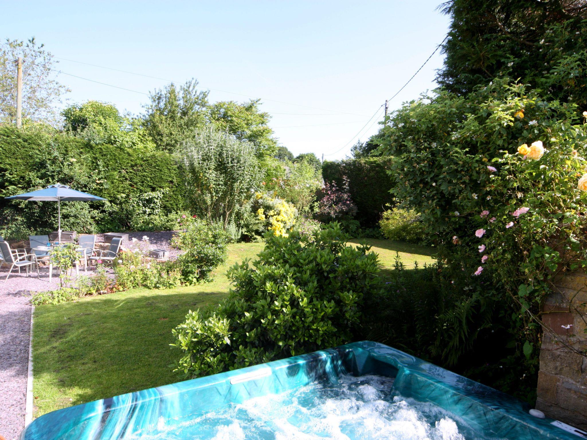 There is a blissful hot tub in a fenced, attractive, sheltered garden. Patio table and chairs (plus umbrella, charcoal barbecue and loungers summer months only)