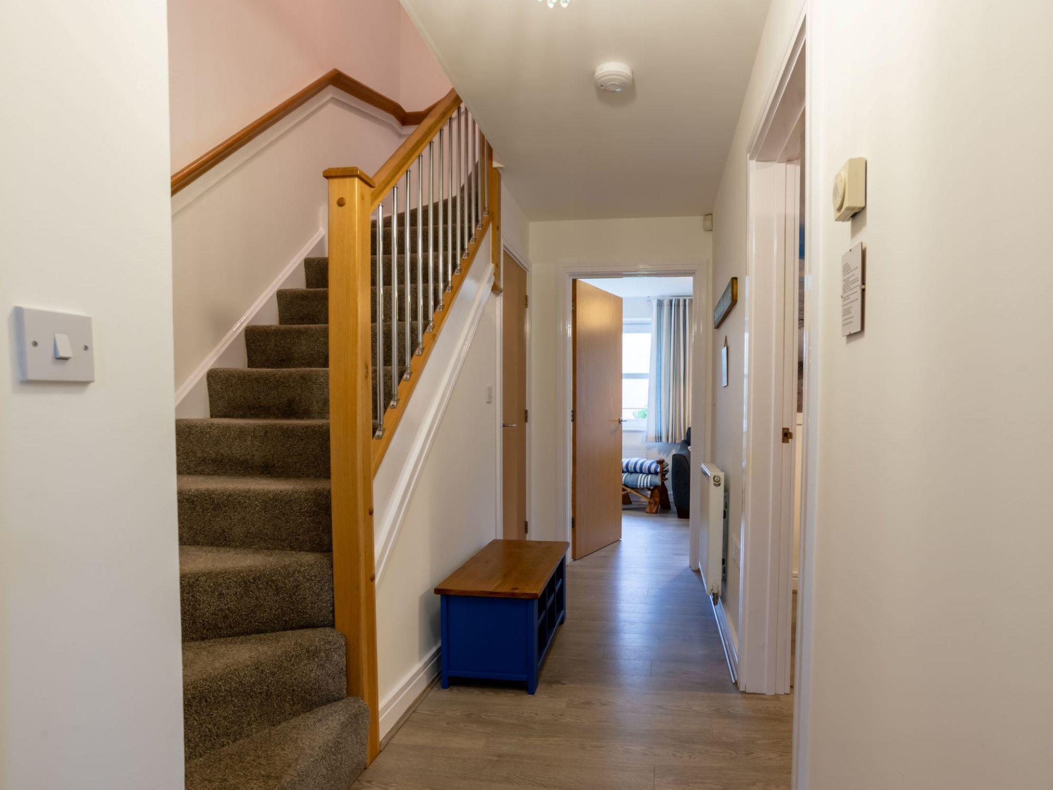 Charlestown: In historical Charlestown, filming location of Poldark and Rosamunde Pilcher series with access to private, gated beach. Situated next to peaceful woodland modern house "Marshmallow House", 2 storeys. In the centre of Duporth, in the resort Charlestown, 20 m from the edge of the forest, 250 m from the sea, 250 m from the beach, in a cul-de-sac. For shared use: private beach. Private: well-kept garden (fenced) with flowers, lawn for sunbathing. Patio, garden furniture. In the house: central heating system, washing machine. Parking at the house. Grocery 1 km, supermarket 1 km, shopping centre 4 km, restaurant 1 km, bar 1 km, café 1 km, bicycle rental 4 km, pub garden 1 km, bus stop "Duporth" 5 m, railway station "St Austell" 2 km, sandy beach "Carlyon Bay" 2 km pebble beach "Charlestown" 500 m, park "Charlestown" 500 m. Golf course (18 hole) 1 km, walking paths from the house 10 m, children's playground, fishing possibilities 500 m. Nearby attractions: Charlestown Historic Harbour UNESCO 1 km, Eden Project 5 km, Lost Gardens of Heligan 10 km, Pinetum Gardens 2 km, Caerhayes Castle 11 km, Mevagissey Harbour 6 km. Hiking paths: South West Coast Path 250 m.